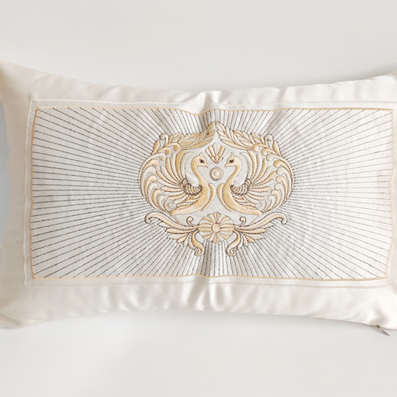 商品名称:澜屿 2024新款禅丝高精密刺绣小抱枕头枕芯腰靠枕 吉祥鸟-米白