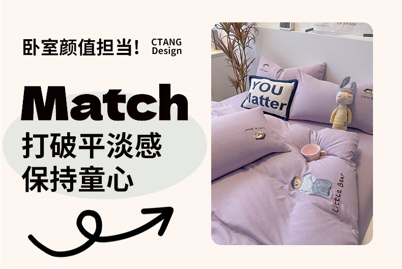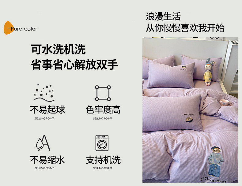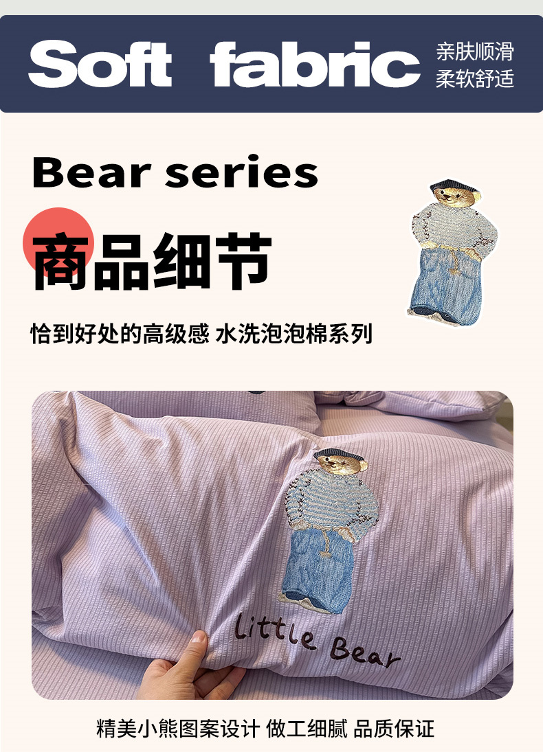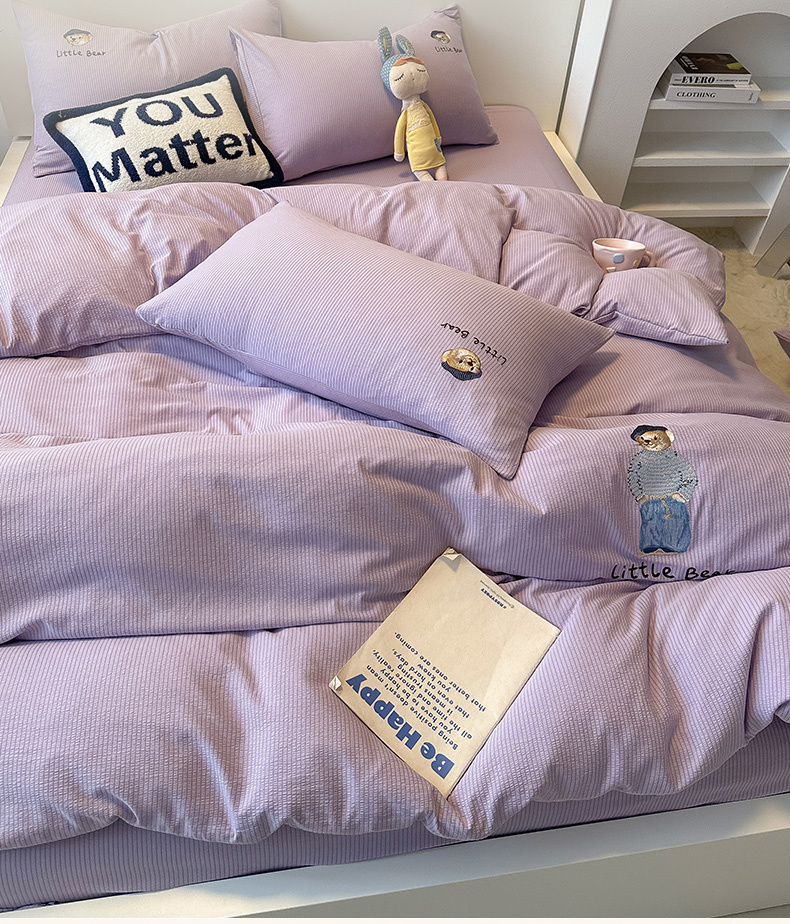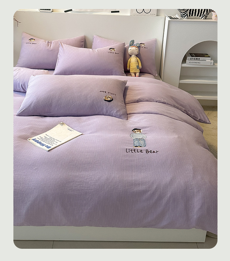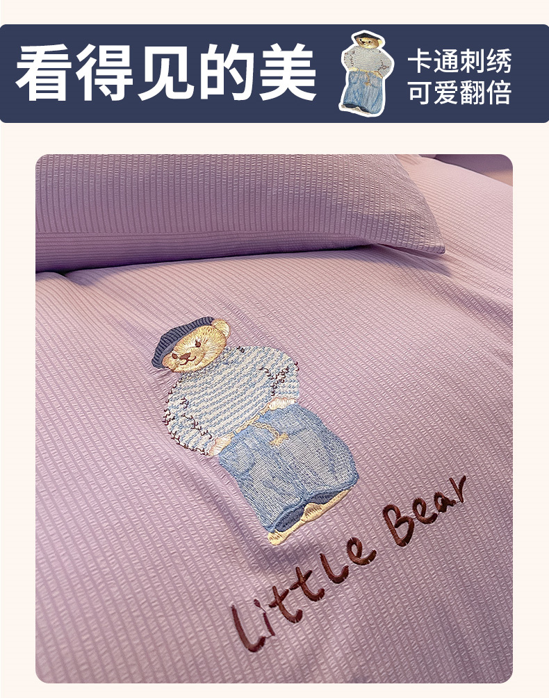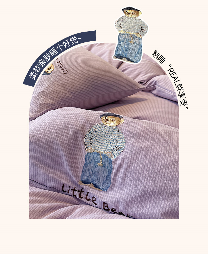 当前位置: 91家纺网 > 商品网购 > 床品套件 > 四件套 > 水洗棉四件套 > 眠帛家居 2024新款水洗棉提花刺绣四件套-熊先生 熊先生-丁香紫