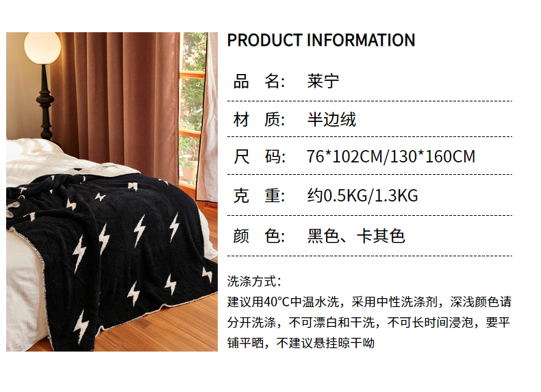 商品名称:(总)暖绵绵家纺 2025新款半边绒系列盖毯披肩毯毯子-莱宁