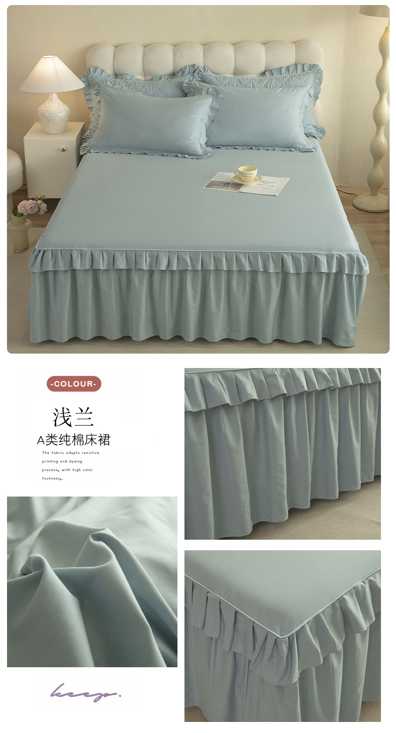 商品名称:2025新款A类全棉抗菌13372床裙系列全棉床裙 浅兰