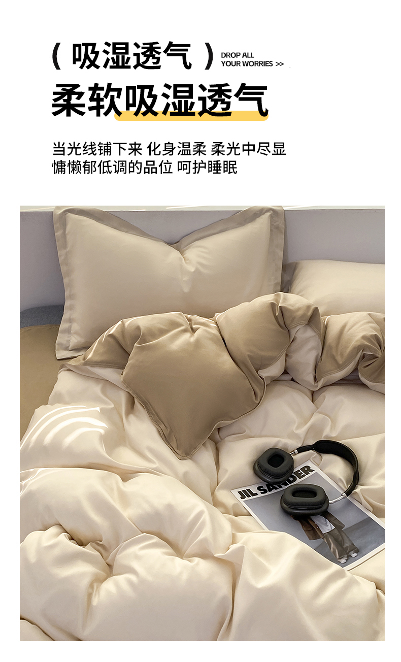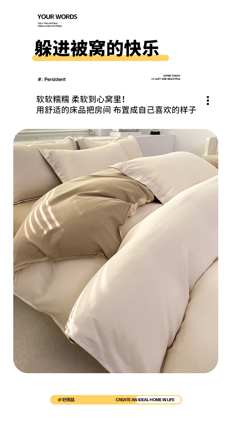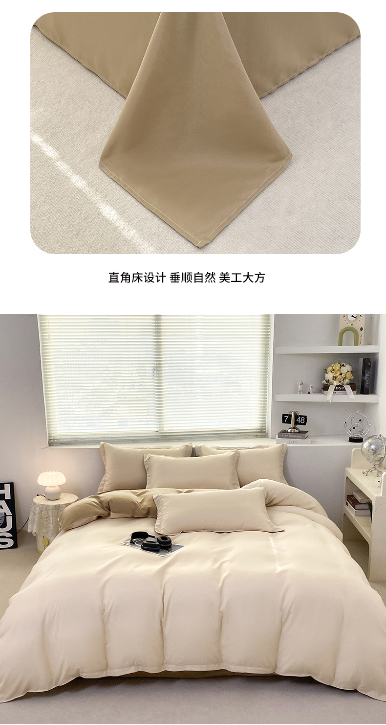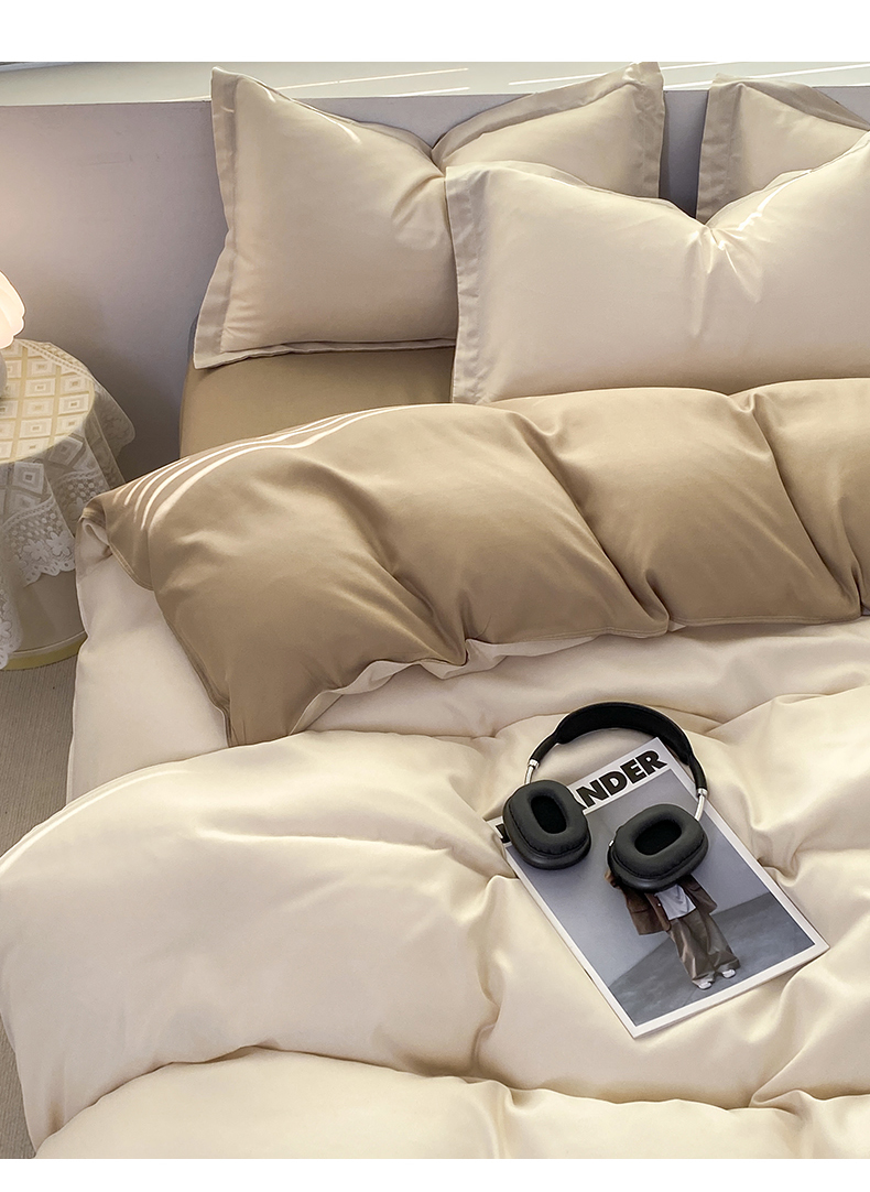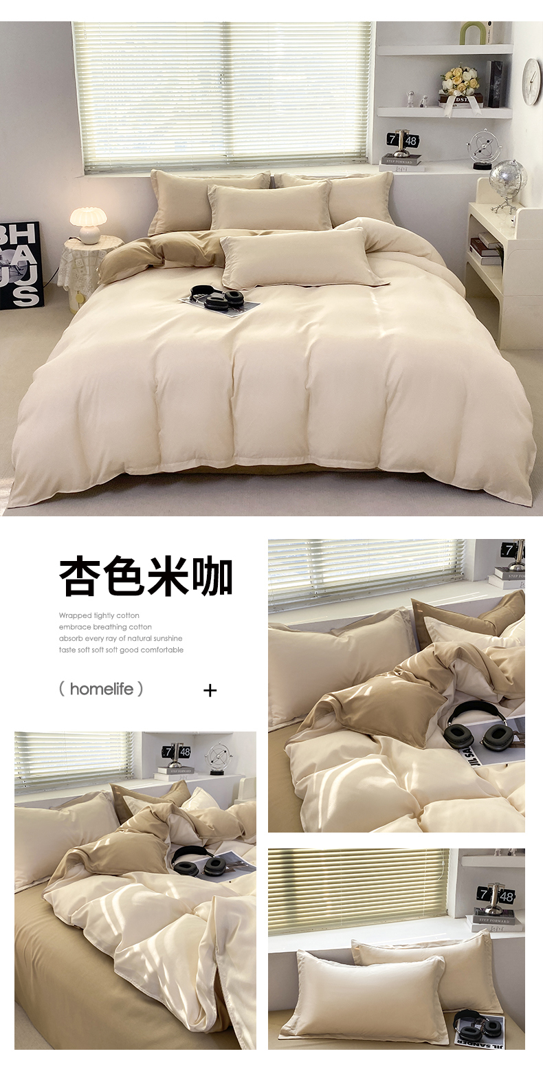 商品名称:米瑞娜 2024新款纯色双拼亲肤磨毛水洗棉四件套 杏色米咖