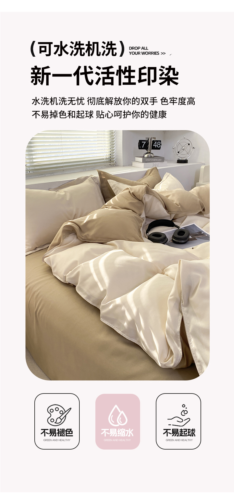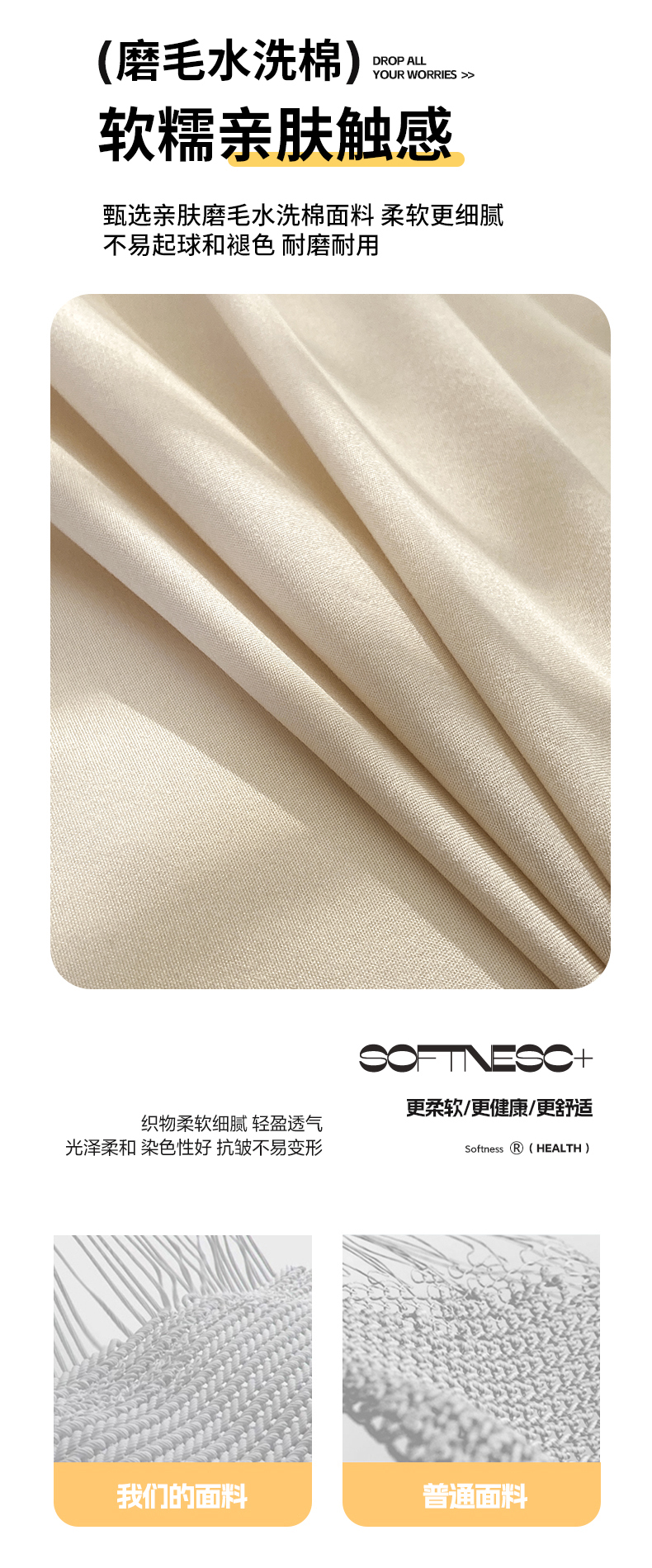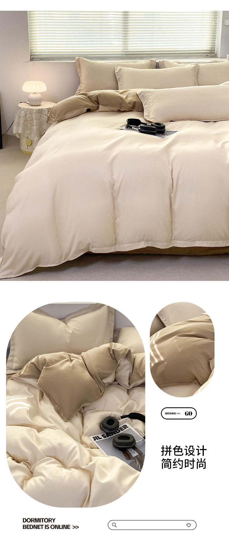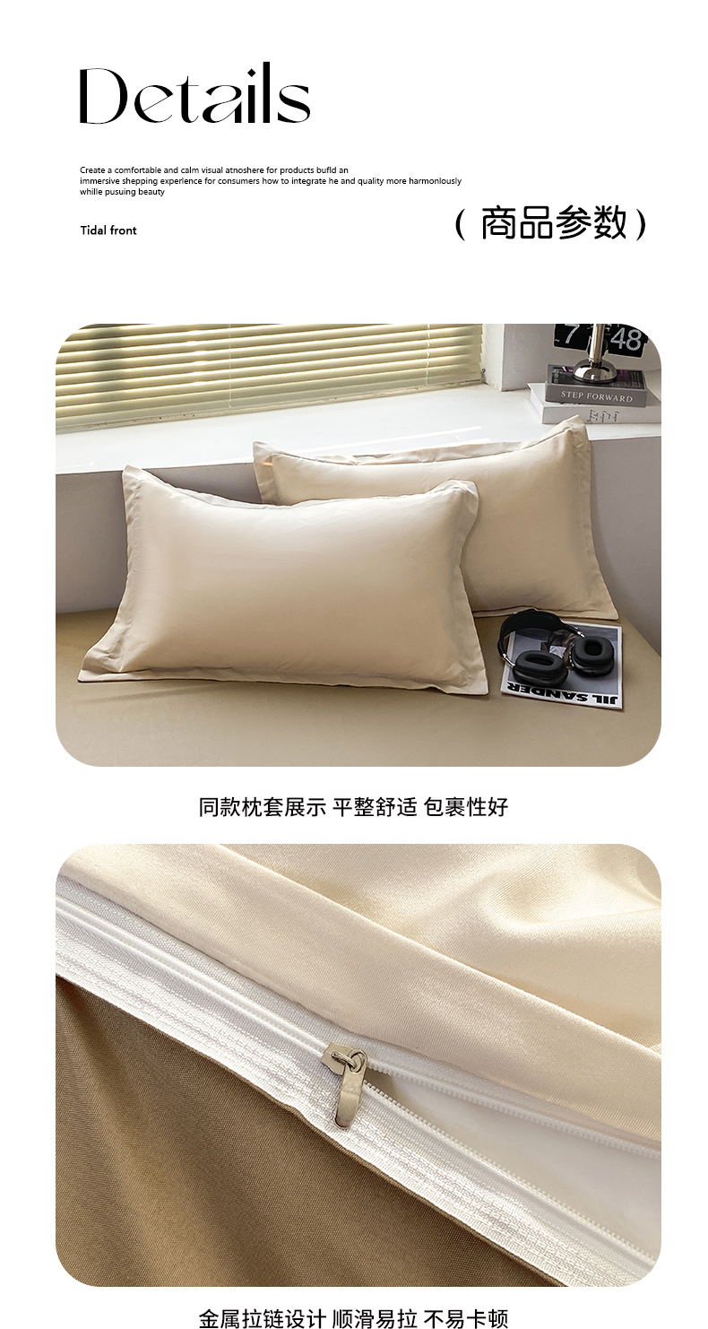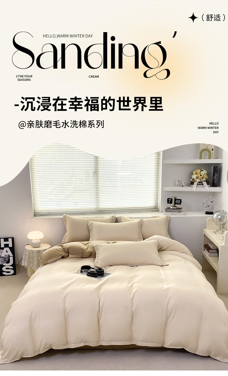 商品名称:米瑞娜 2024新款纯色双拼亲肤磨毛水洗棉四件套 杏色米咖