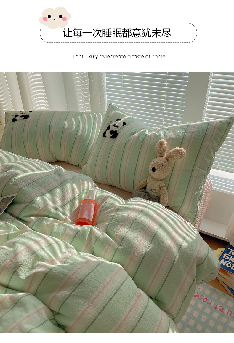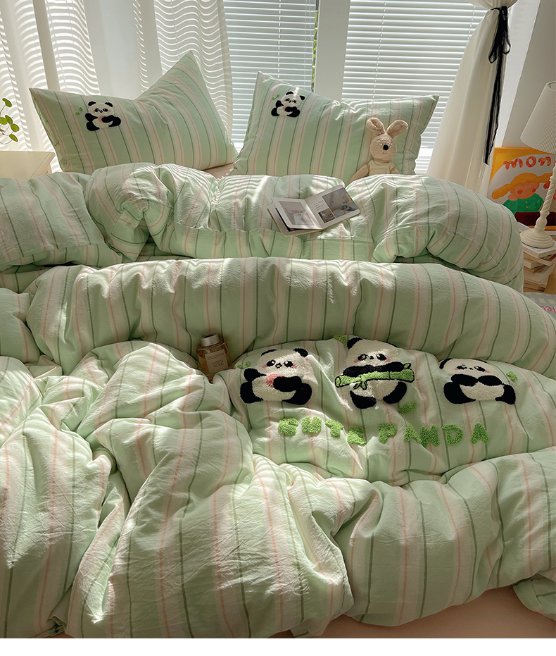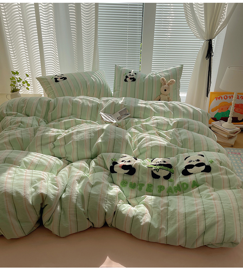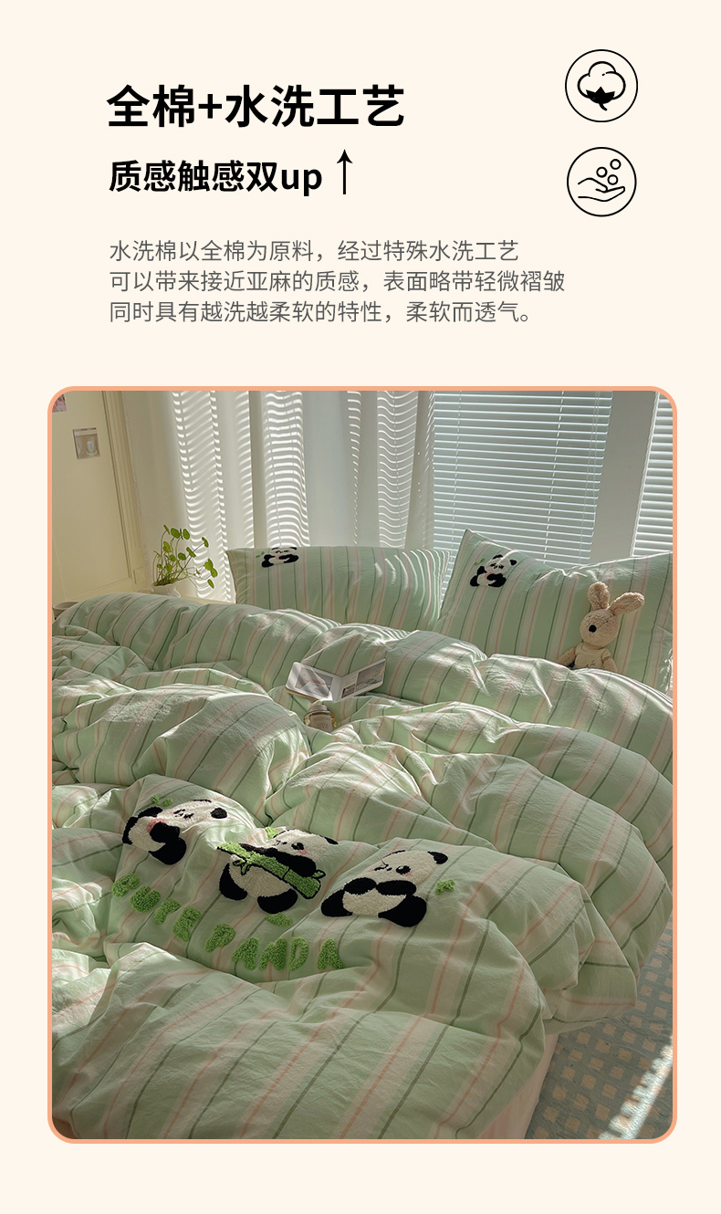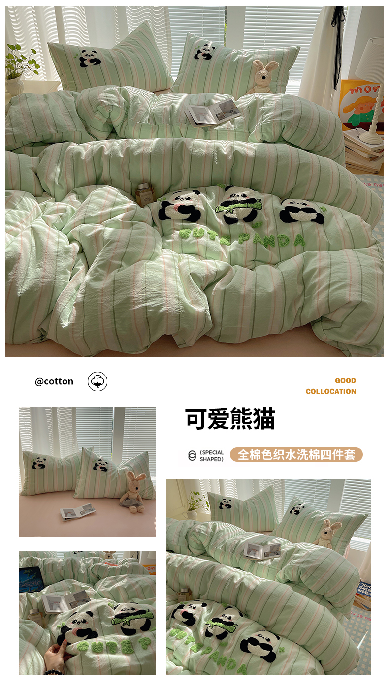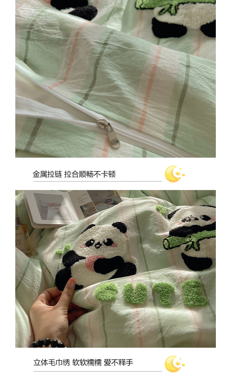 商品名称:捌月 2024新款A类全棉色织水洗棉毛巾绣四件套 可爱熊猫