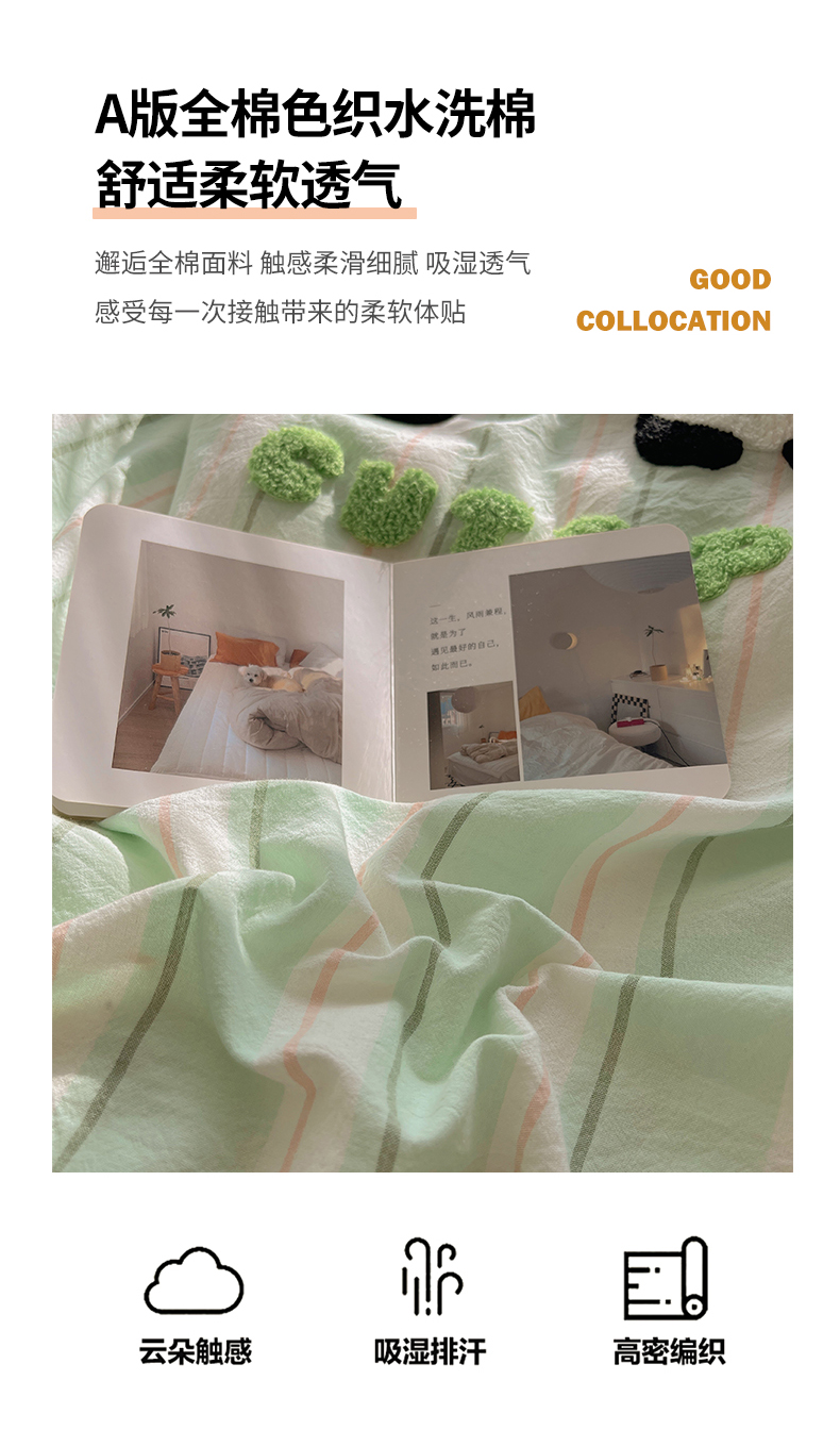 (总)捌月 2023新款13372全棉四件套竖纹印花系列,草莓园,兔小姐,小兰花,小甜心