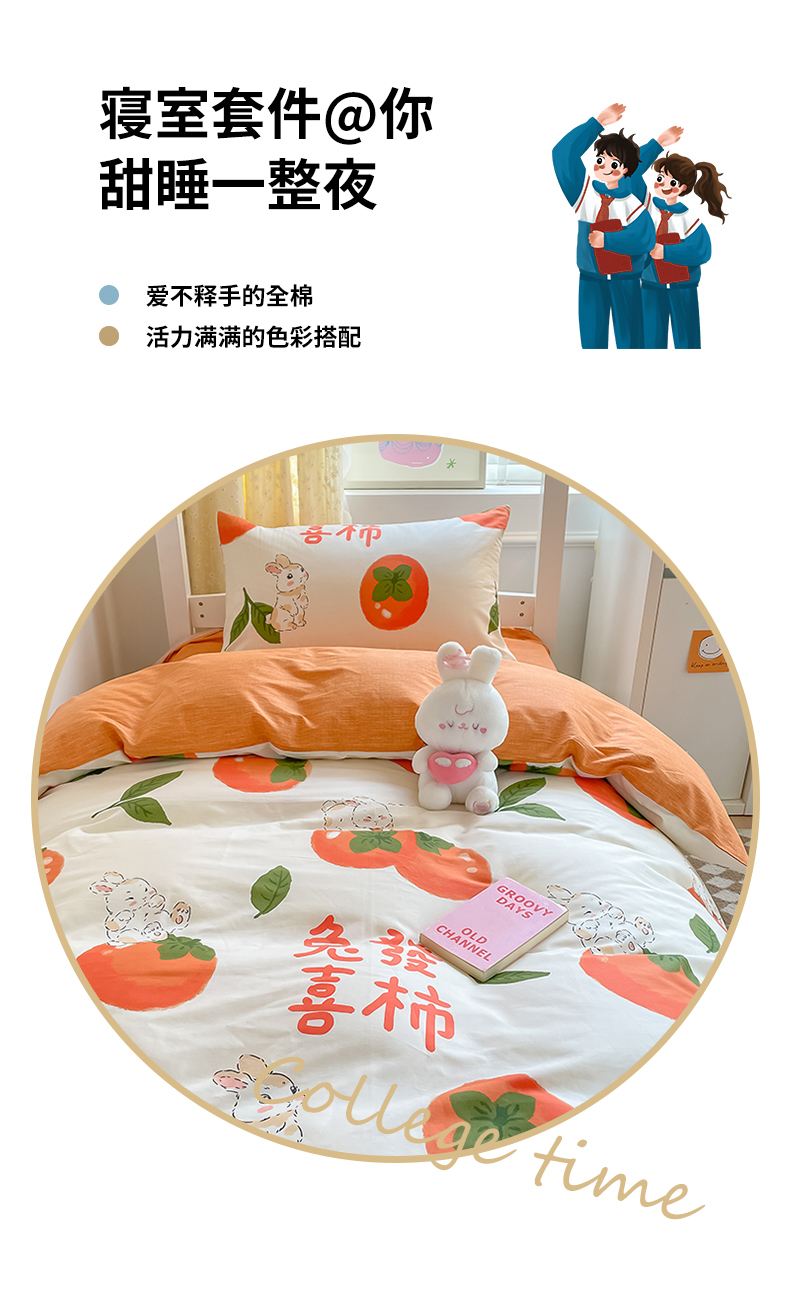 当前位置: 91家纺网 > 商品网购 > 床品套件 > 三件套 > 金鑫汇家纺 2024新款全棉宿舍印花三件套第一批 发财兔