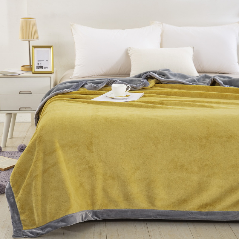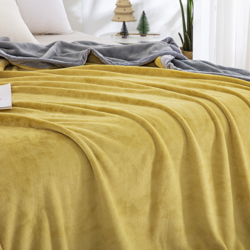 卉晨毛毯 2024新款牛奶绒纯色复合毯空调毯午睡毯毛毯 金玉灰黄