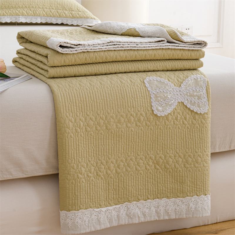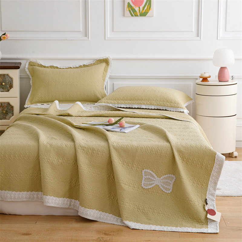 暖居 2024新款纯色双面纯棉床盖三件套 草绿