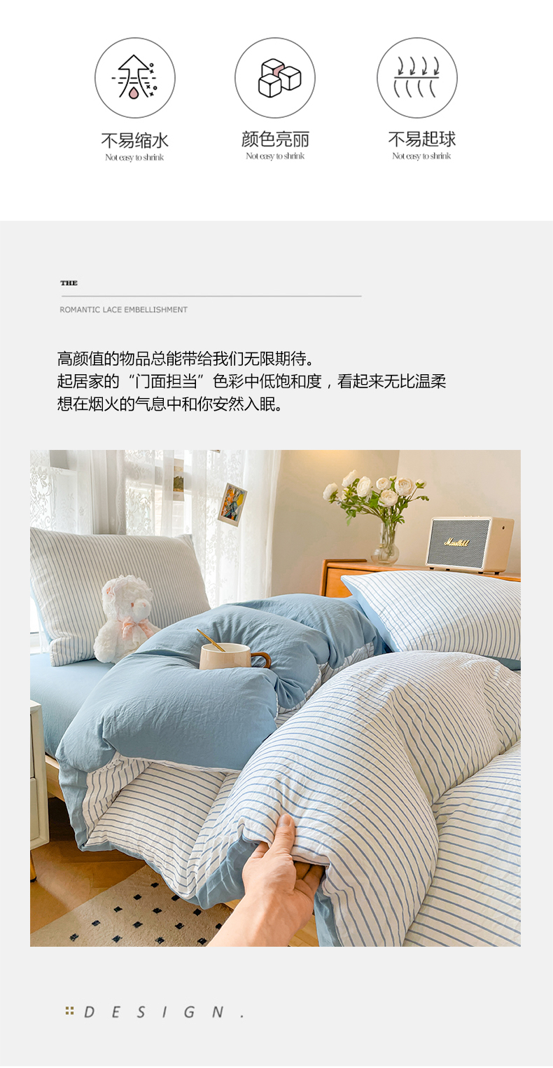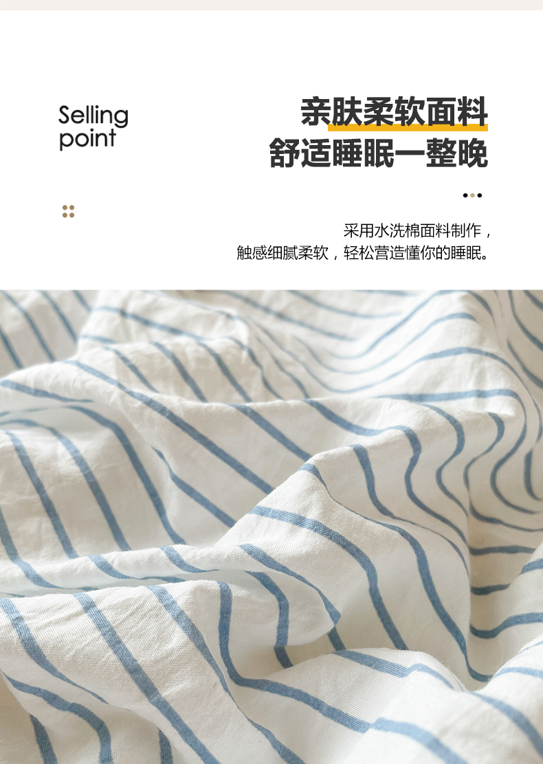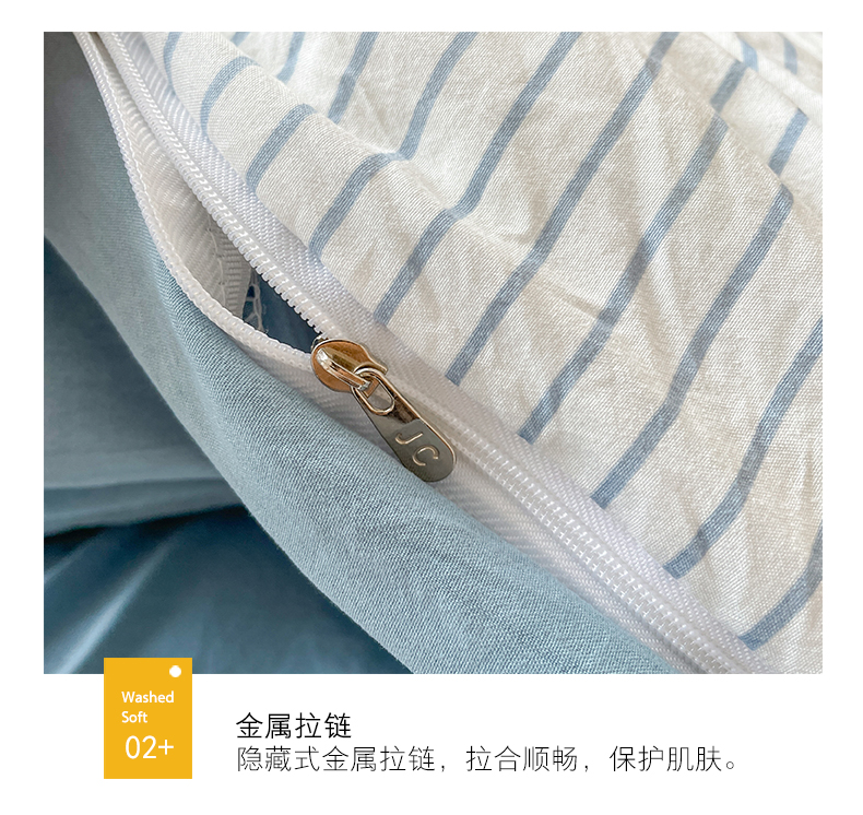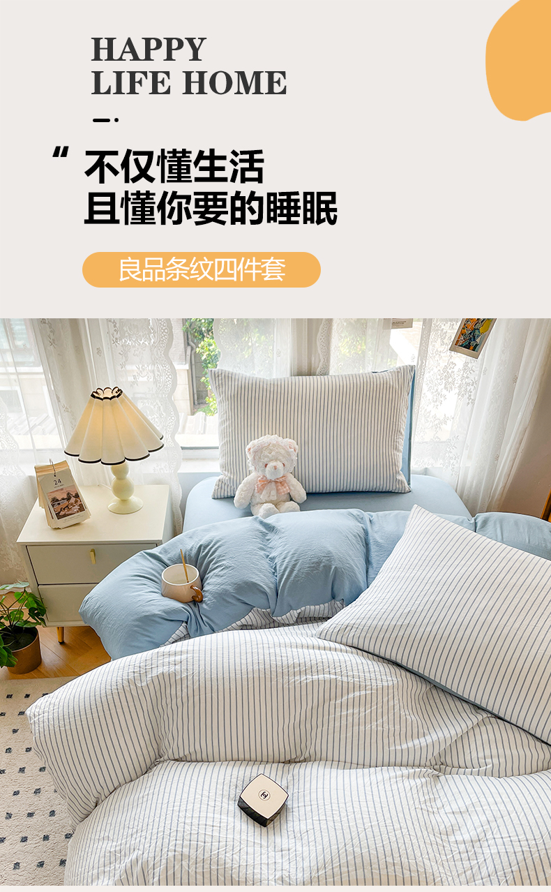 当前位置: 91家纺网 > 商品网购 > 床品套件 > 四件套 > 普通磨毛四件套 > 悦织湾家纺 2025新款105克水洗棉磨毛四件套 良品条纹蓝