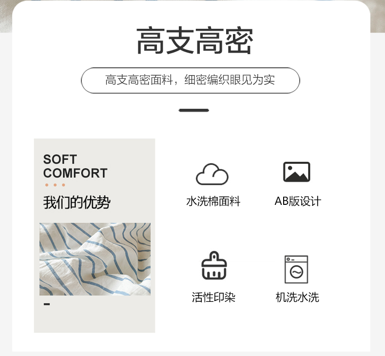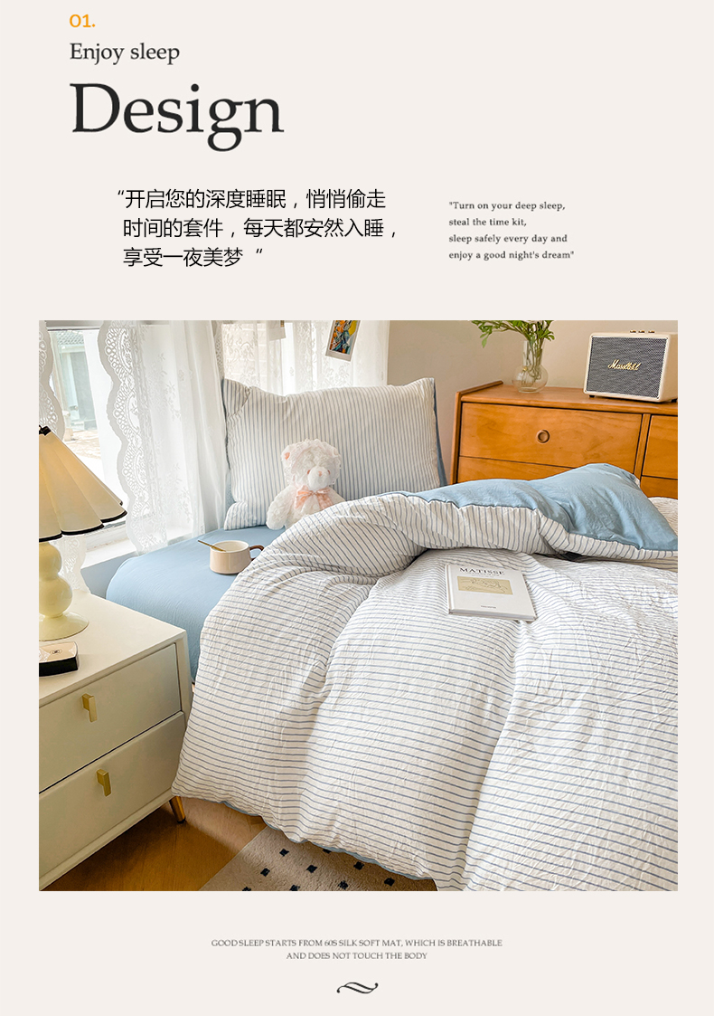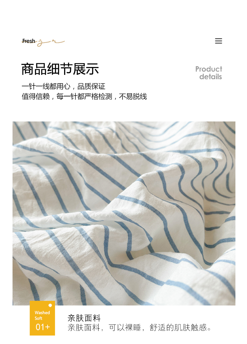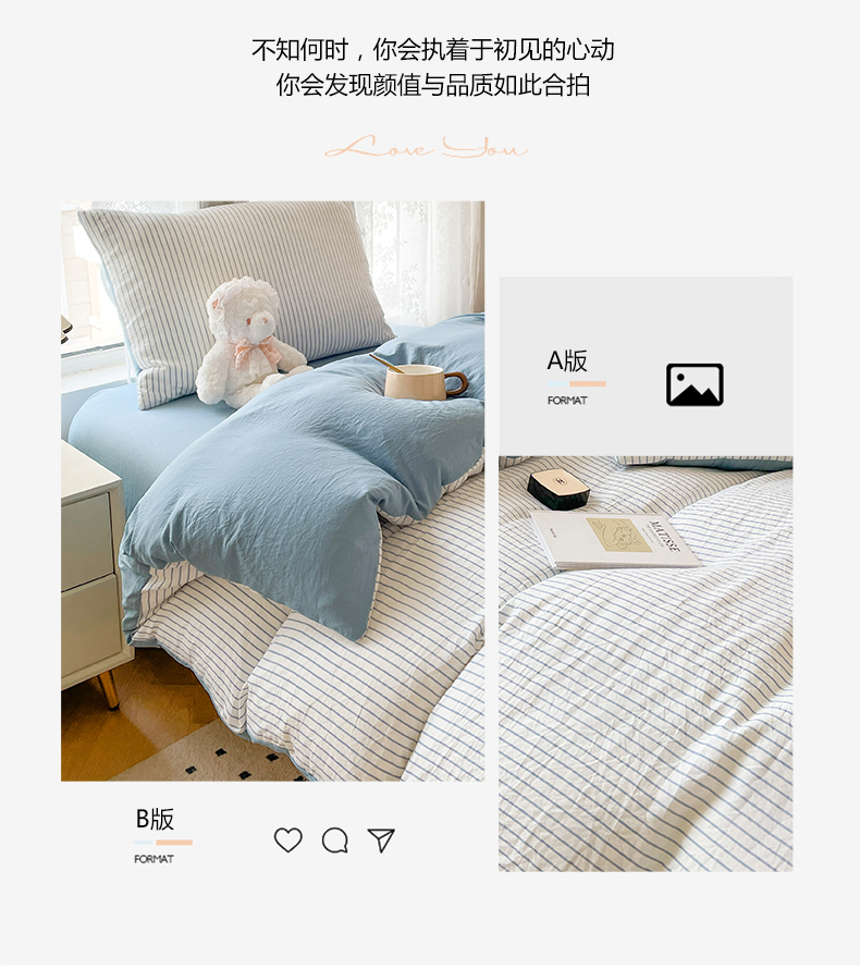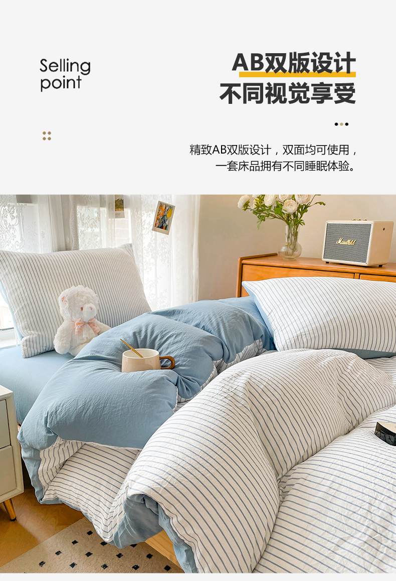 当前位置: 91家纺网 > 商品网购 > 床品套件 > 四件套 > 普通磨毛四件套 > 悦织湾家纺 2025新款105克水洗棉磨毛四件套 良品条纹蓝