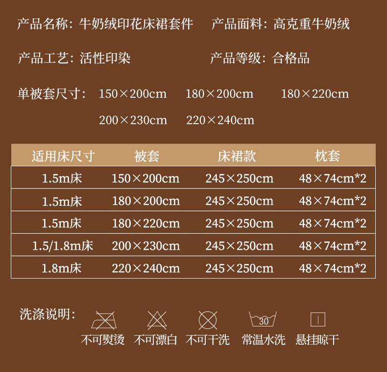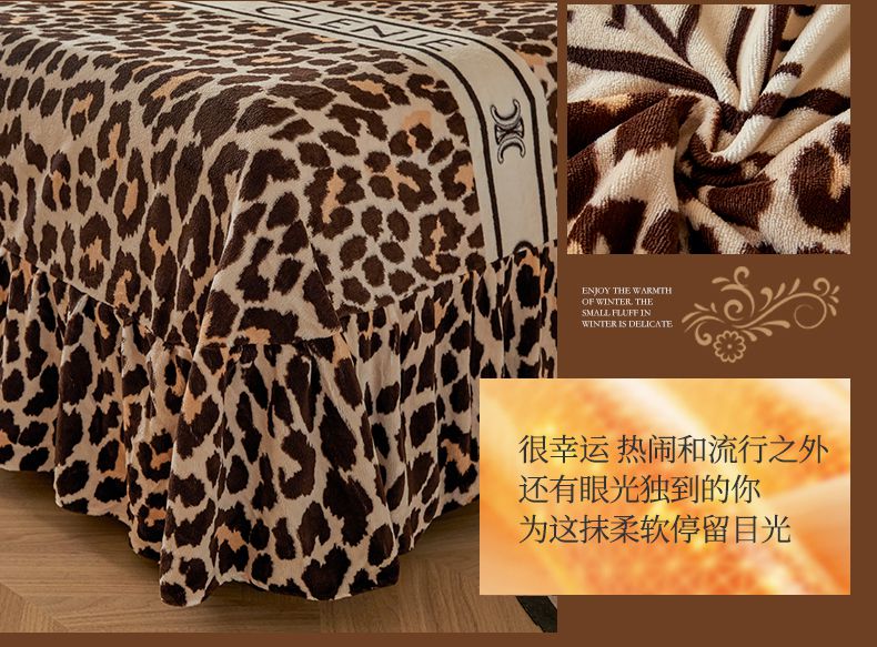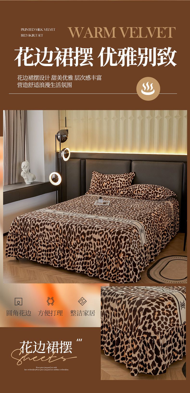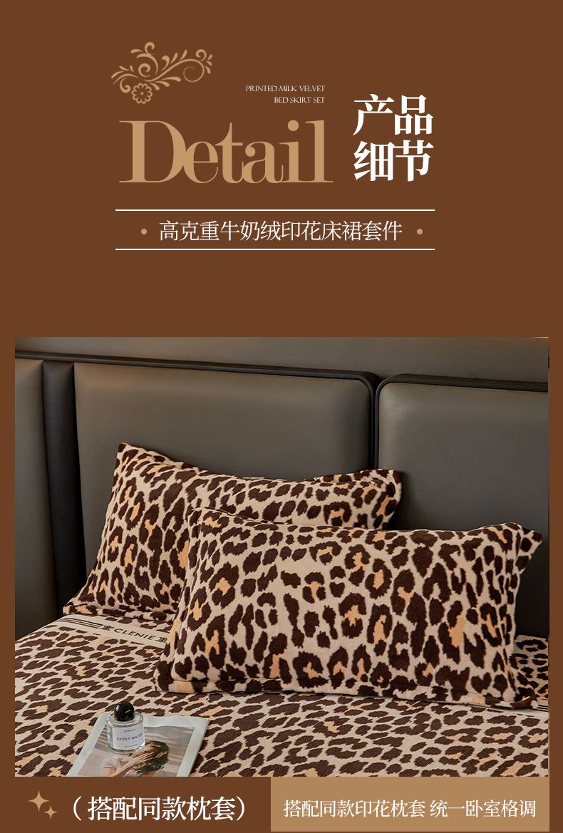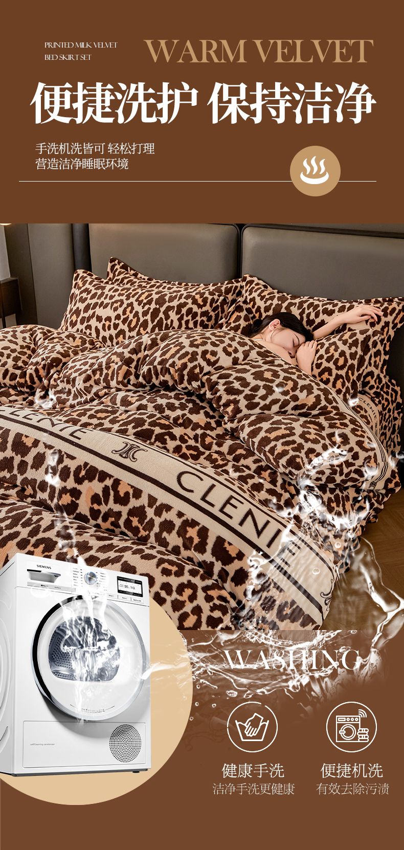 当前位置: 91家纺网 > 商品网购 > 床品套件 > 四件套 > 牛奶绒四件套 > 董韵家纺 2025新款高克重全消光牛奶绒法莱绒金貂绒印花单品被套床裙四件套(提供买家秀)豹纹元素