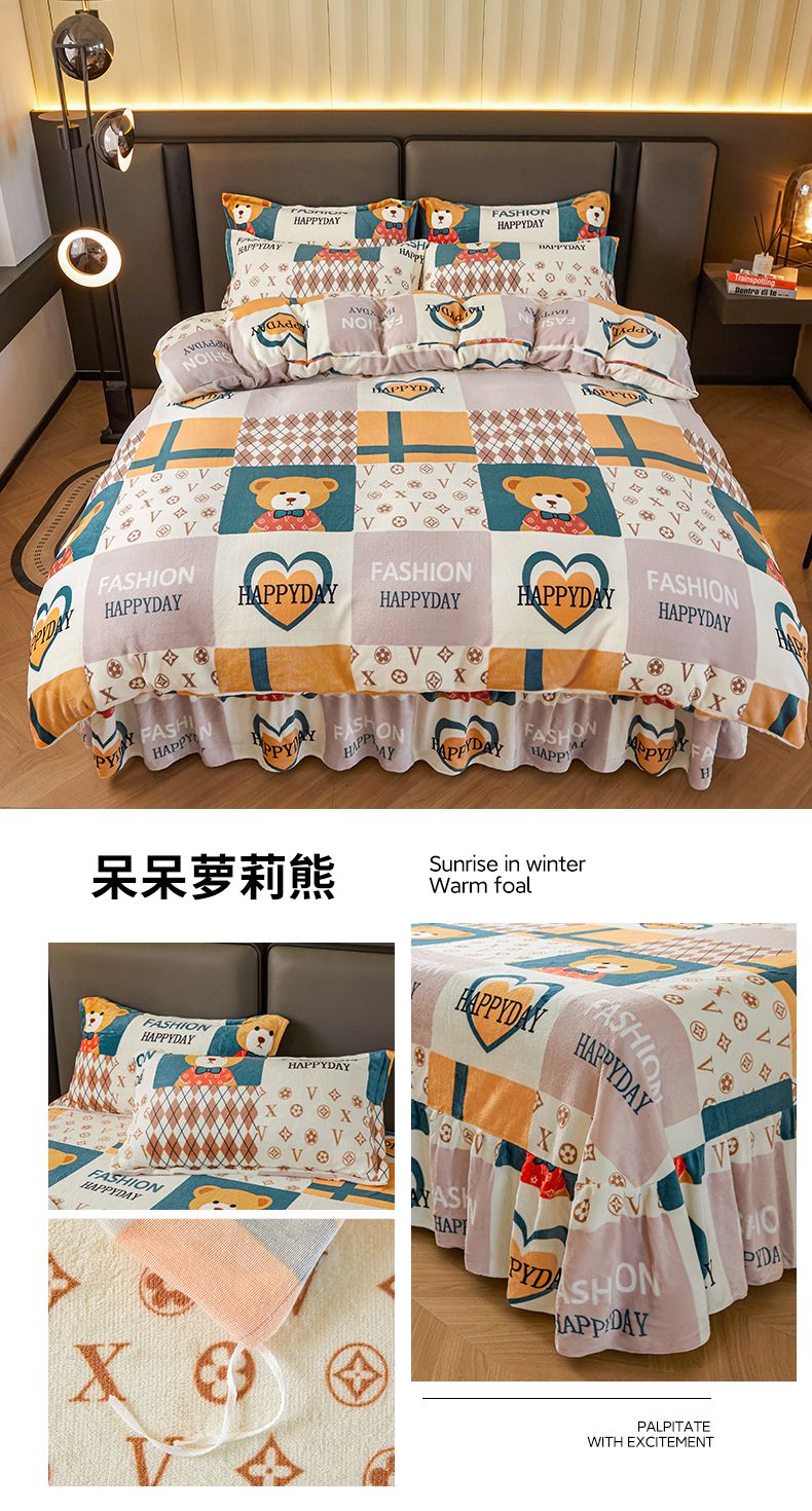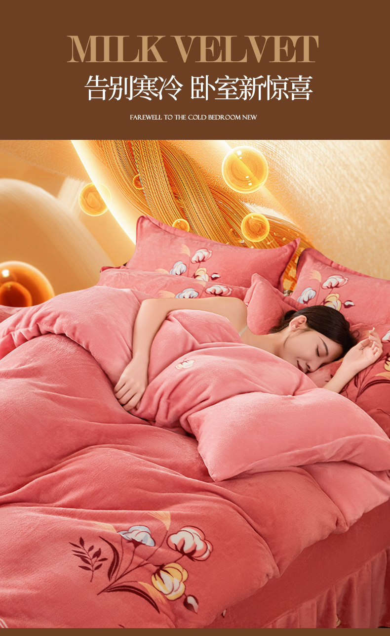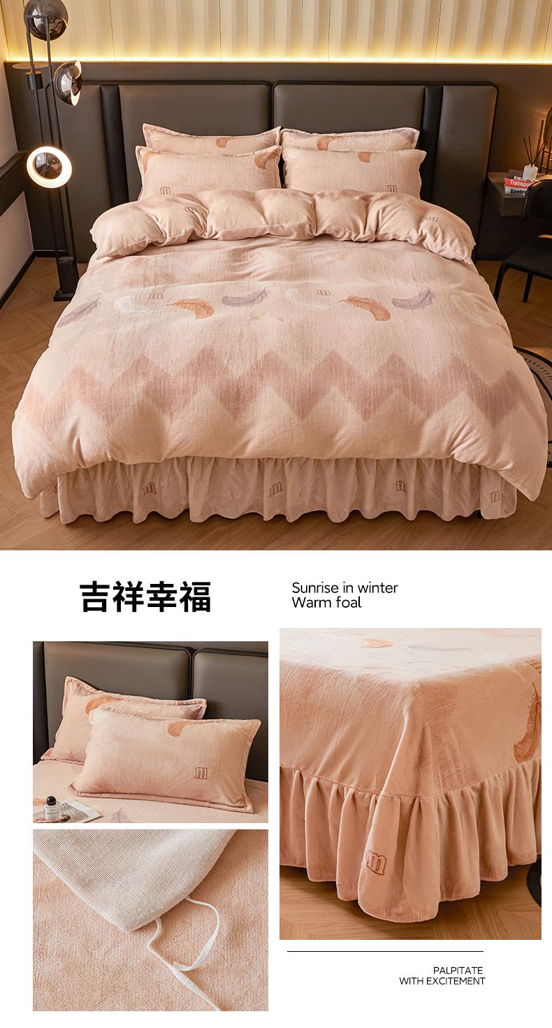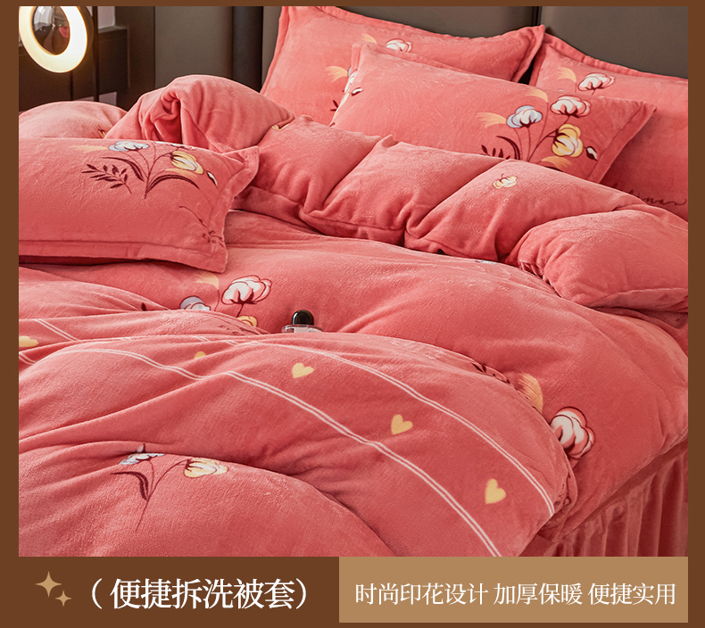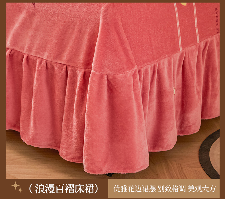 当前位置: 91家纺网 > 商品网购 > 床品套件 > 四件套 > 牛奶绒四件套 > 董韵家纺 2025新款高克重全消光牛奶绒法莱绒金貂绒印花单品被套床裙四件套(提供买家秀)情意绵绵