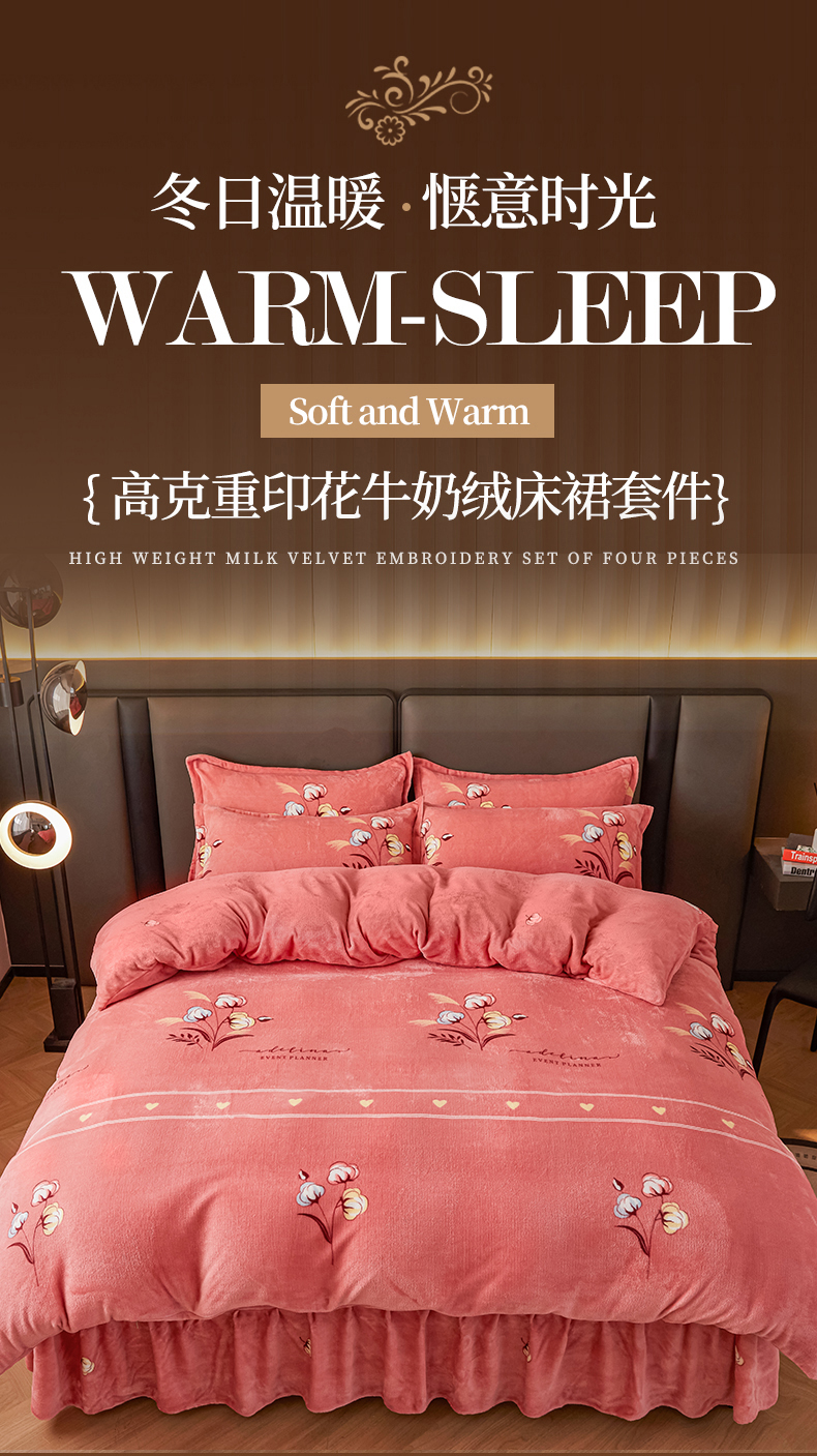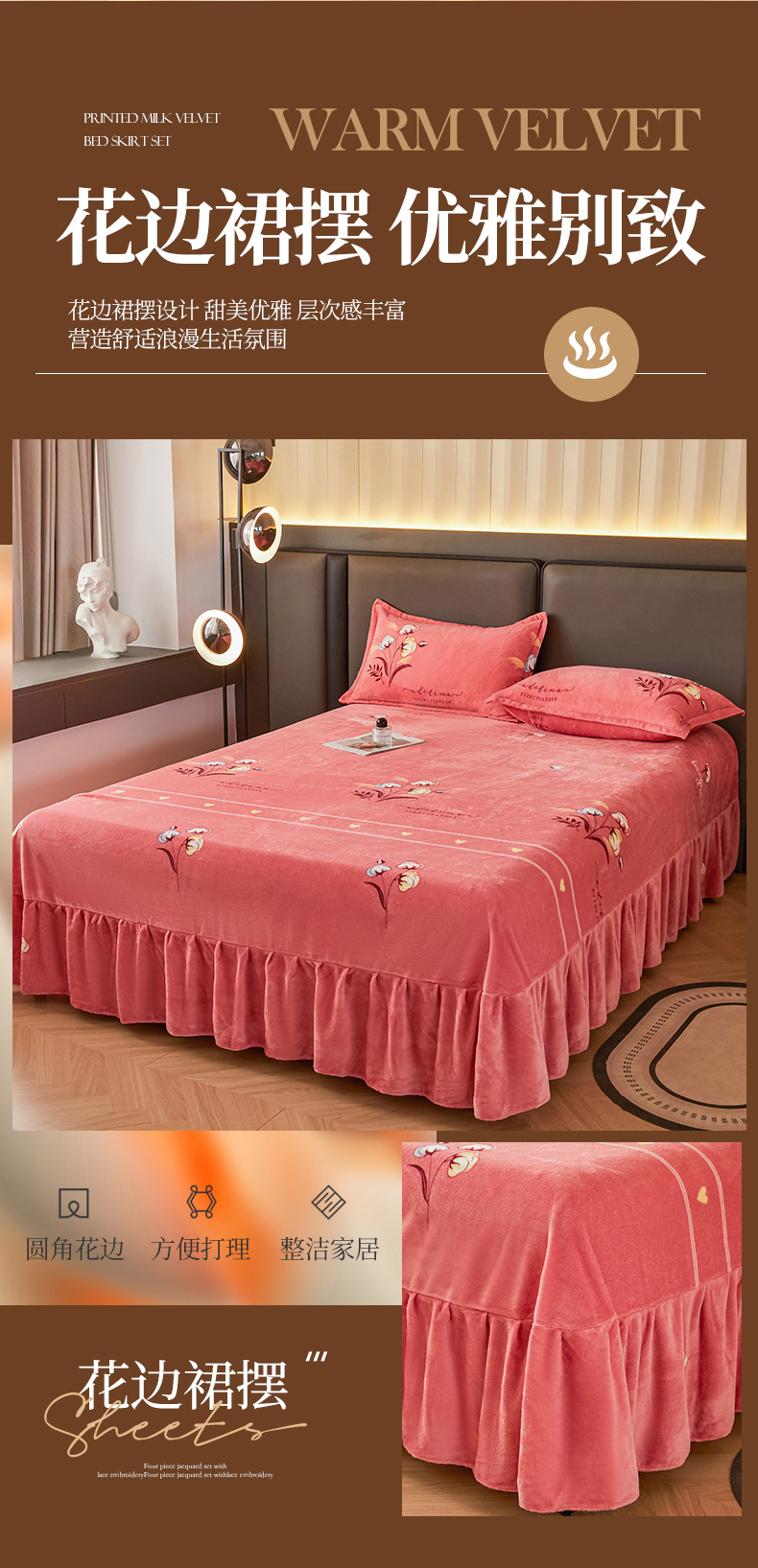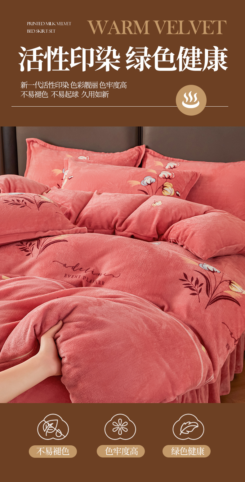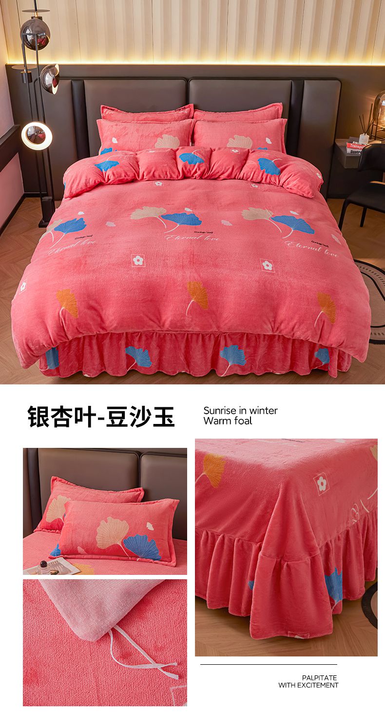 当前位置: 91家纺网 > 商品网购 > 床品套件 > 四件套 > 牛奶绒四件套 > 董韵家纺 2025新款高克重全消光牛奶绒法莱绒金貂绒印花单品被套床裙四件套(提供买家秀)情意绵绵