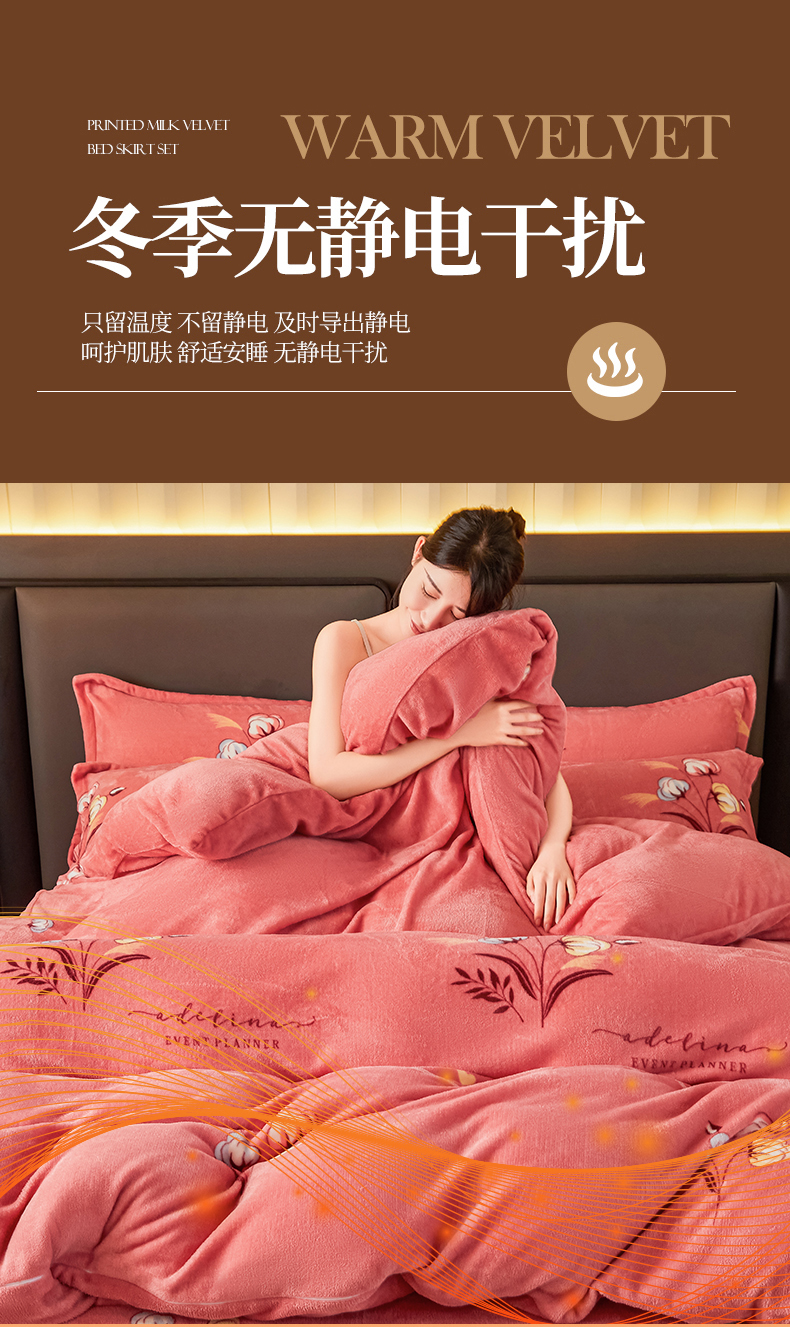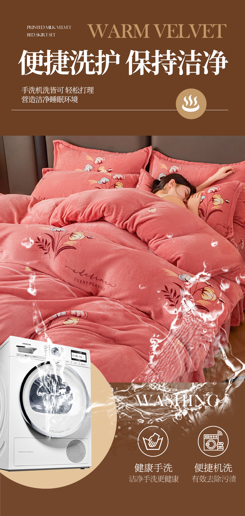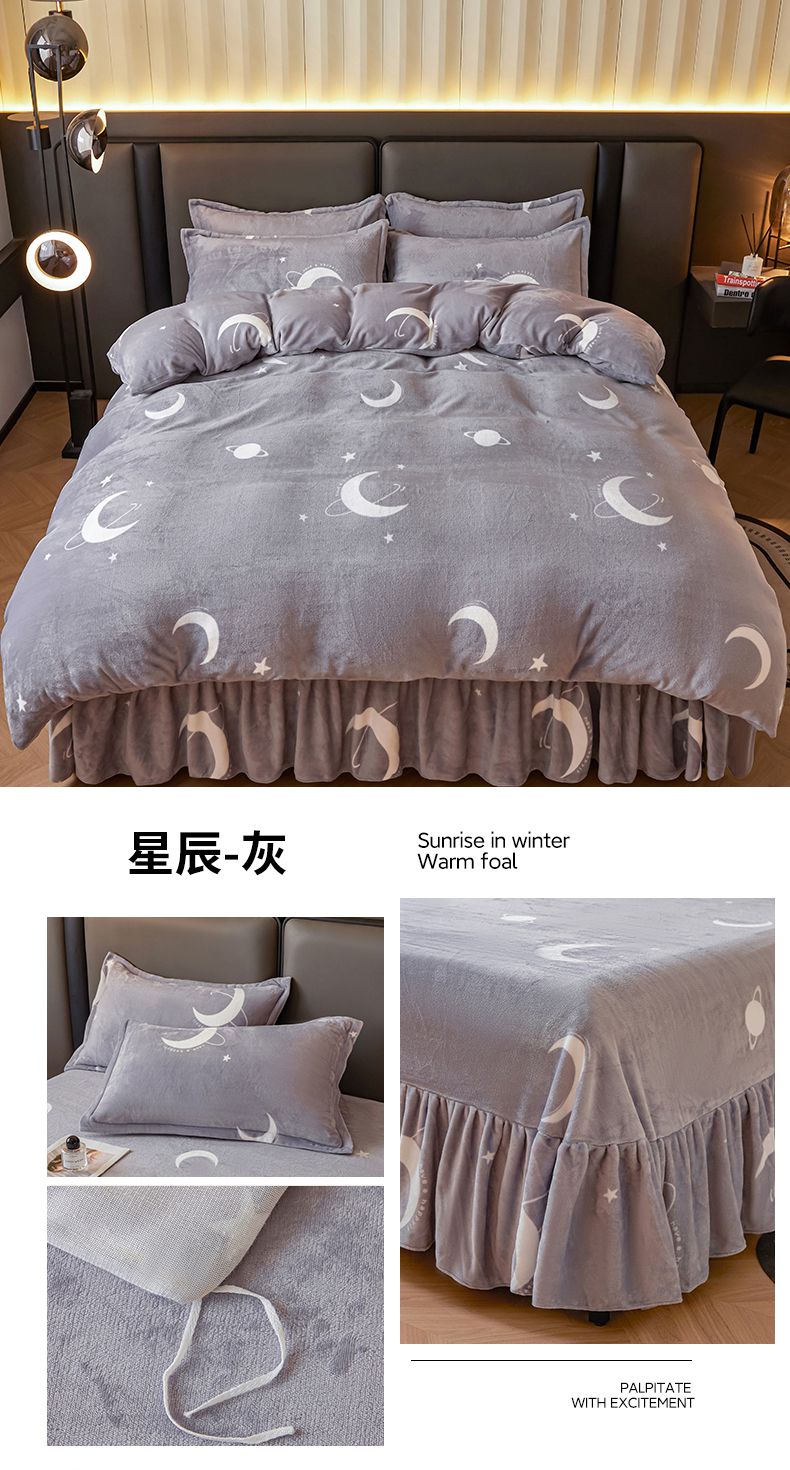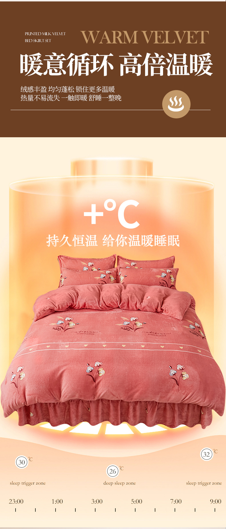 当前位置: 91家纺网 > 商品网购 > 床品套件 > 四件套 > 牛奶绒四件套 > 董韵家纺 2025新款高克重全消光牛奶绒法莱绒金貂绒印花单品被套床裙四件套(提供买家秀)情意绵绵