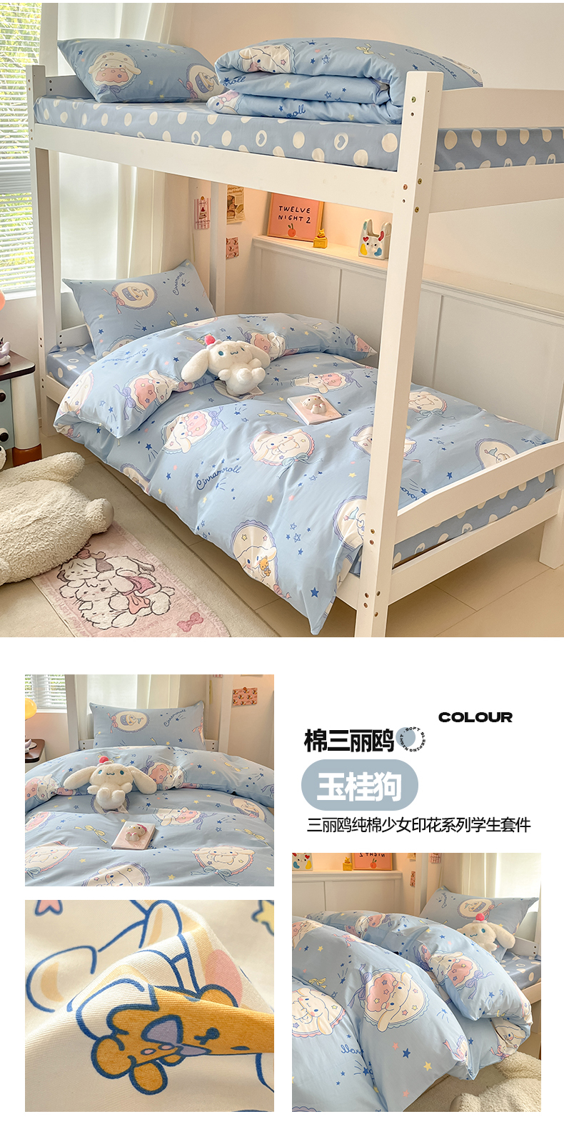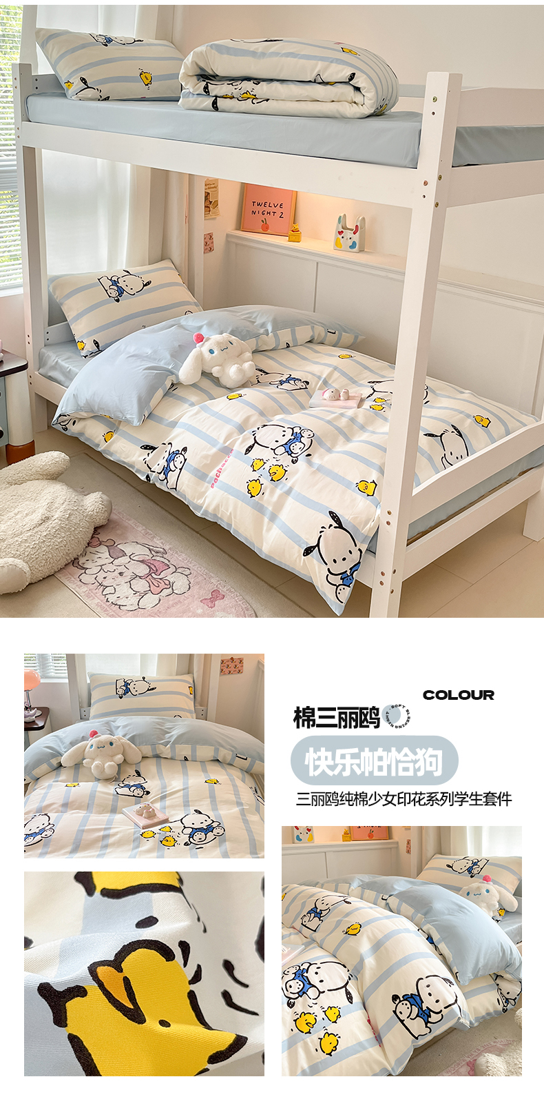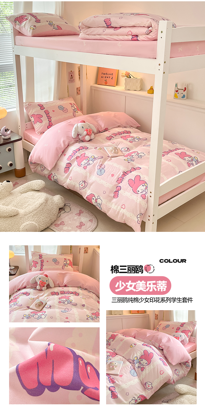 商品名称:(总)2024新款三丽鸥授权全棉少女印花系列学生三件套四件套