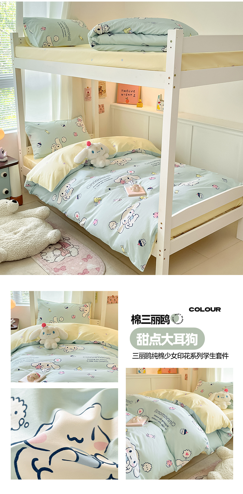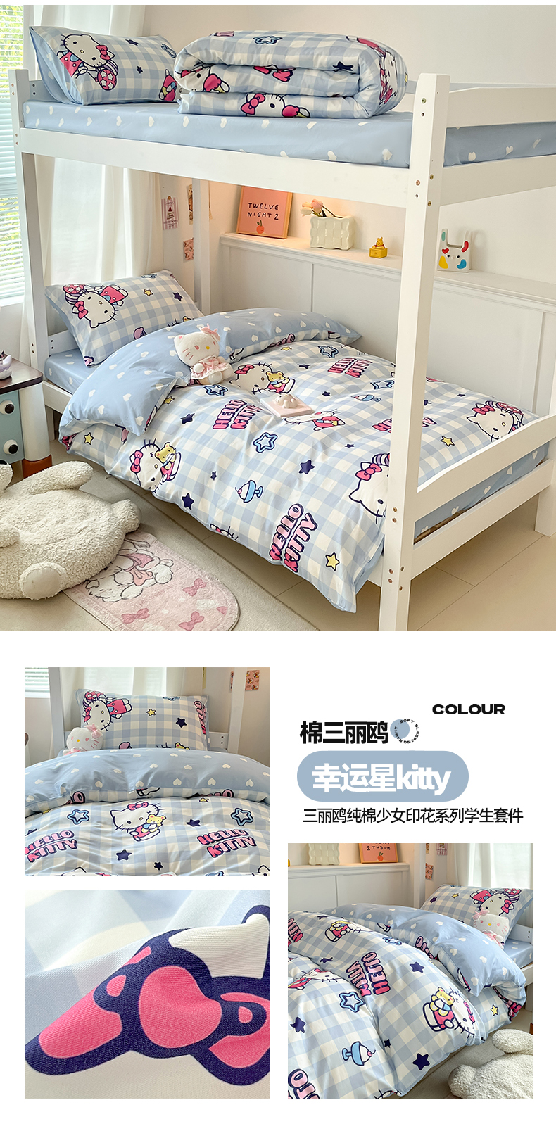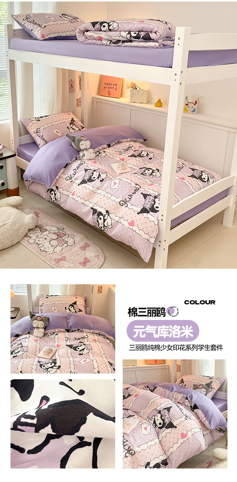 商品名称:(总)2024新款三丽鸥授权全棉少女印花系列学生三件套四件套