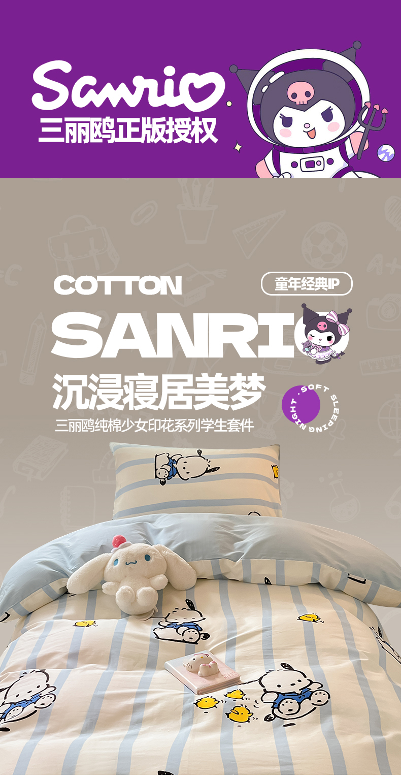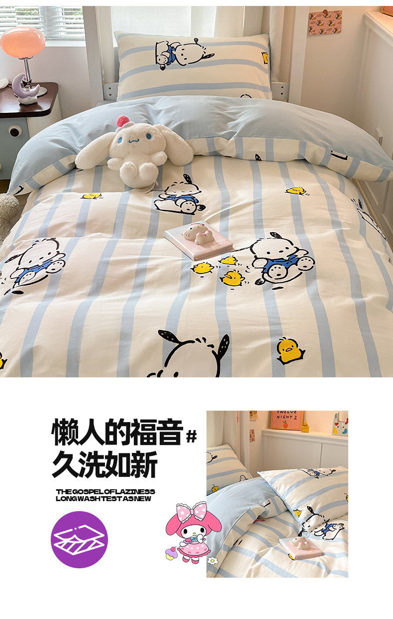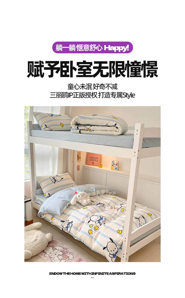 当前位置: 91家纺网 > 商品网购 > 床品套件 > 四件套 > 全棉普通四件套 > 2024新款三丽鸥授权全棉少女印花系列学生三件套四件套 棉三丽鸥-快乐帕恰狗
