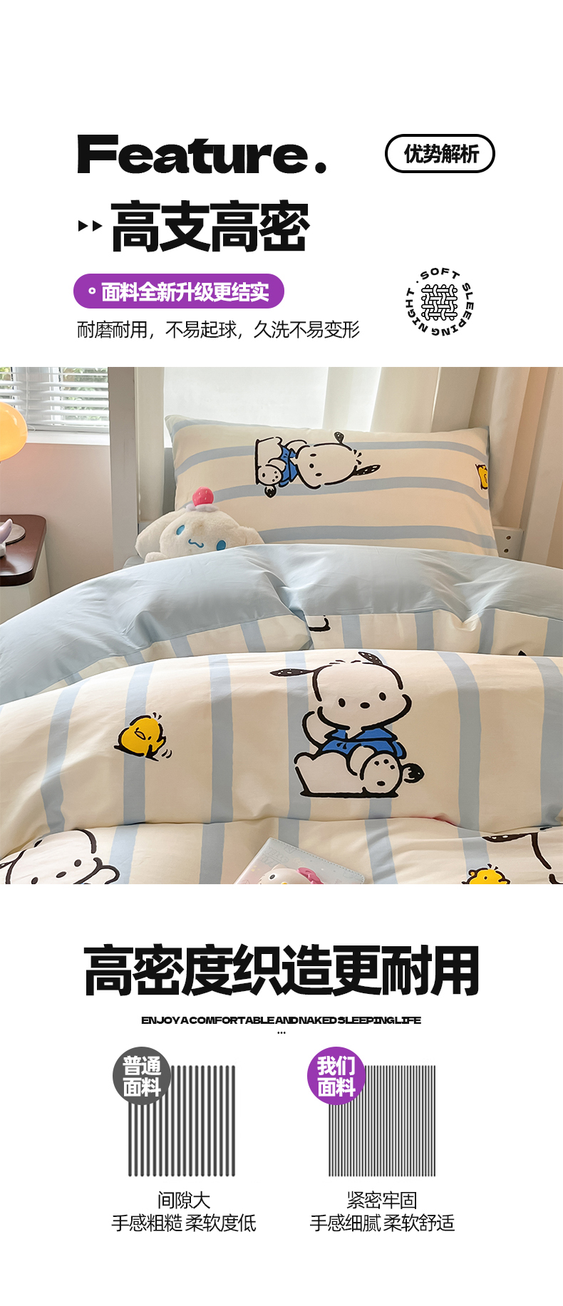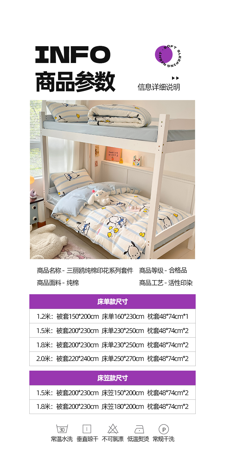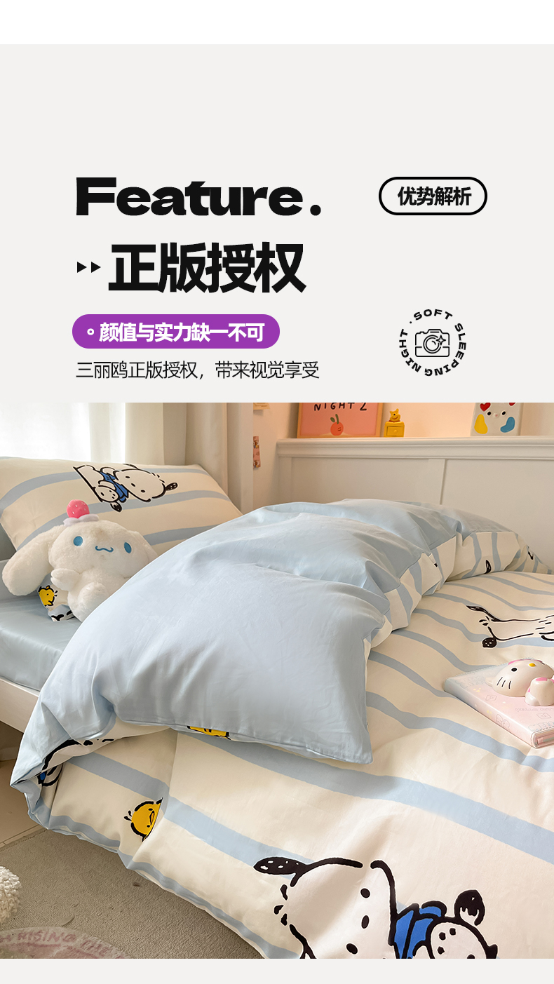 当前位置: 91家纺网 > 商品网购 > 床品套件 > 四件套 > 全棉普通四件套 > 2024新款三丽鸥授权全棉少女印花系列学生三件套四件套 棉三丽鸥-快乐帕恰狗