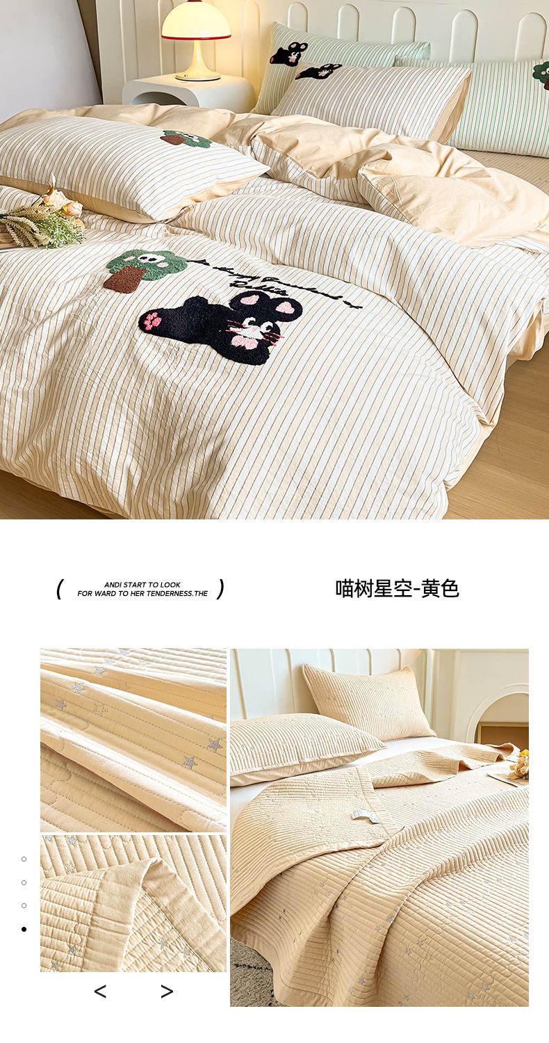 商品名称:热卖水洗棉喵树星空床单四件套床盖套件 喵树星空-咖色