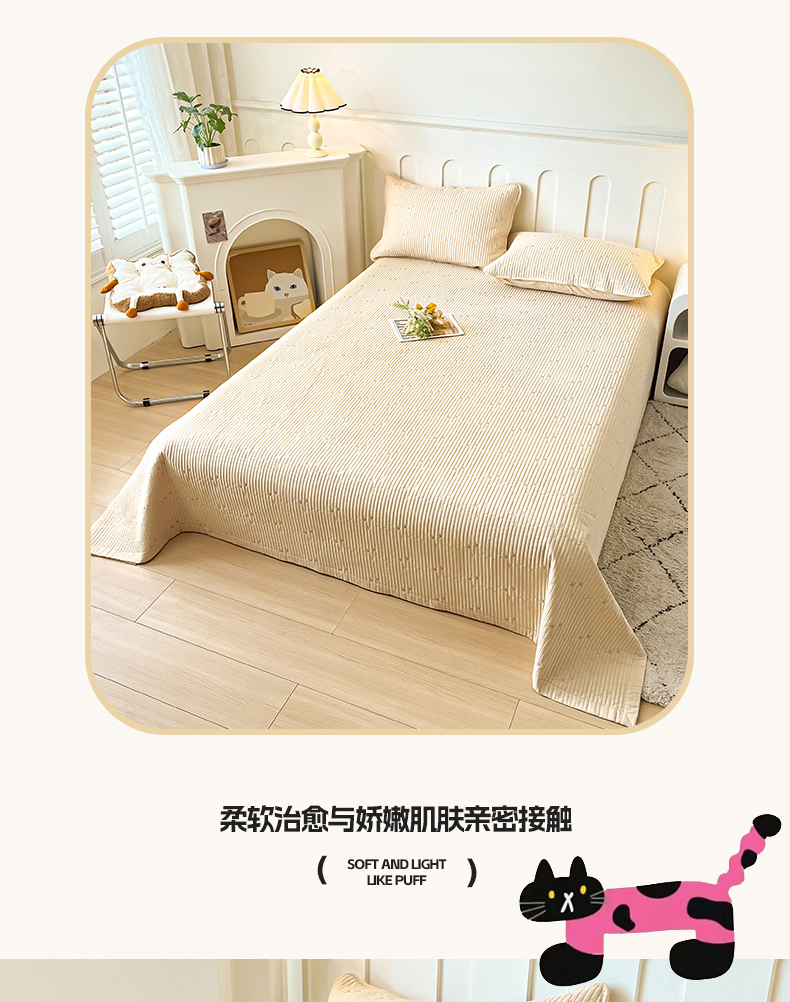 (总)上喜 2025新款韩国砂洗床盖+多功能夏被,白色,粉色,黄色,灰色,紫色