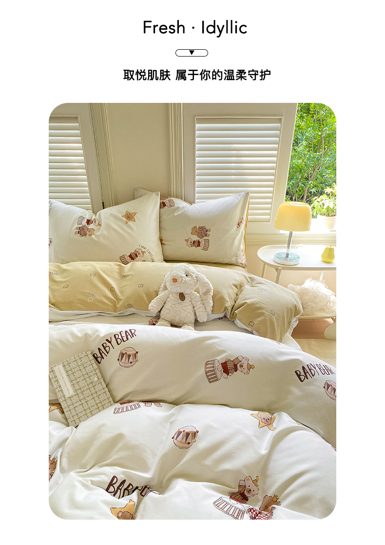 (总)黑马家居 2023新款喷气全棉斜纹四件套,爱意绵绵,贝尔熊,春意,六叶草,梦游仙境,蜜桔兔,七色花语,油画小兔,月桂幽香