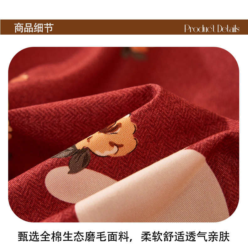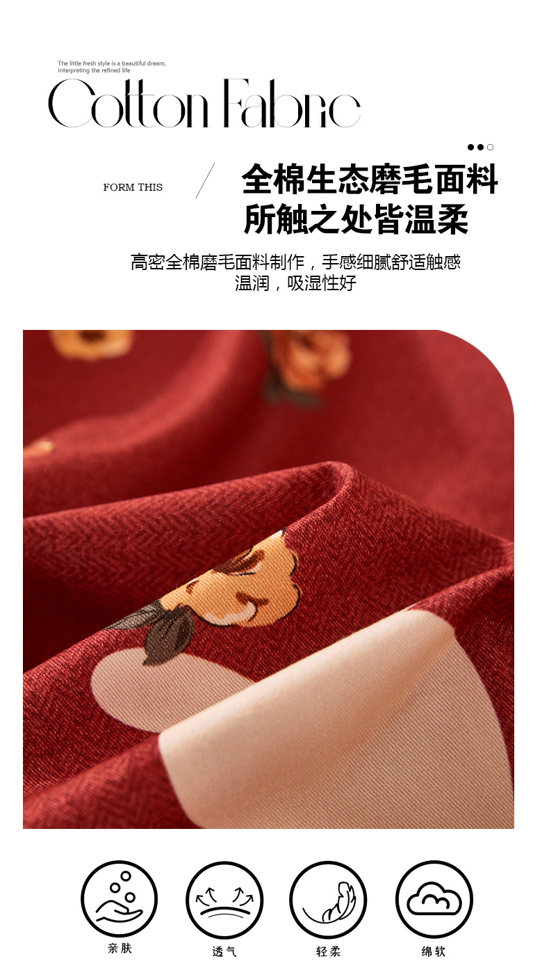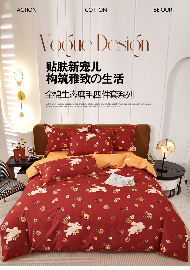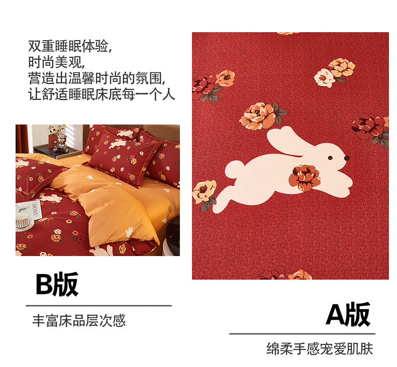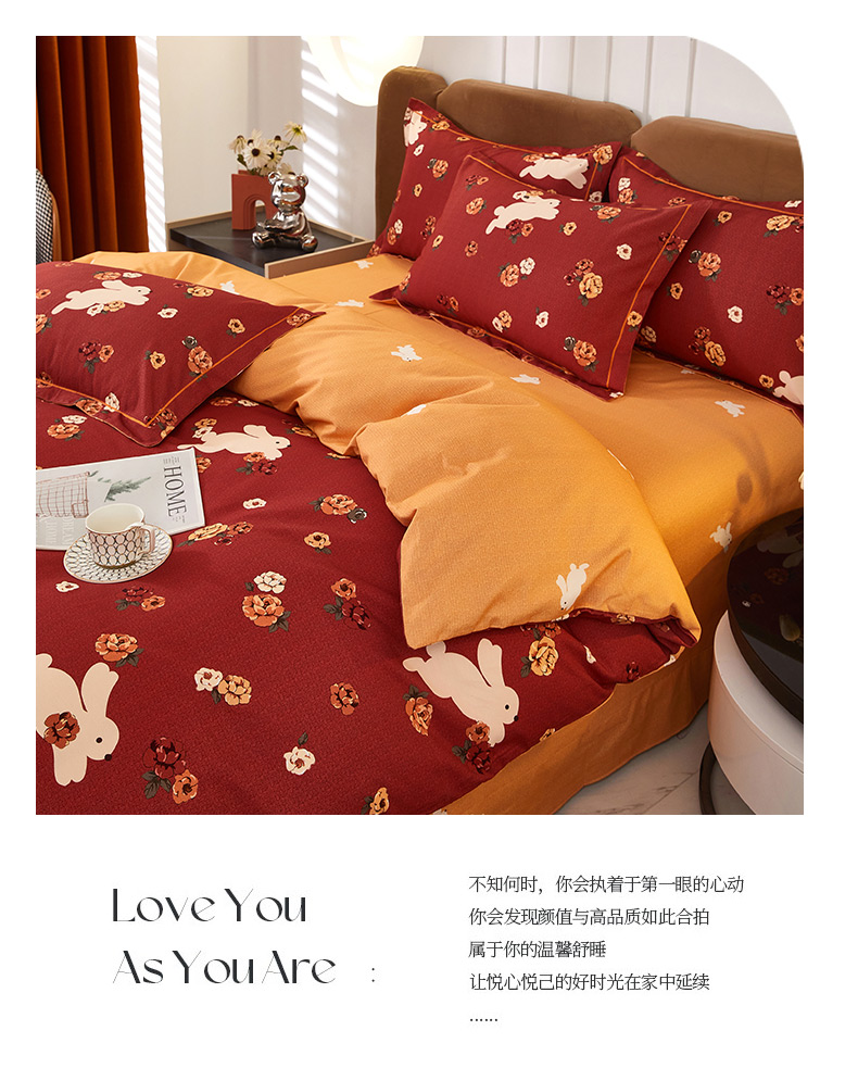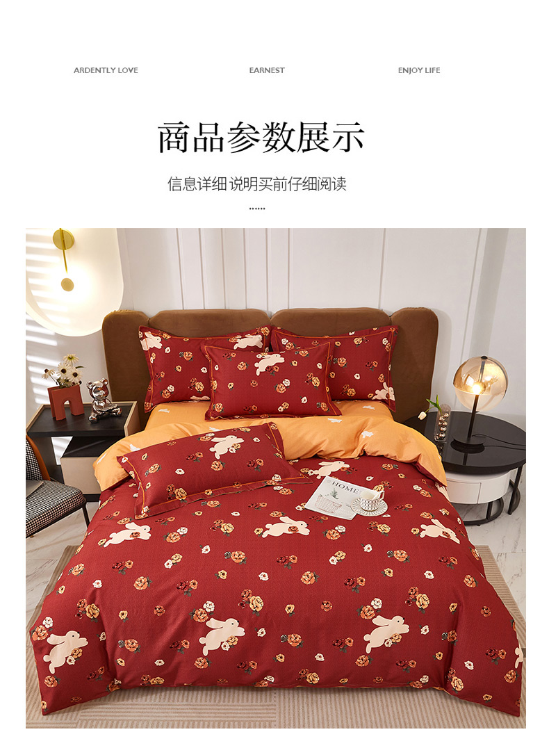 商品名称:雲归梦 2024新款加厚全棉生态磨毛大版四件套 快乐节奏 红