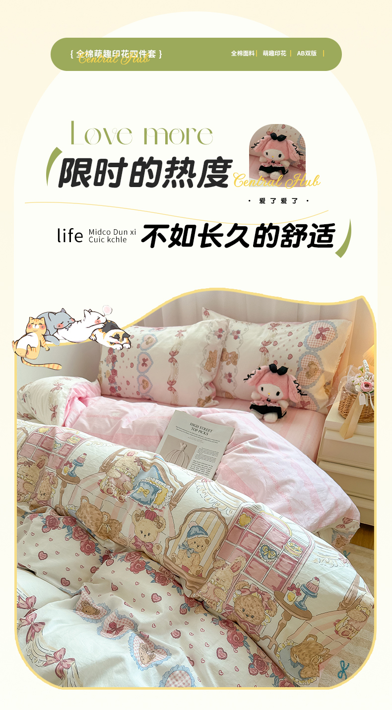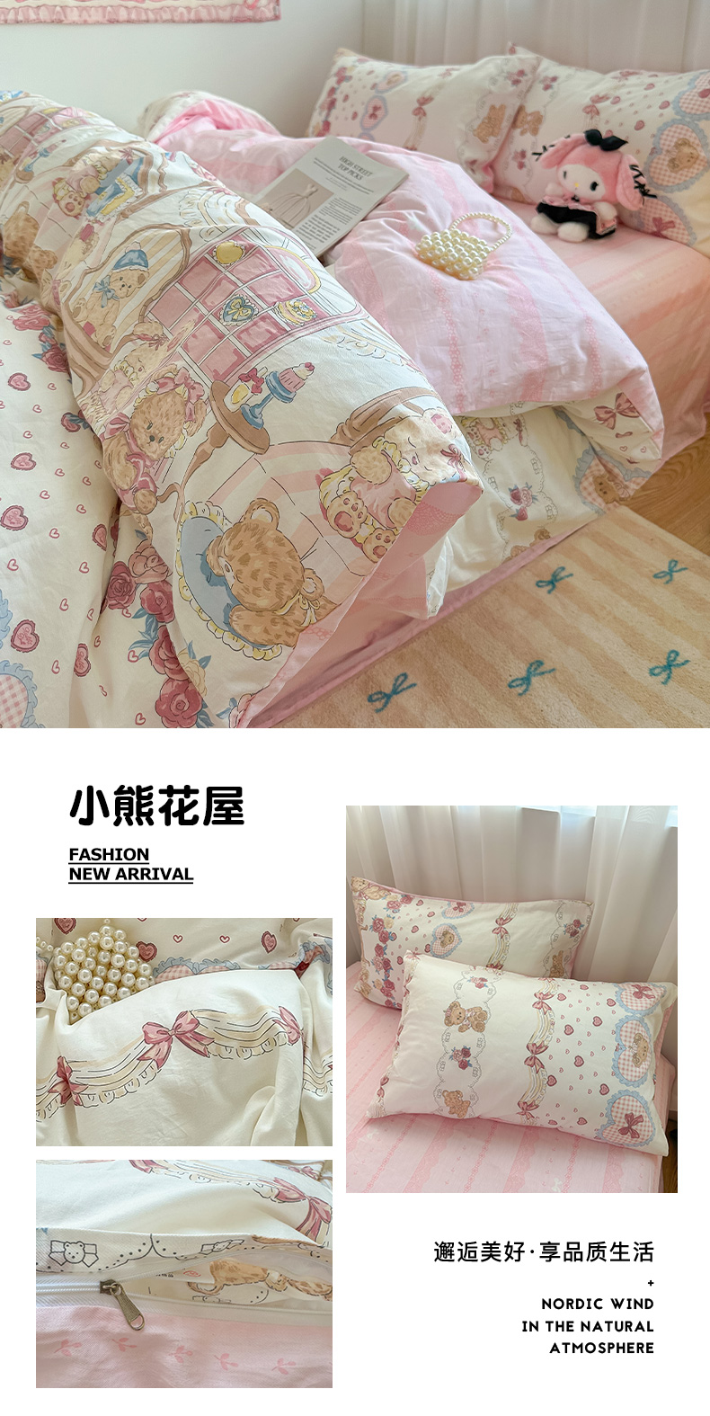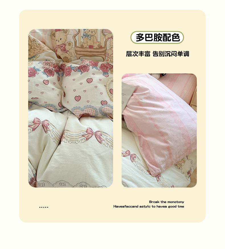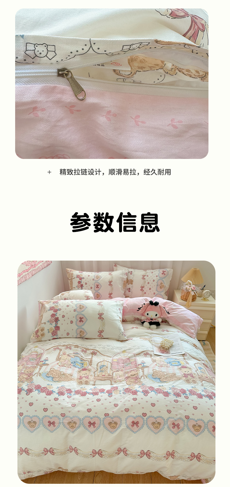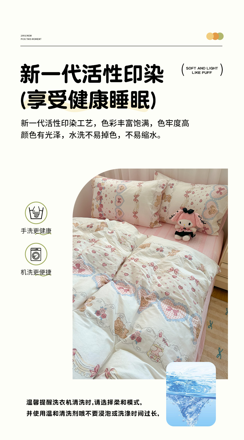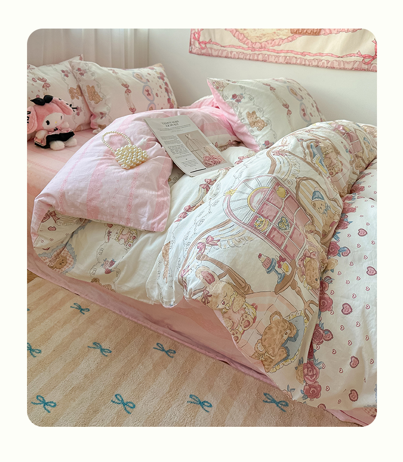 商品名称:瑞莱 2024新款洛丽塔风全棉印花四件套 小熊花屋