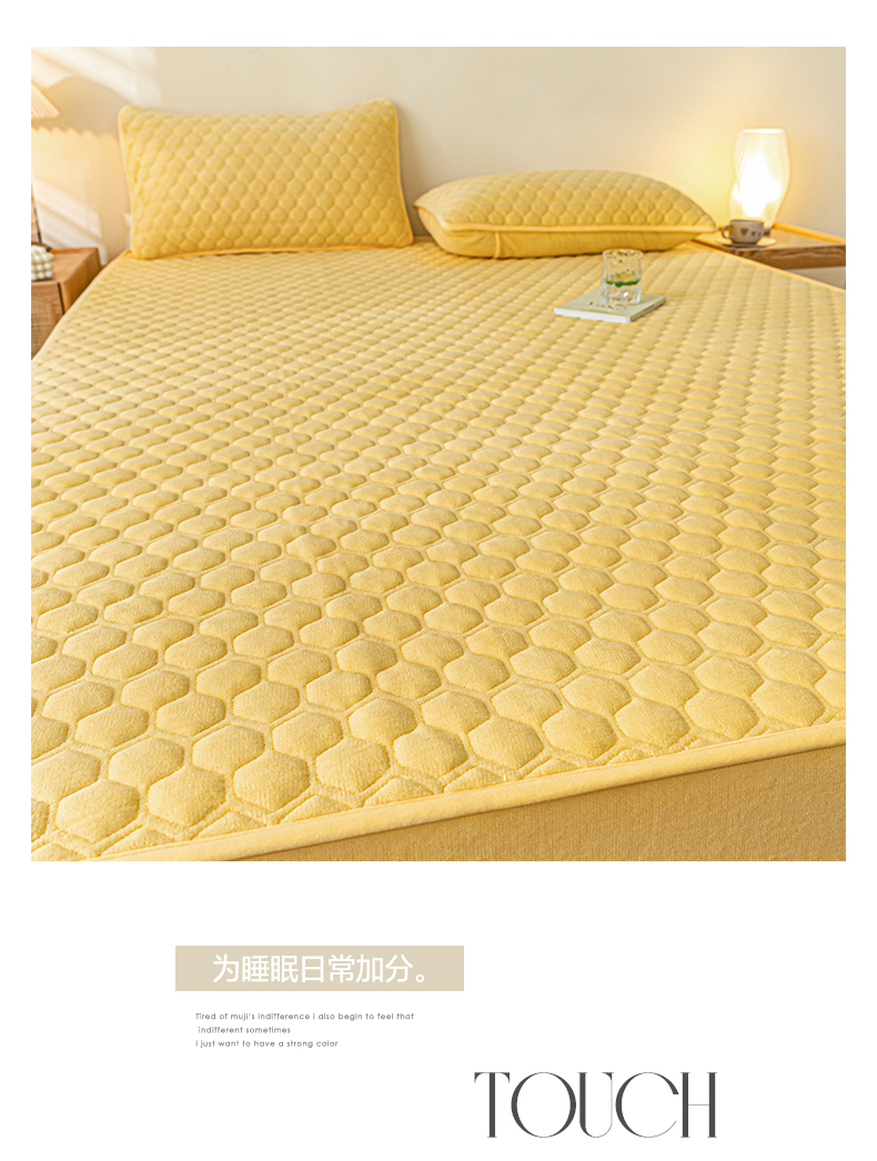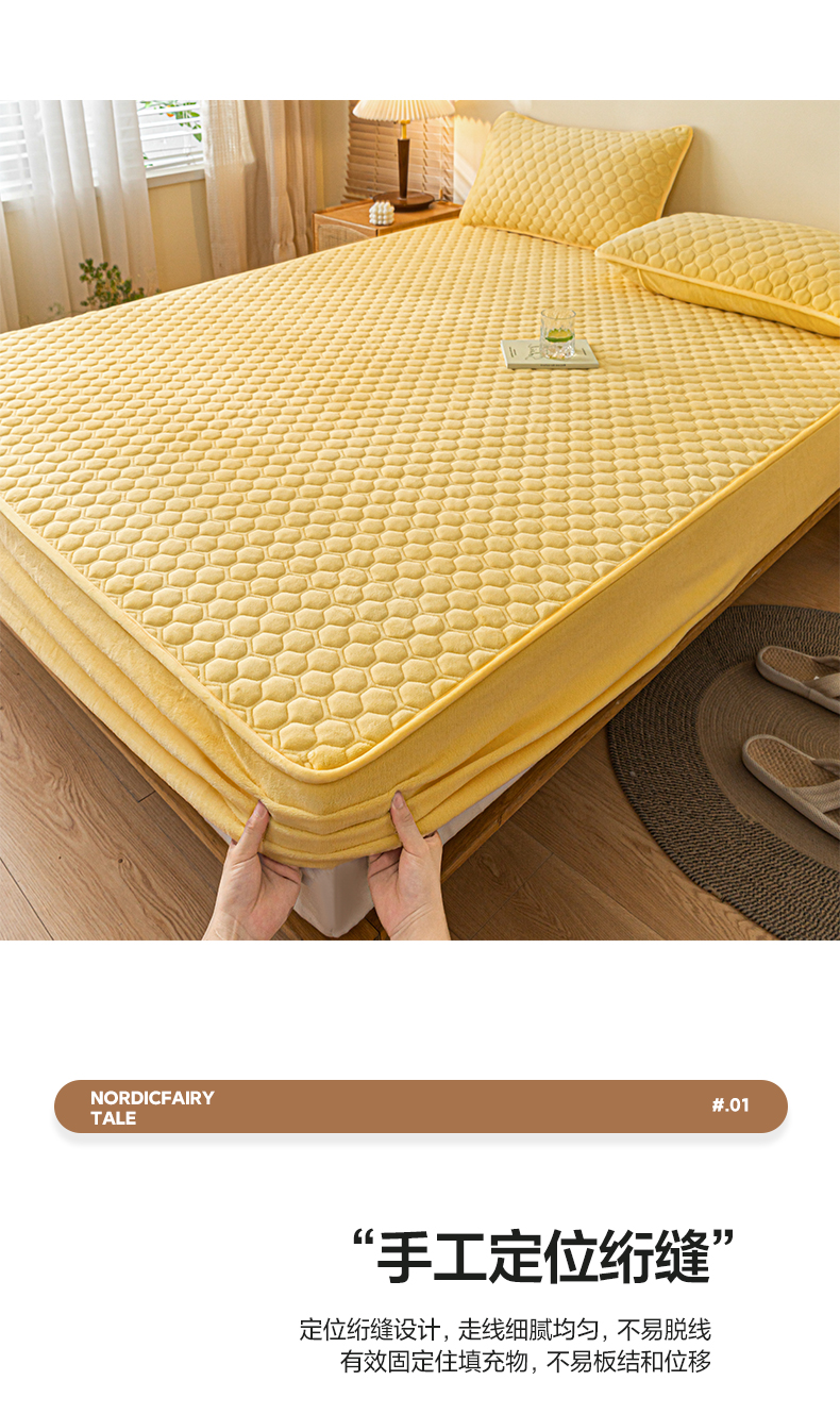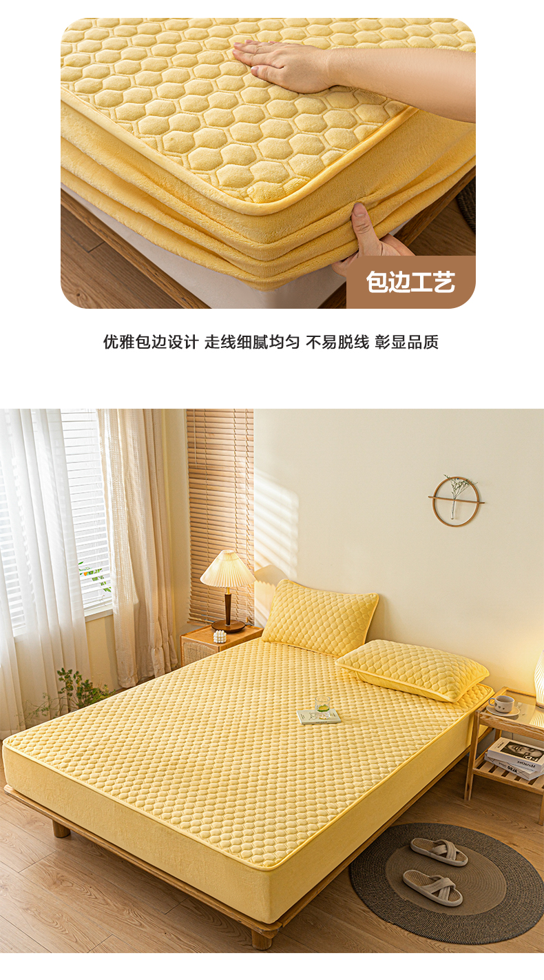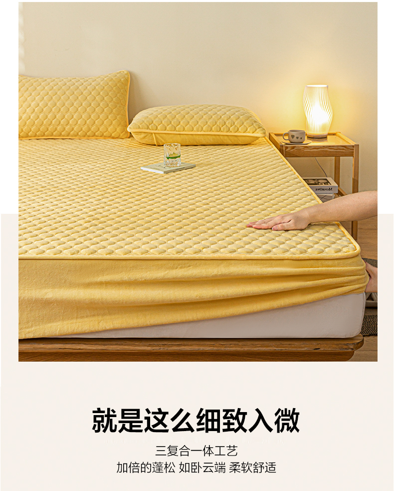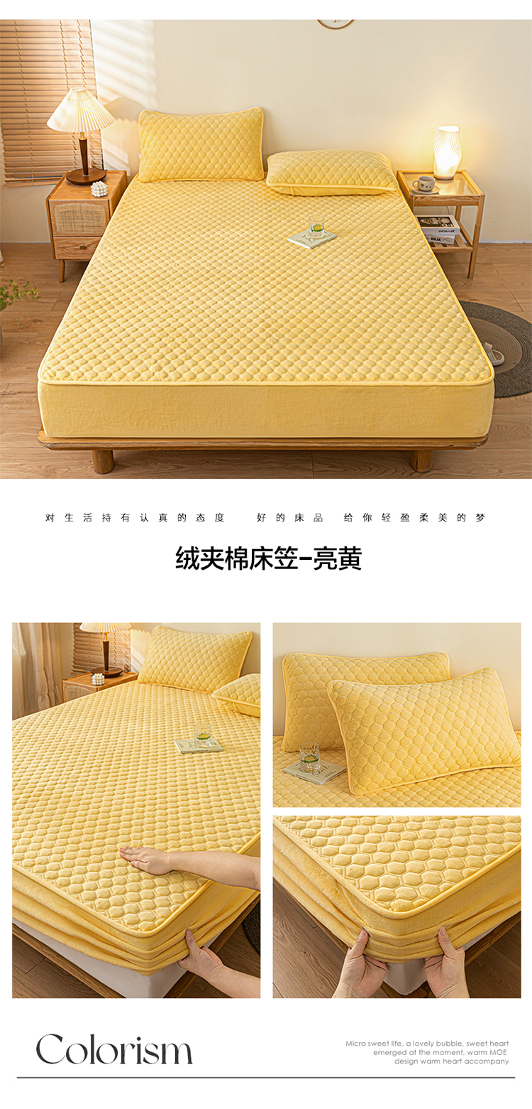 商品名称:2024新款牛奶绒夹棉款床笠系列 绒夹棉床笠-亮黄