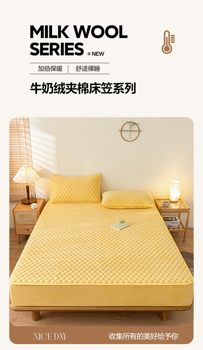 2024新款牛奶绒夹棉款床笠系列 绒夹棉床笠-亮黄