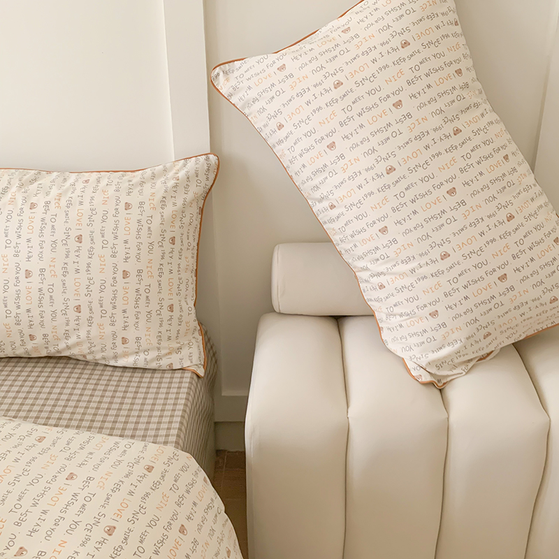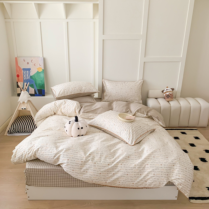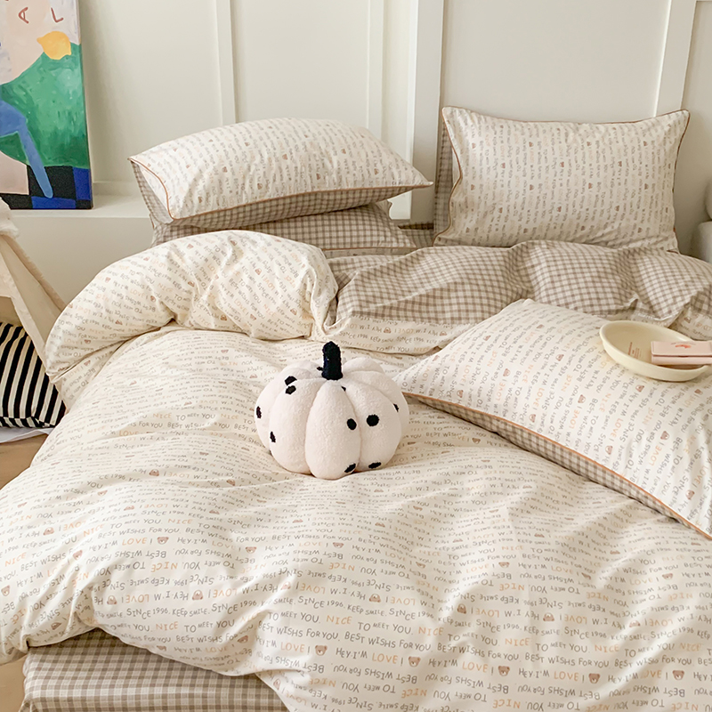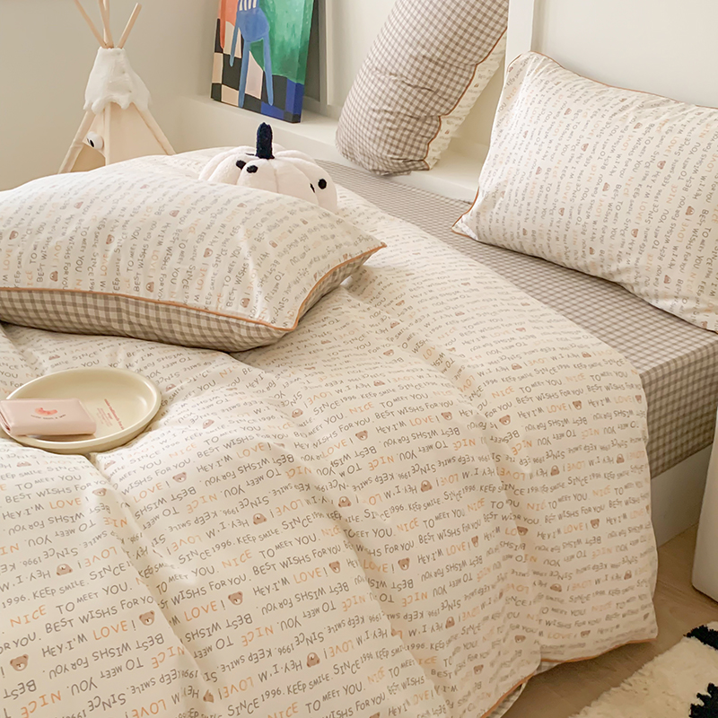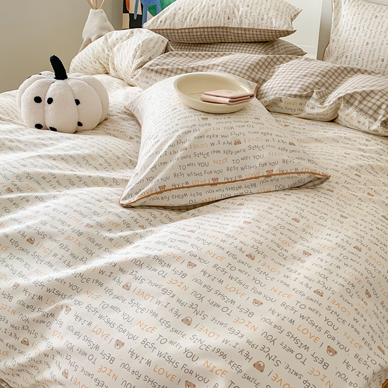 2024秋冬新款全棉印花嵌绳款小清新四件套 英文熊熊