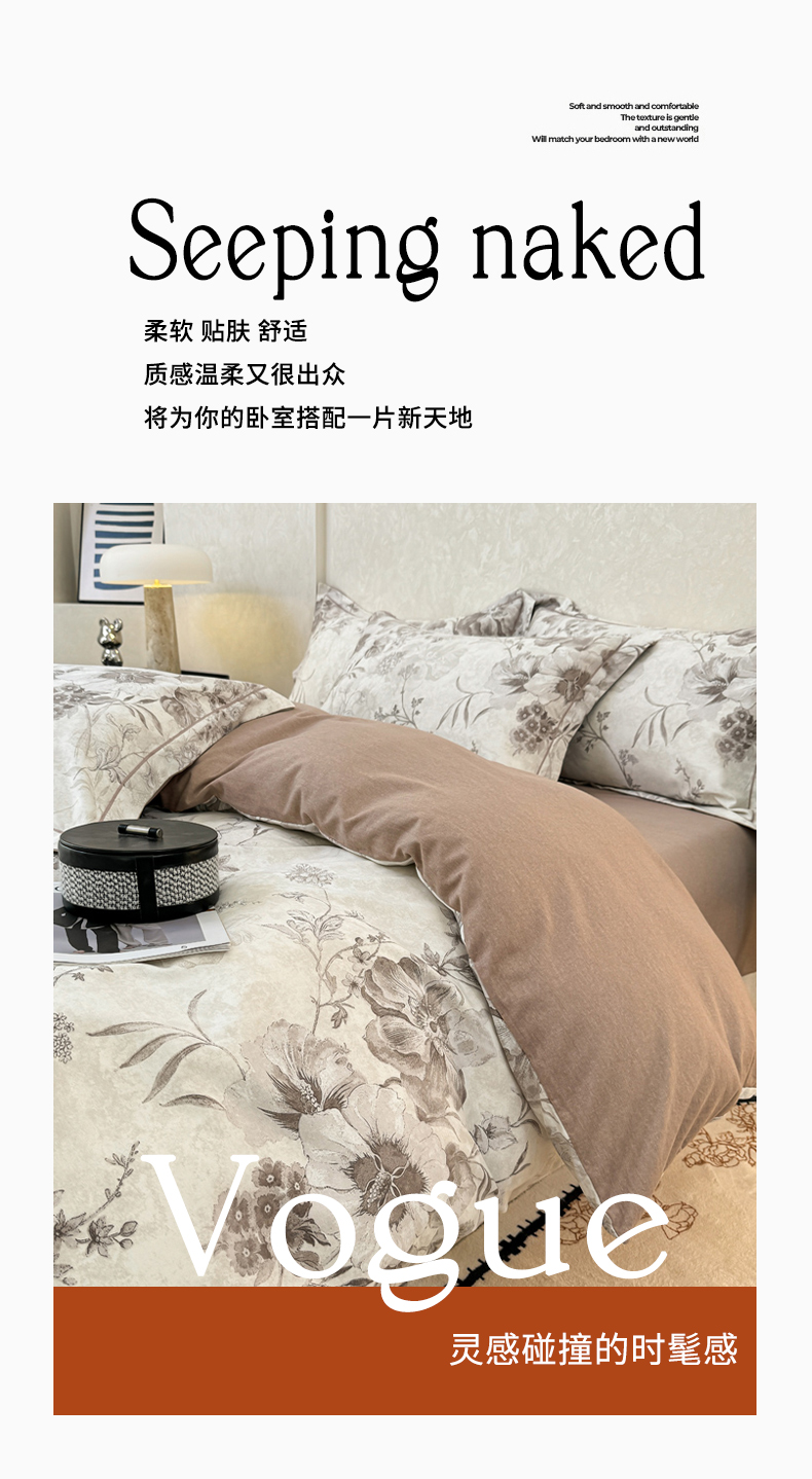 凌鼎 2025新款喷气加厚磨毛四件套系列1 望夏花艺咖,望夏花艺咖