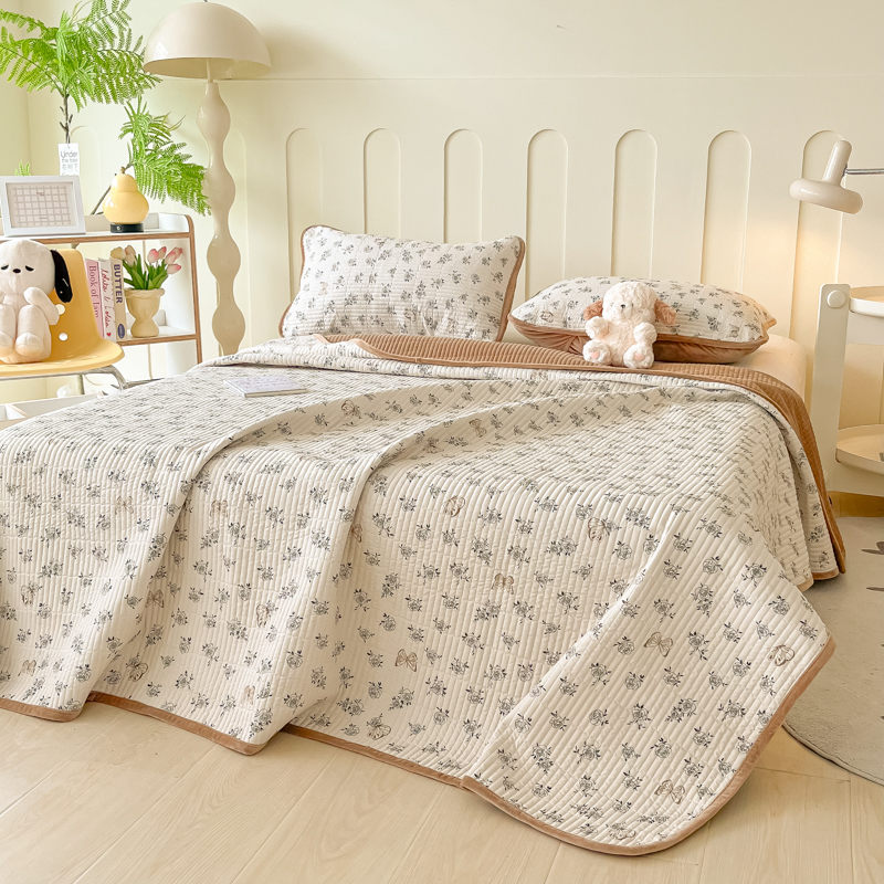 商品名称:玉海棠 玉海棠 2024新款针织棉加绒床盖 蝶恋花