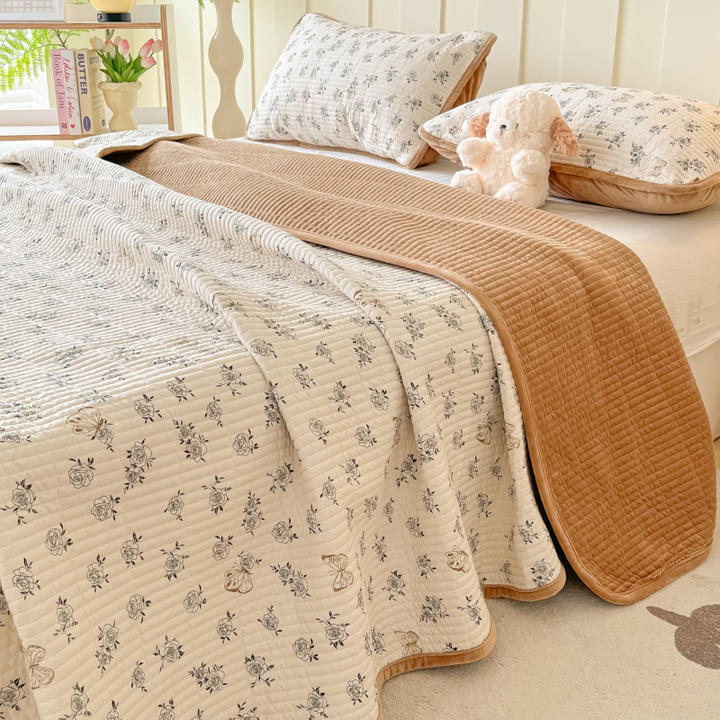 玉海棠 玉海棠 2024新款针织棉加绒床盖 蝶恋花