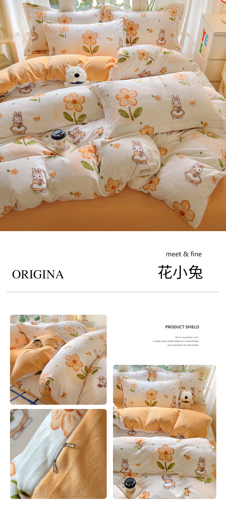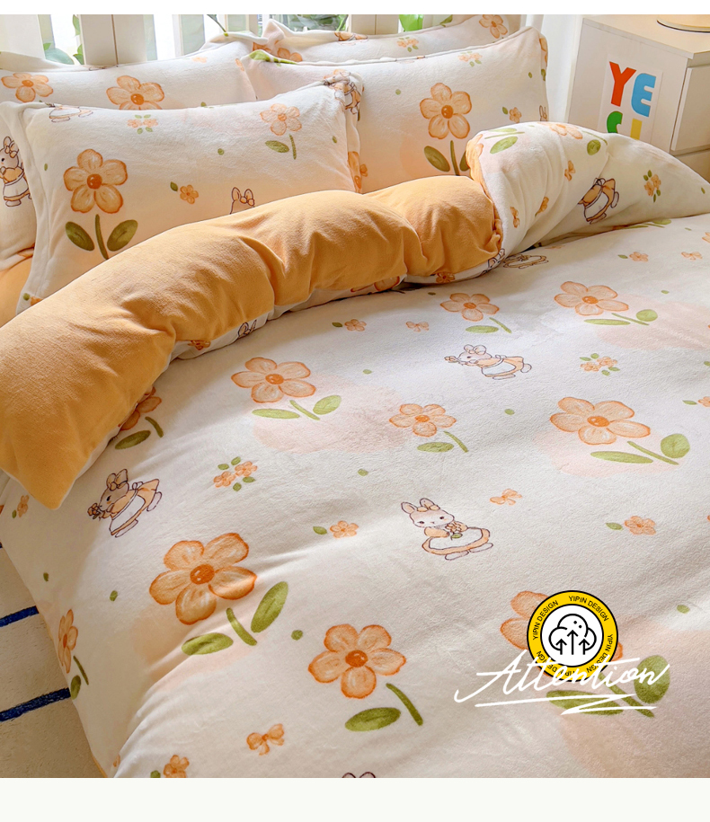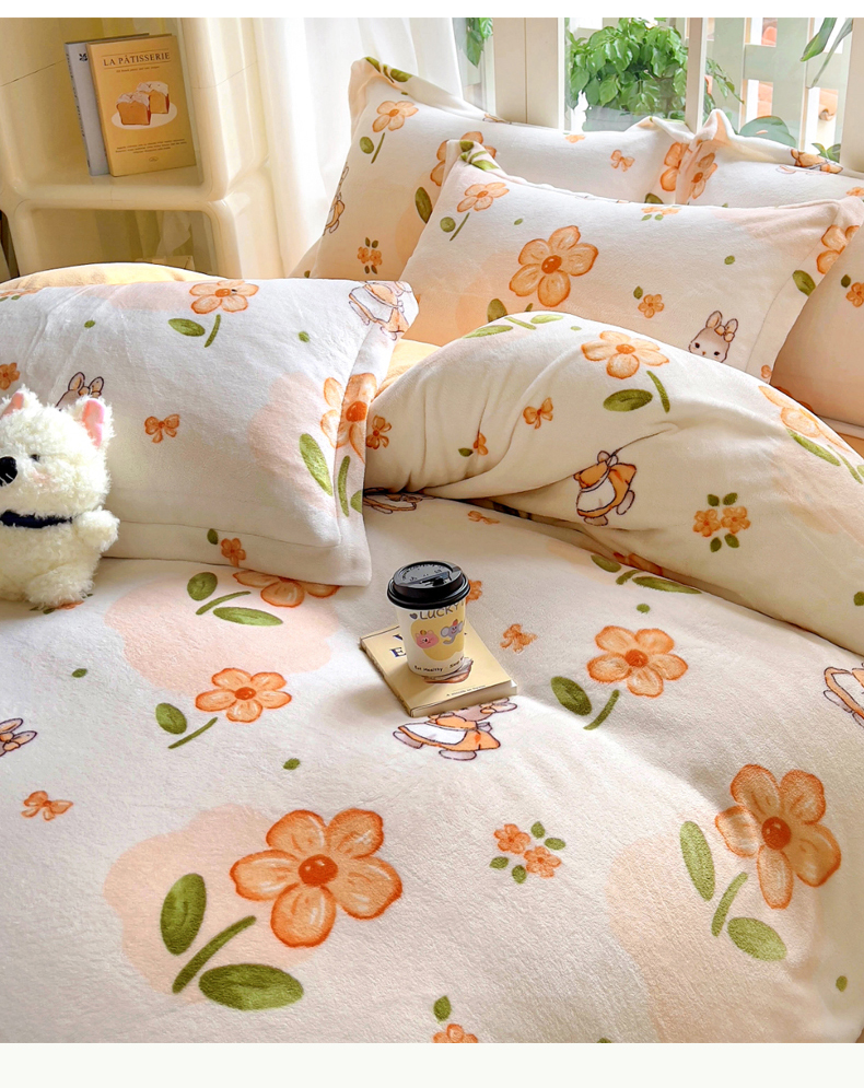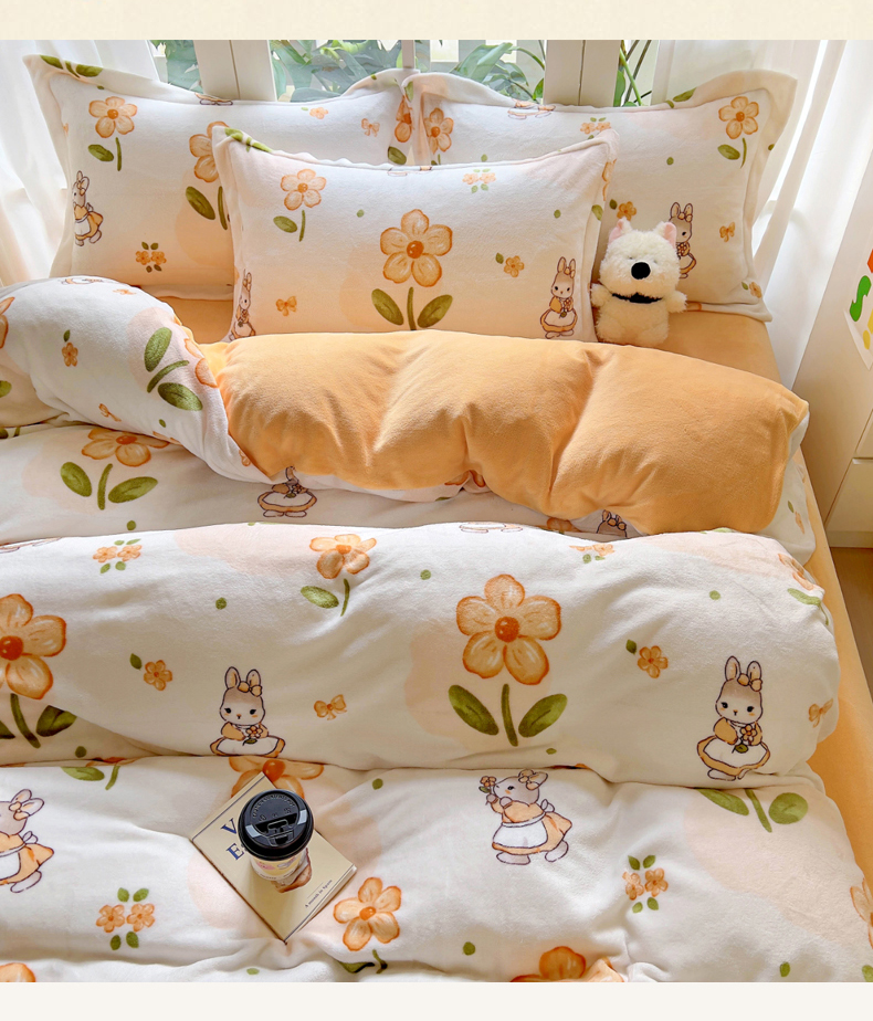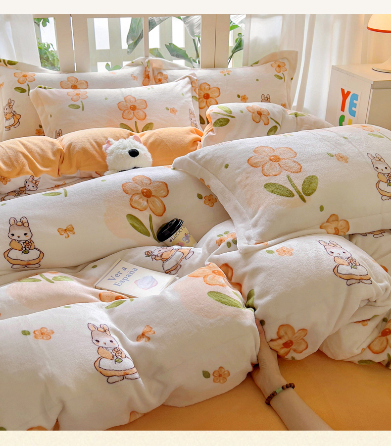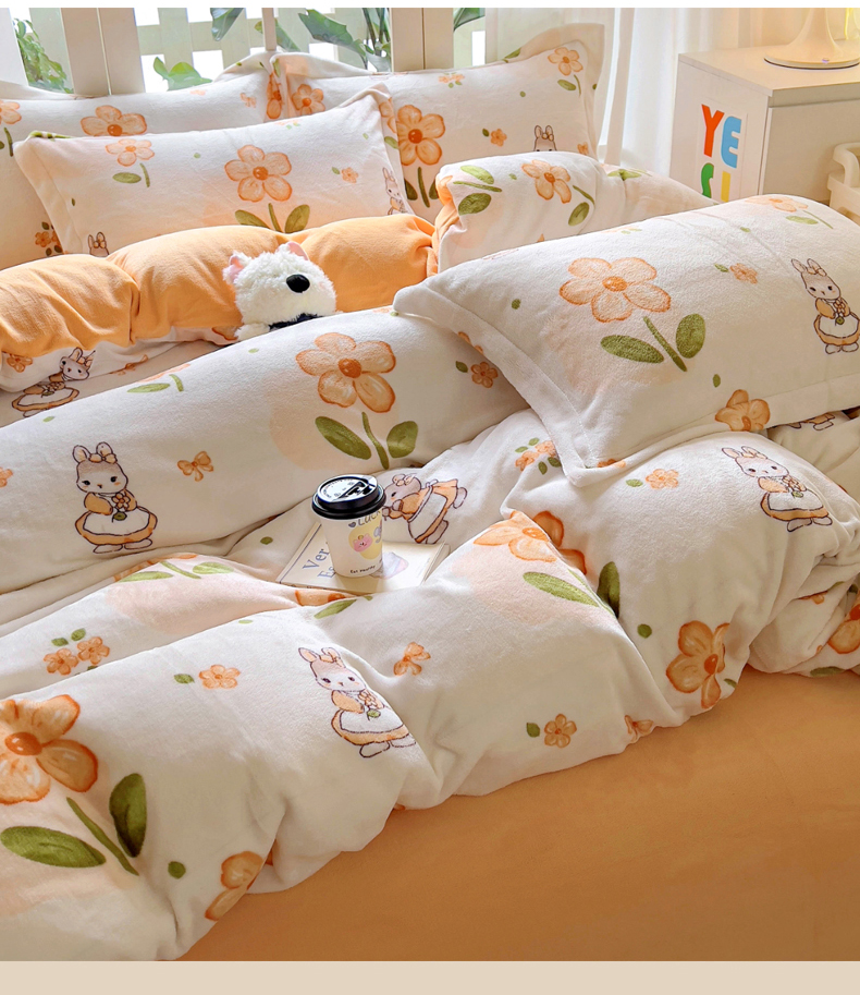 当前位置: 91家纺网 > 商品网购 > 床品套件 > 四件套 > 牛奶绒四件套 > 丝羽坊 2024新款加厚小清新牛奶绒印花四件套单被套床笠四件套-场景二 花小兔