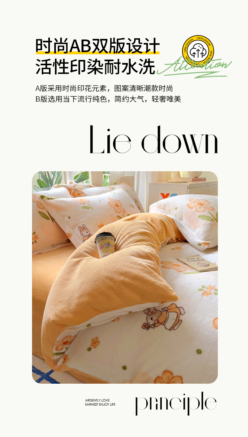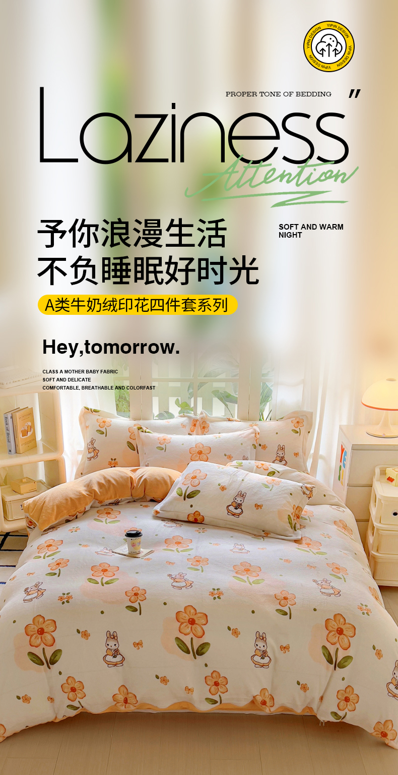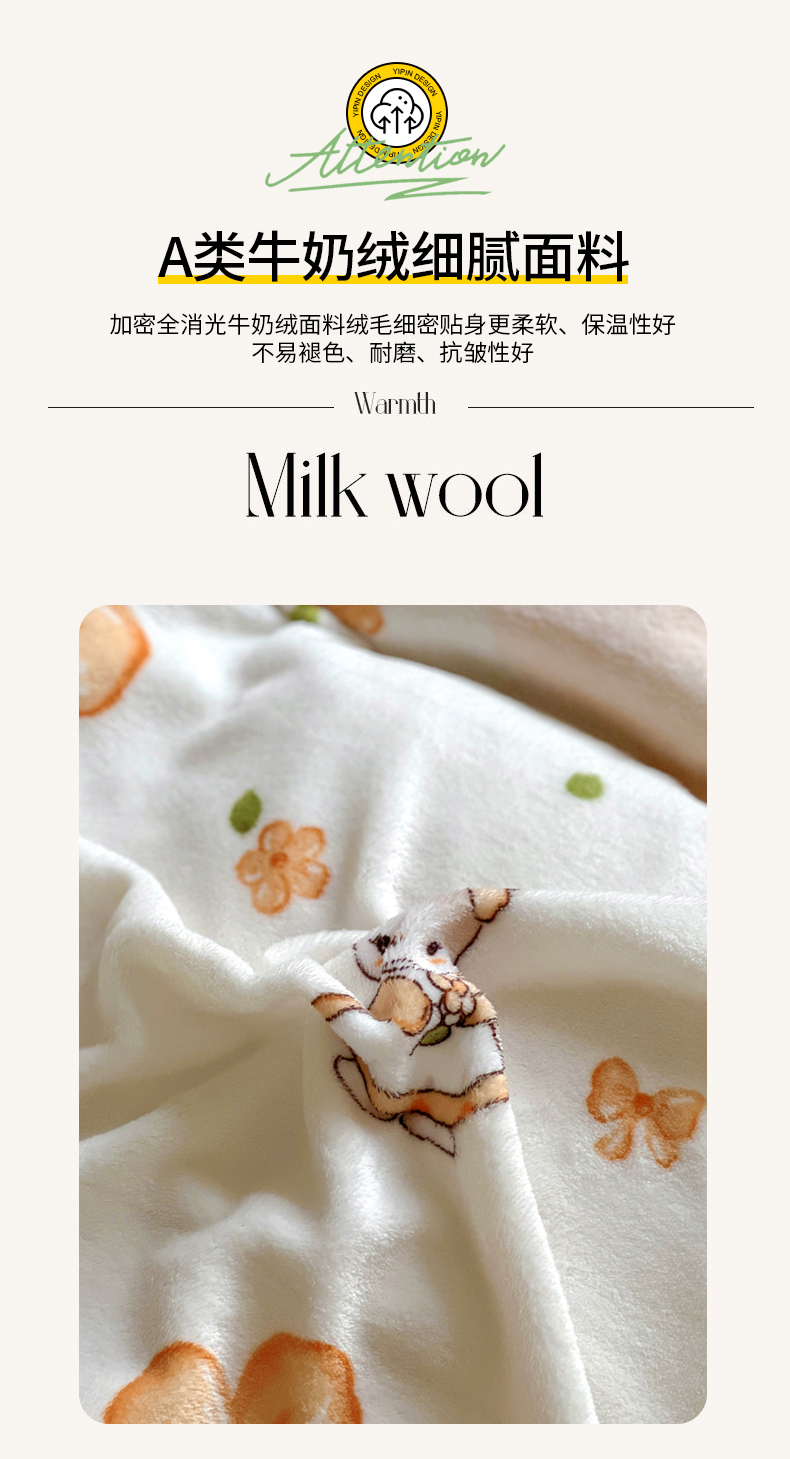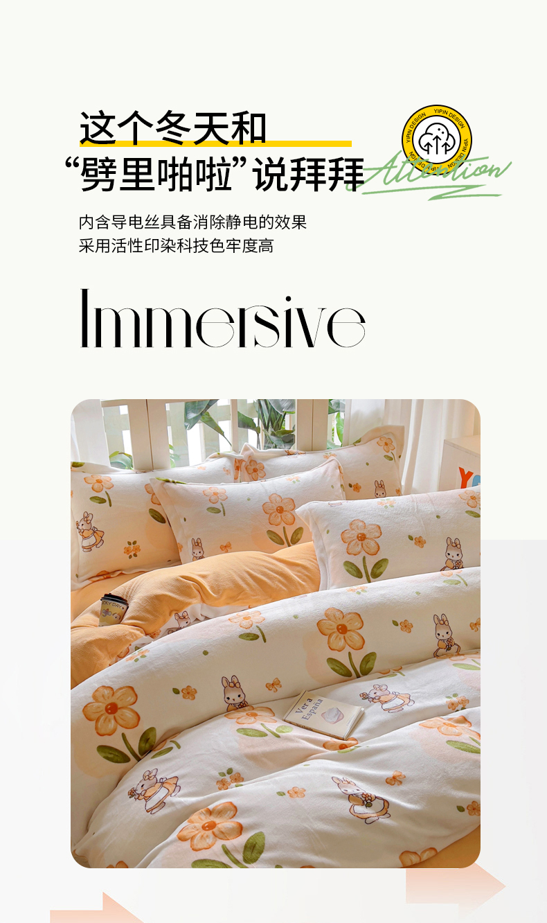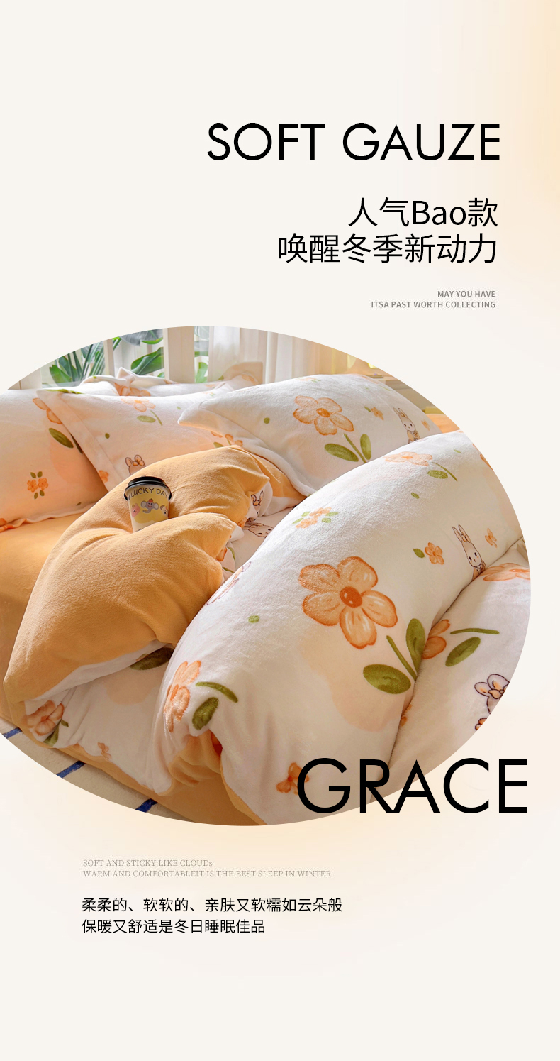 当前位置: 91家纺网 > 商品网购 > 床品套件 > 四件套 > 牛奶绒四件套 > 丝羽坊 2024新款加厚小清新牛奶绒印花四件套单被套床笠四件套-场景二 花小兔