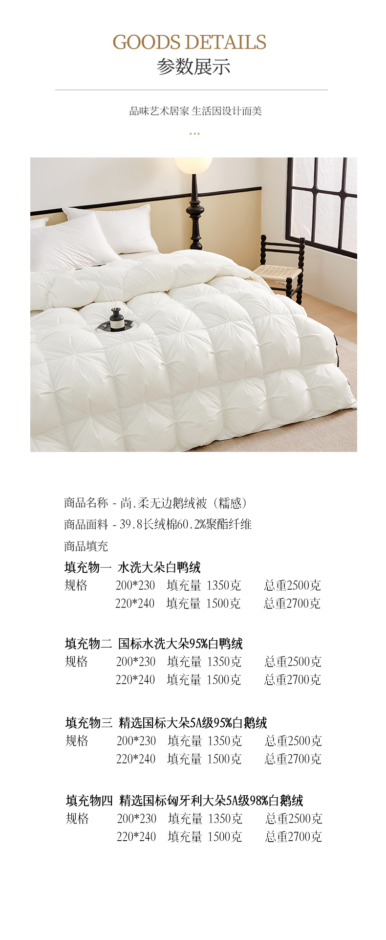 220*240cm填充量1500克 精选国标大朵5A级95%白鹅绒 | ¥1680.00 |