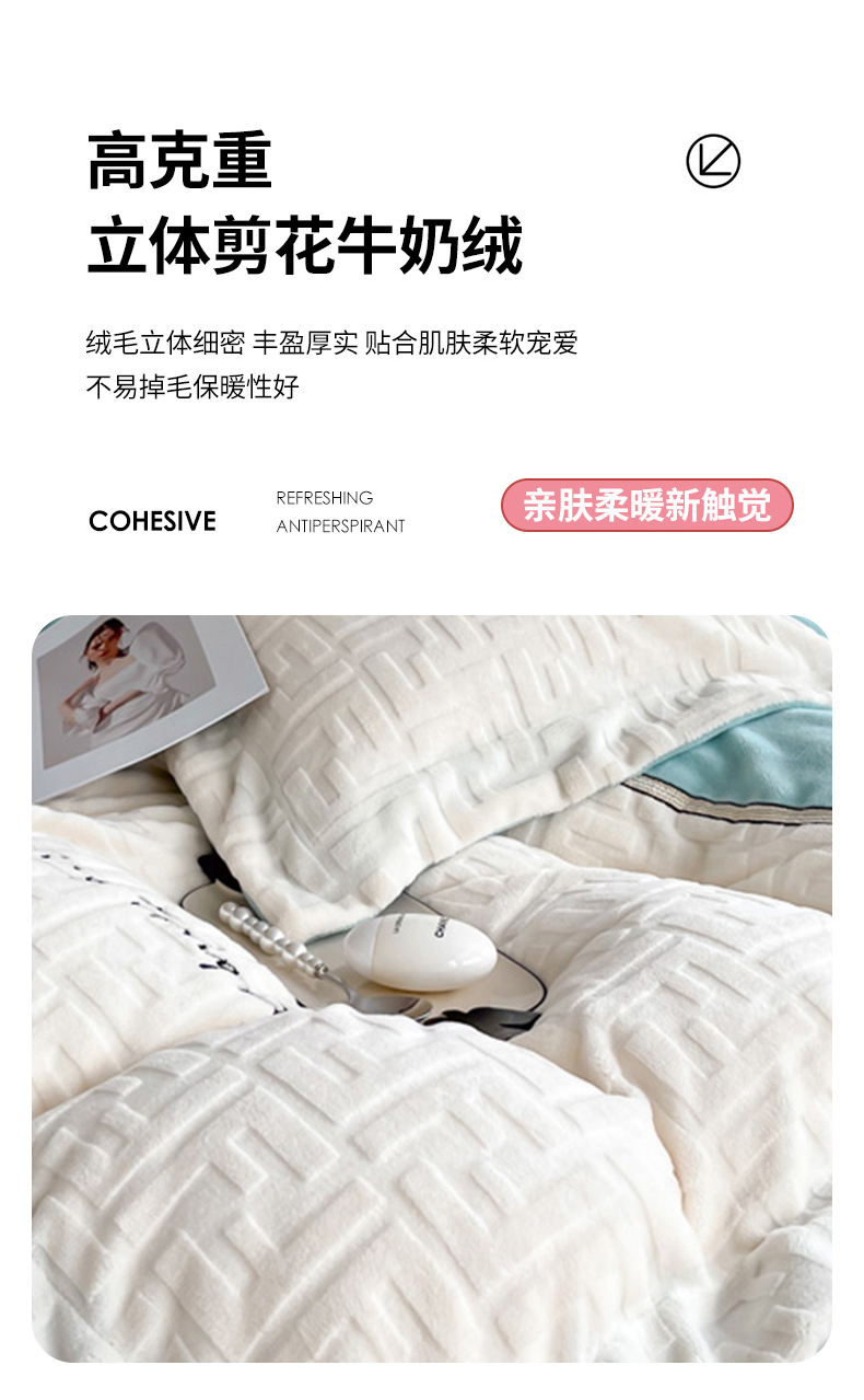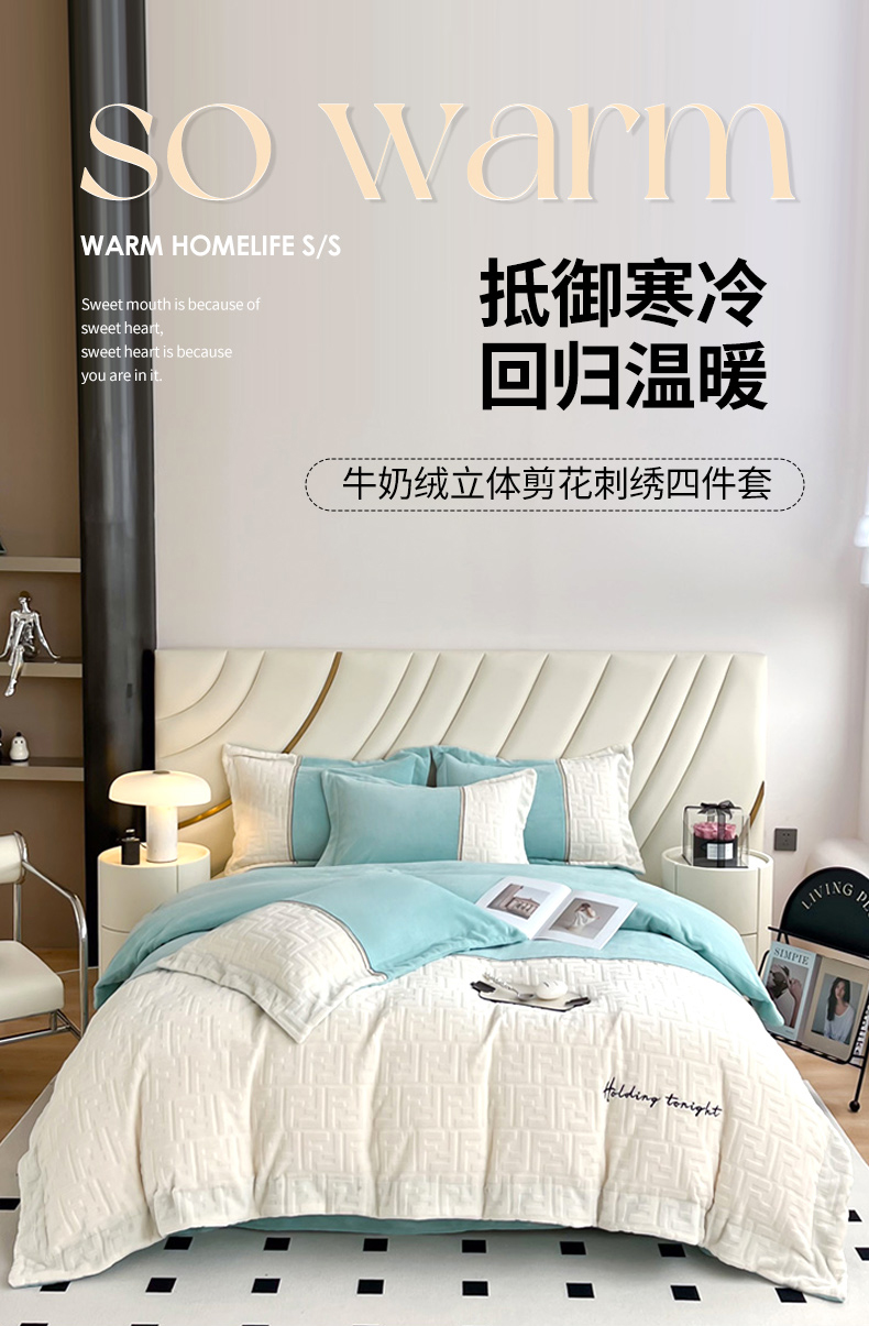 2024秋冬新款时尚宽边立体剪花刺绣加厚牛奶绒四件套-赫莲娜系列 赫莲娜水兰