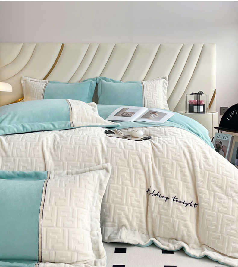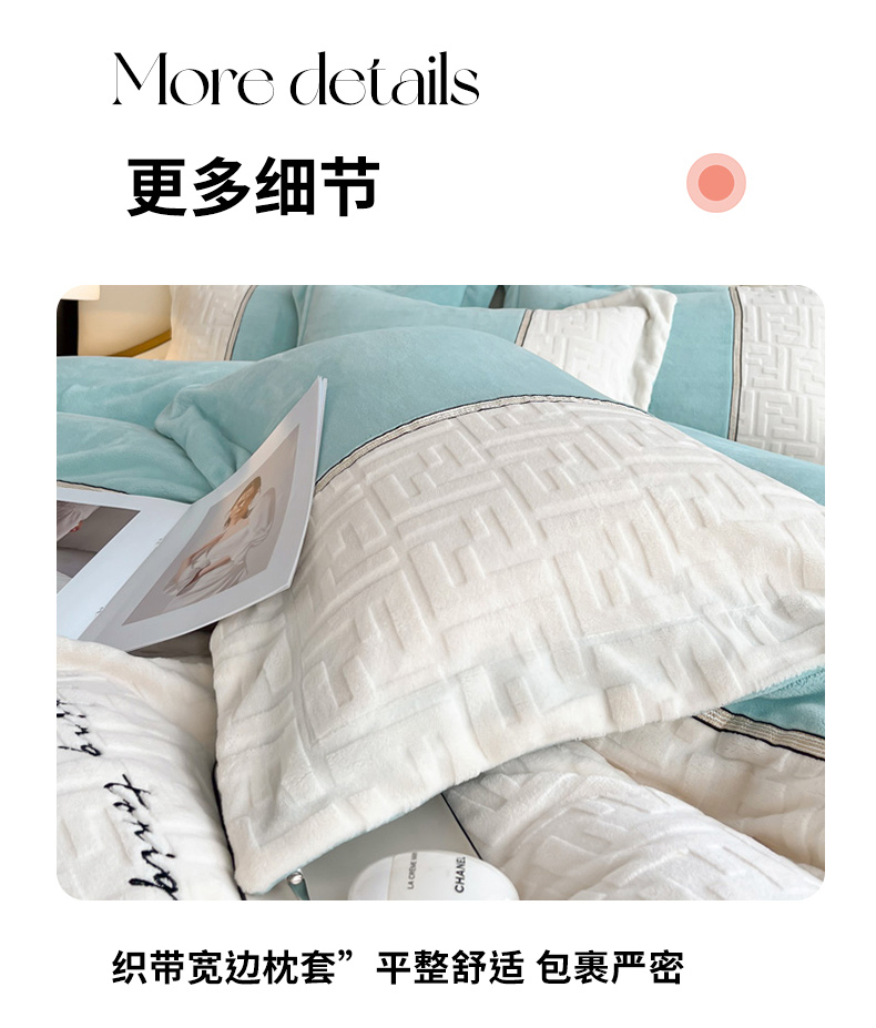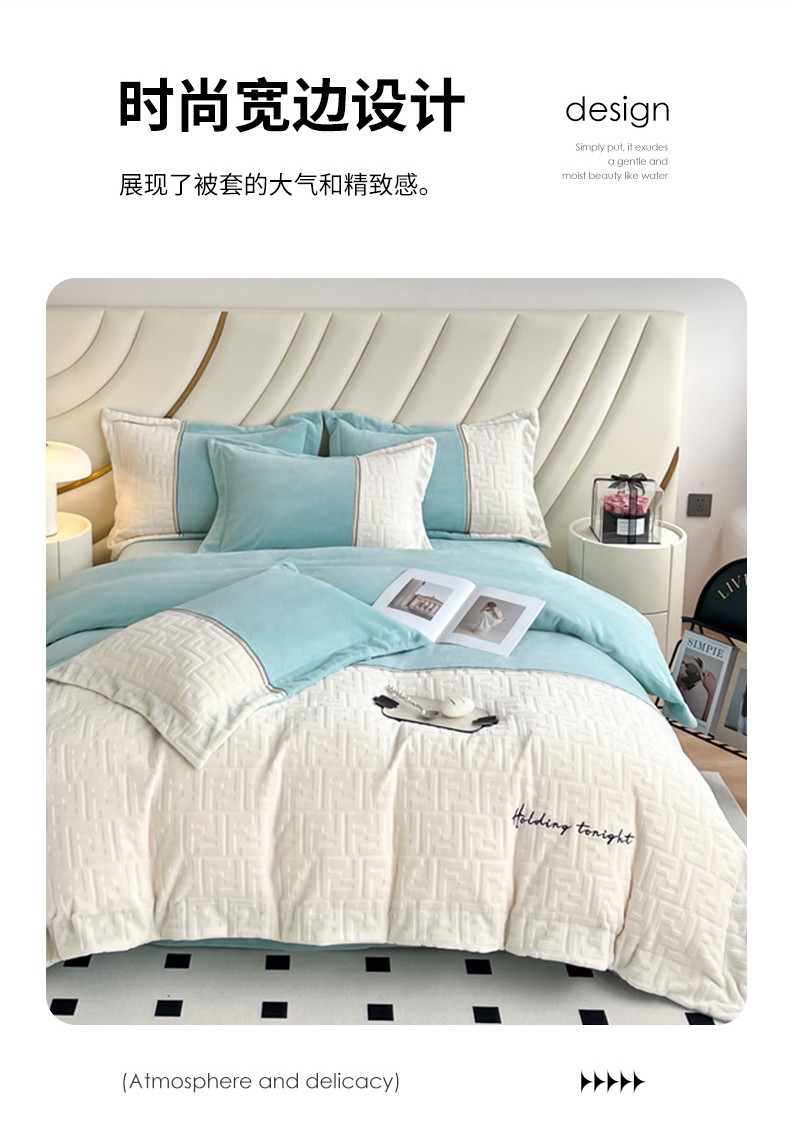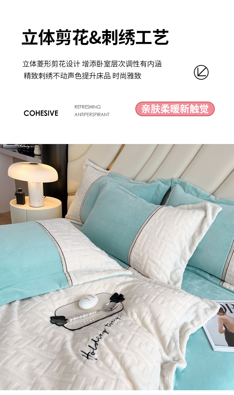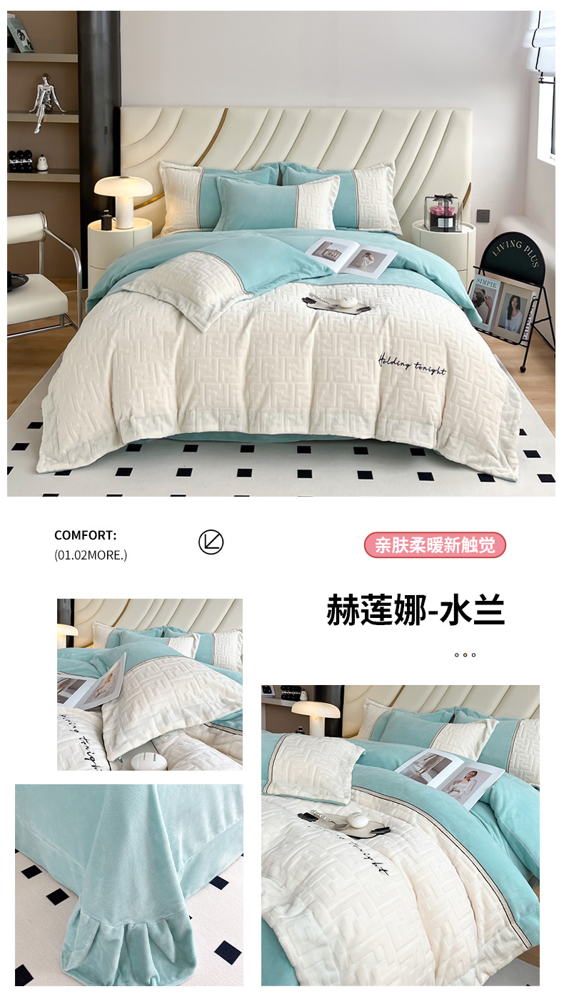 商品名称:2024秋冬新款时尚宽边立体剪花刺绣加厚牛奶绒四件套-赫莲娜系列 赫莲娜水兰