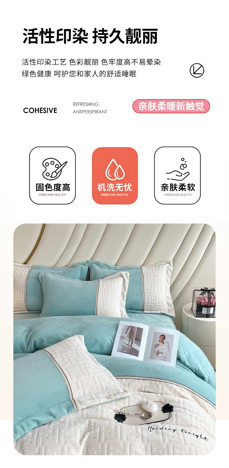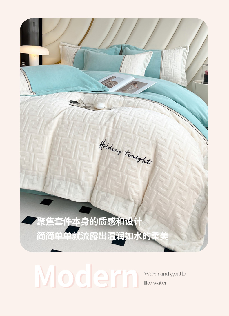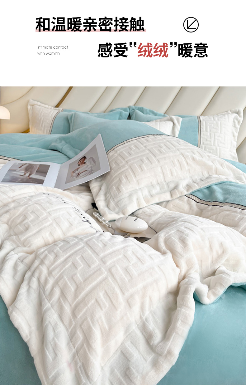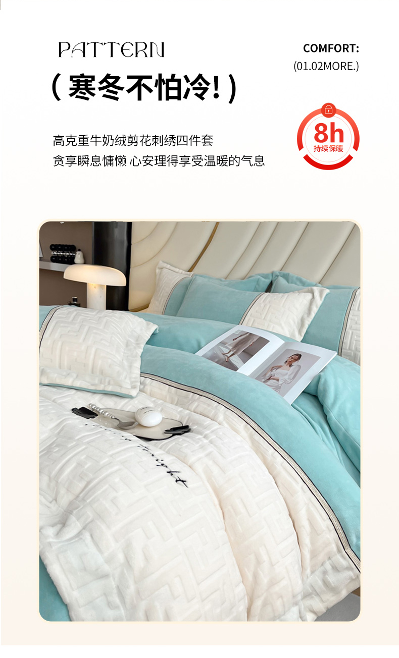 商品名称:2024秋冬新款时尚宽边立体剪花刺绣加厚牛奶绒四件套-赫莲娜系列 赫莲娜水兰