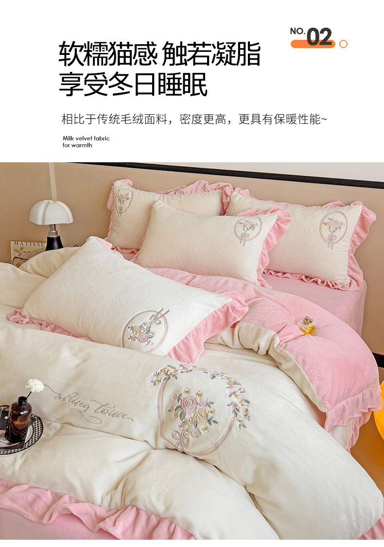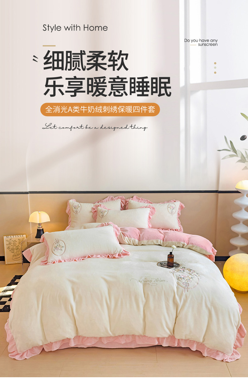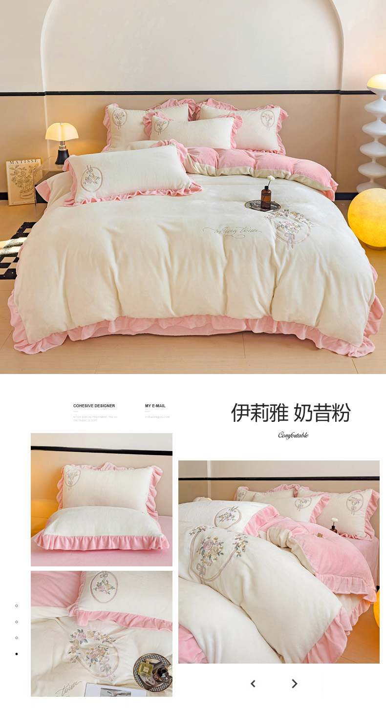 当前位置: 91家纺网 > 商品网购 > 床品套件 > 四件套 > 牛奶绒四件套 > 星尚家纺 2024新款A类全消光牛奶绒四件套-伊莉雅 奶昔粉