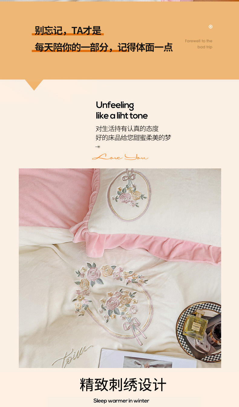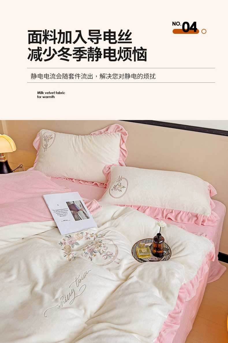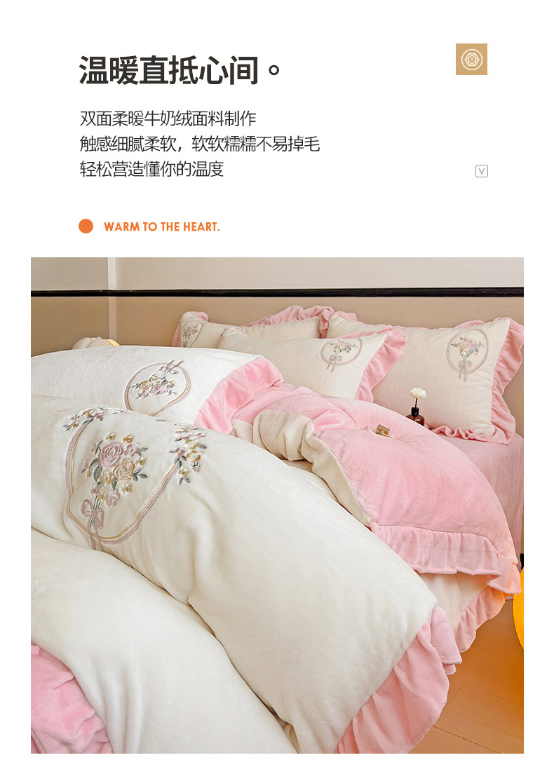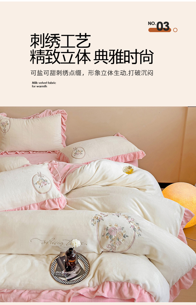 当前位置: 91家纺网 > 商品网购 > 床品套件 > 四件套 > 牛奶绒四件套 > 星尚家纺 2024新款A类全消光牛奶绒四件套-伊莉雅 奶昔粉