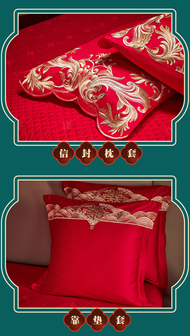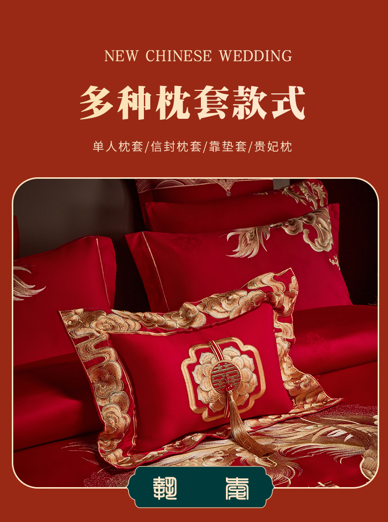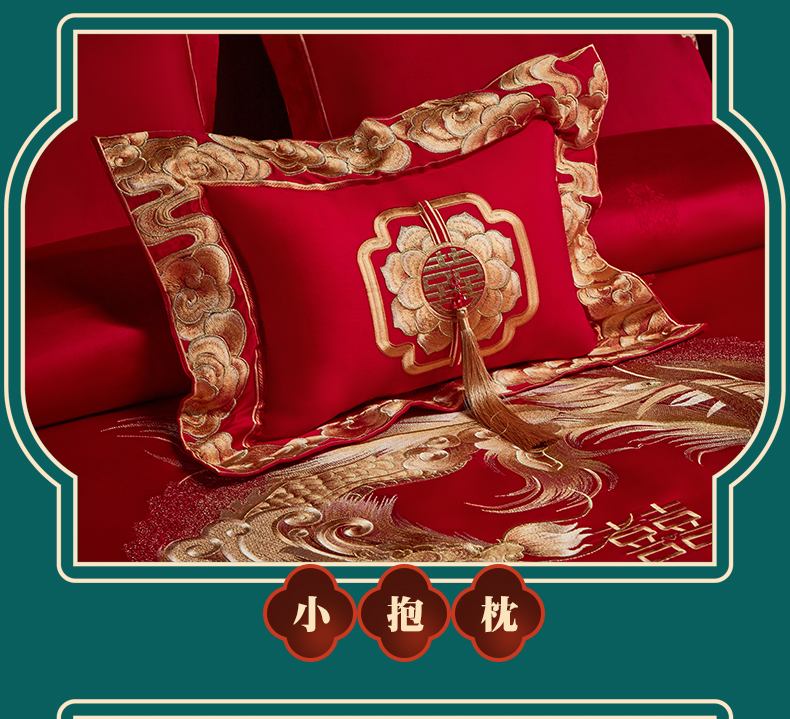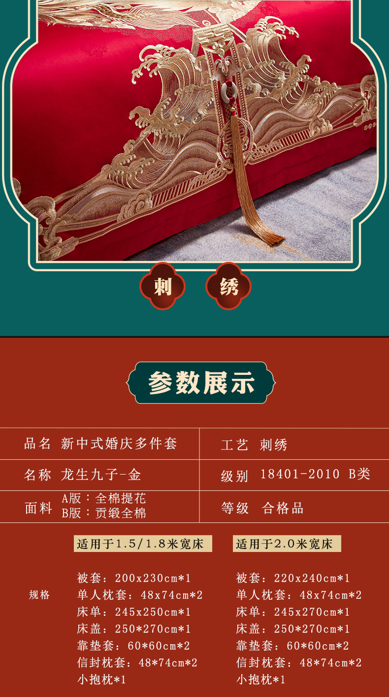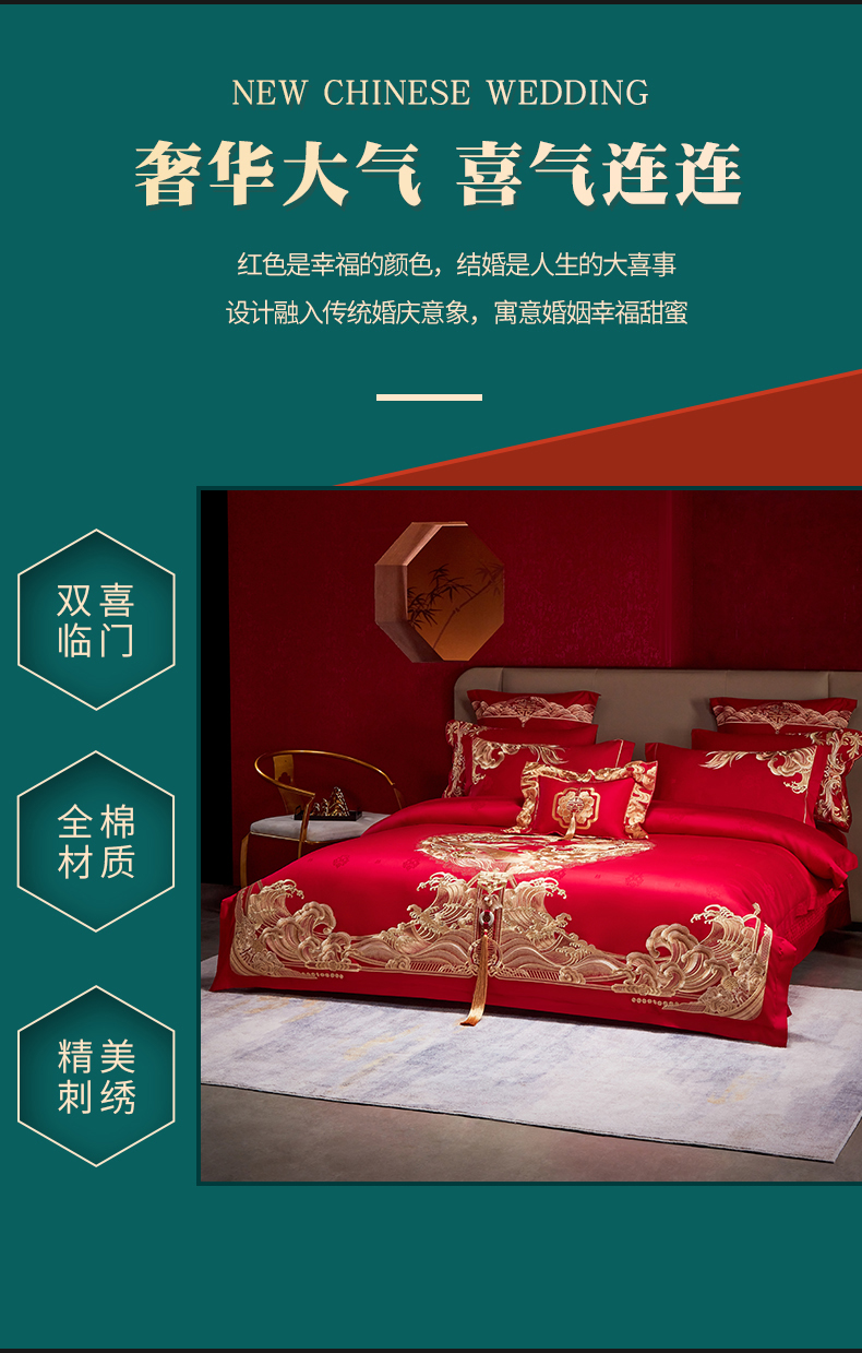 当前位置: 91家纺网 > 商品网购 > 床品套件 > 四件套 > 婚庆四件套 > 宏羽纺家纺 2024新款高支高密纯棉提花婚庆套件系列(控价680)龙生九子-金