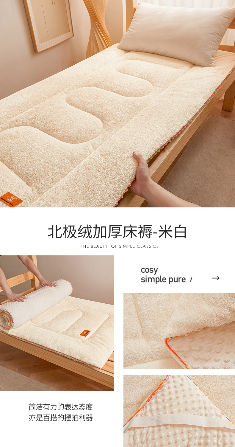 当前位置: 91家纺网 > 商品网购 > 床垫/床褥 > 普通床垫 > 2024新款加厚保暖北极绒加厚床褥床垫(背面豆豆绒)-学生床 北极绒床褥-米白