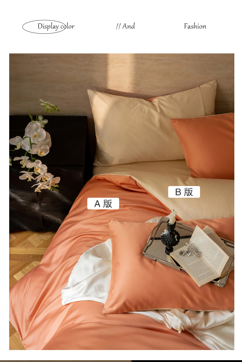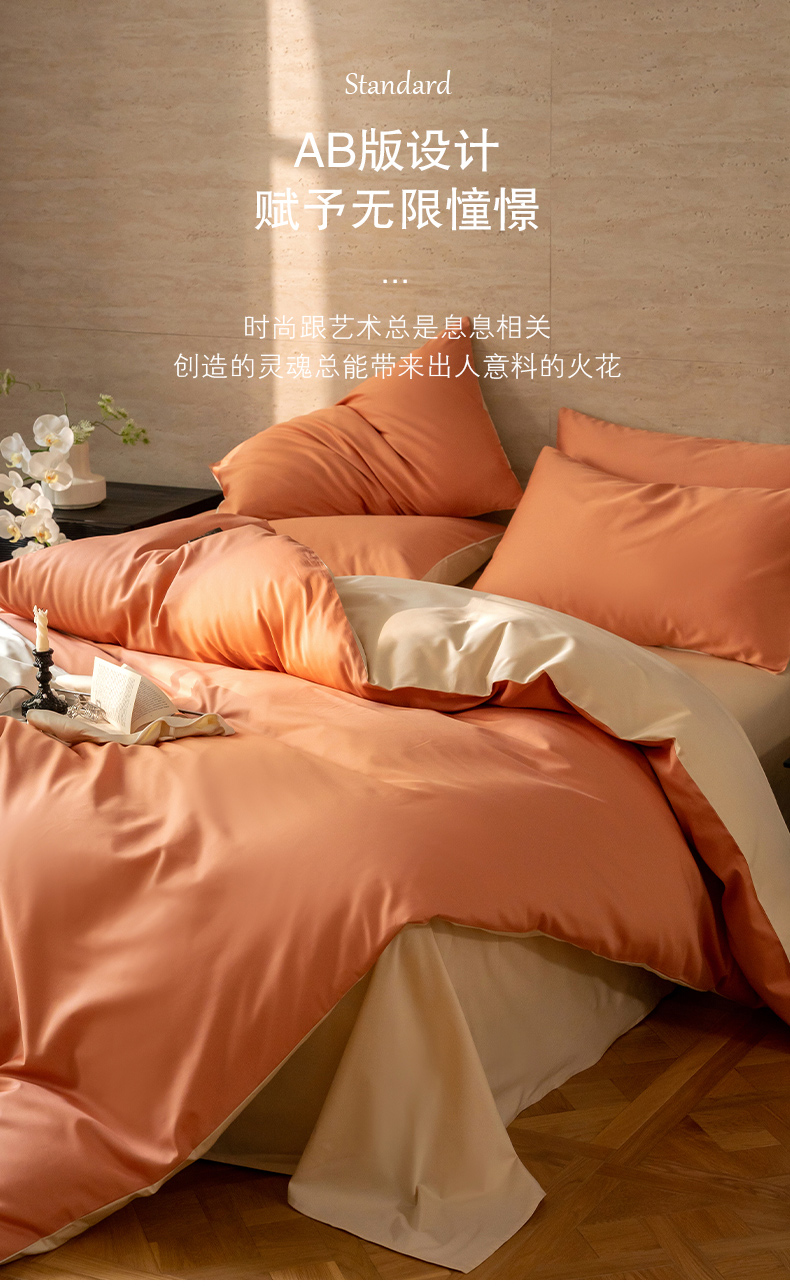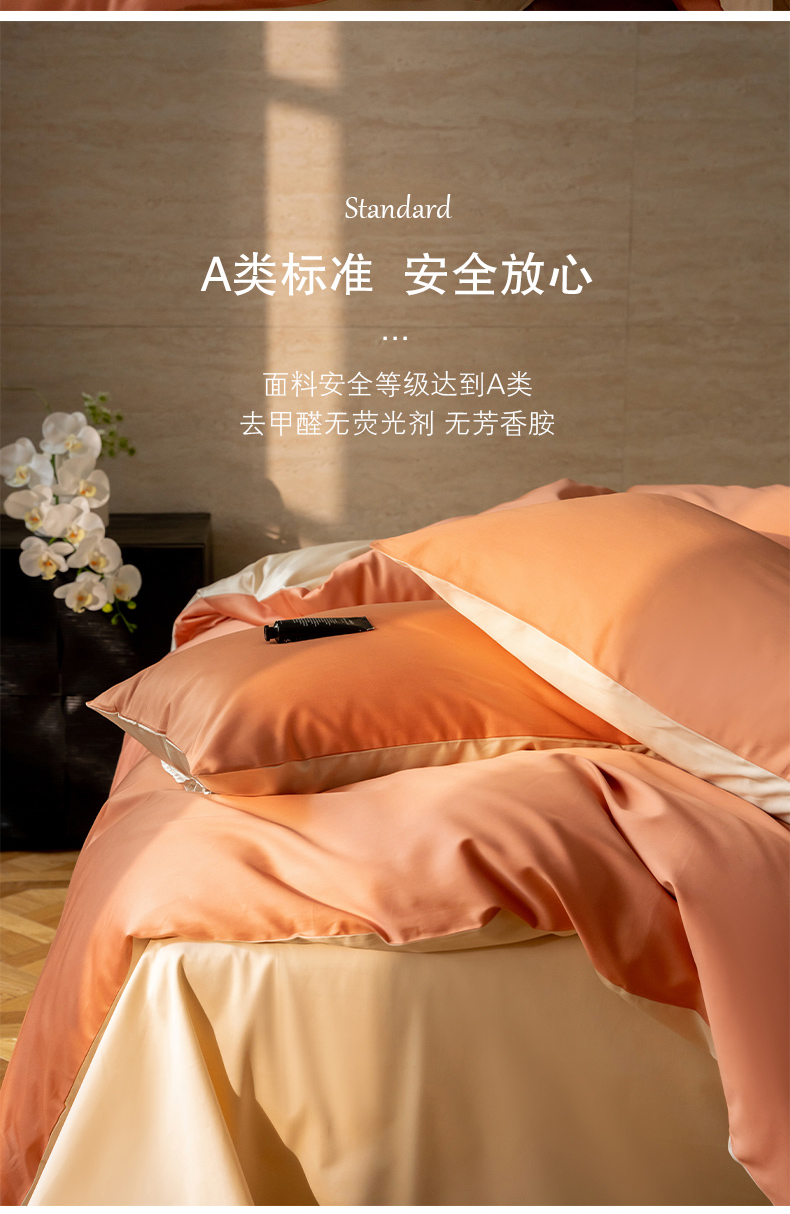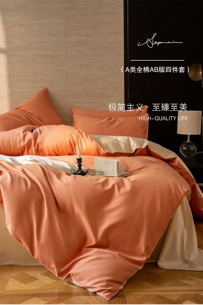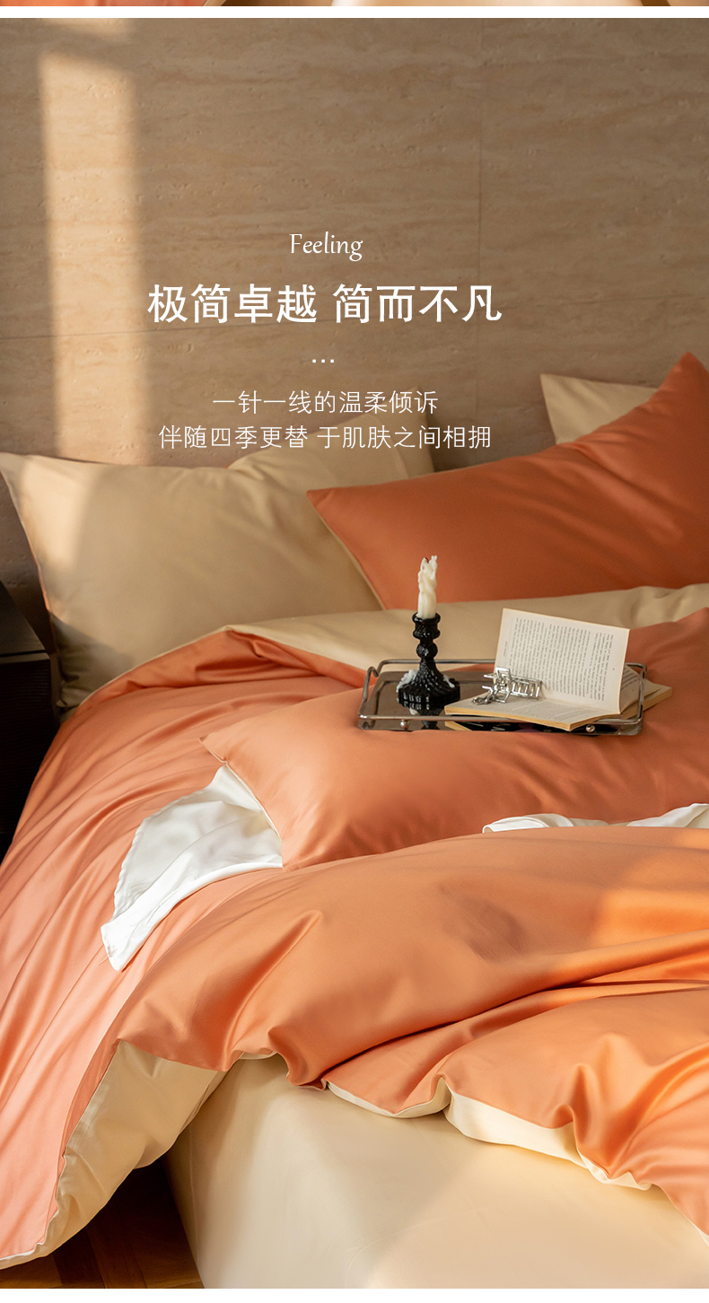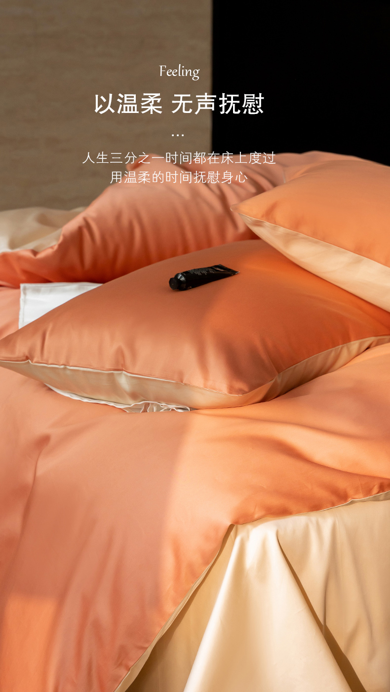 当前位置: 91家纺网 > 商品网购 > 床品套件 > 四件套 > 全棉普通四件套 > 云栖家居 2024A类全棉纯色拼色四件套 暖桔-奶霜