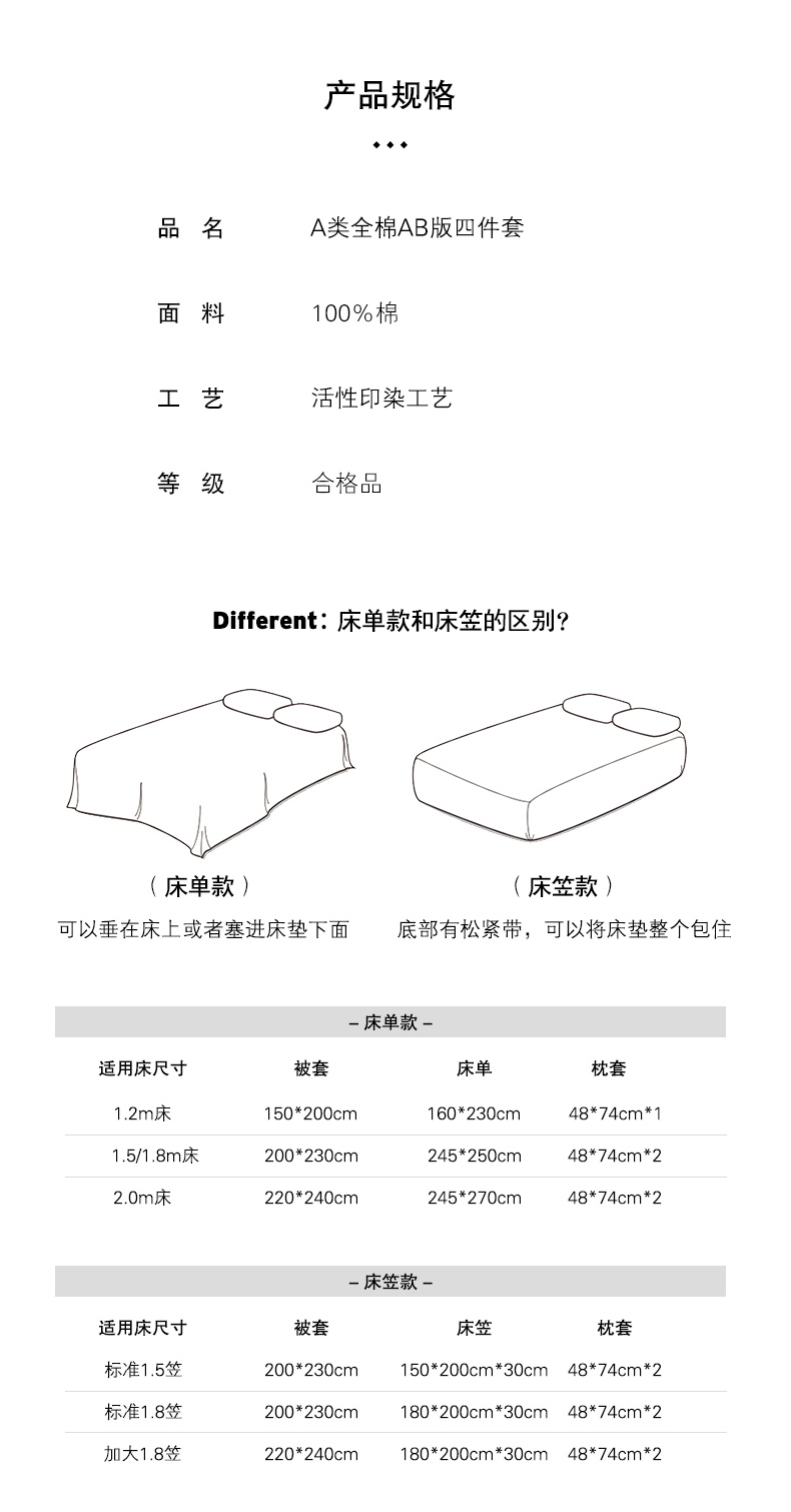 1.8m被套加大床笠款四件套 | ¥175.00 |