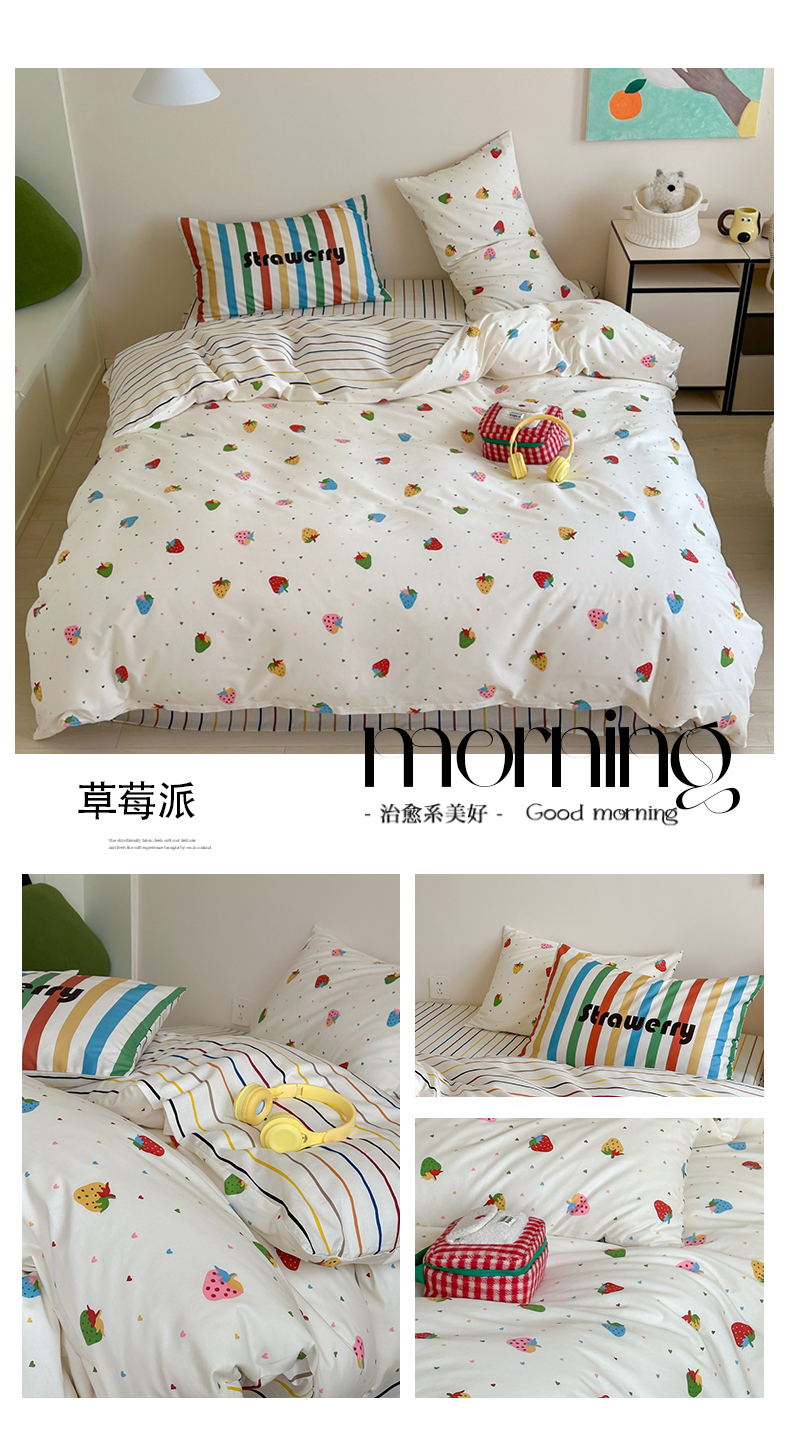 2024新款40支13372全棉数码大版趣味系列四件套 草莓派