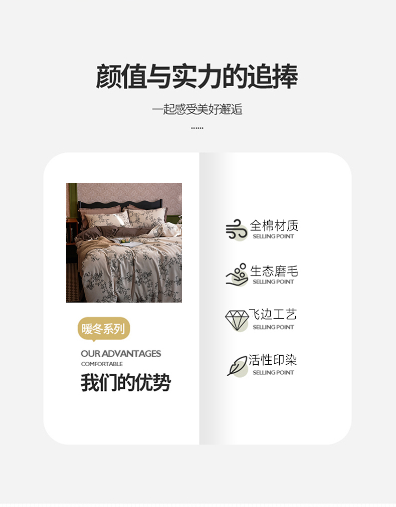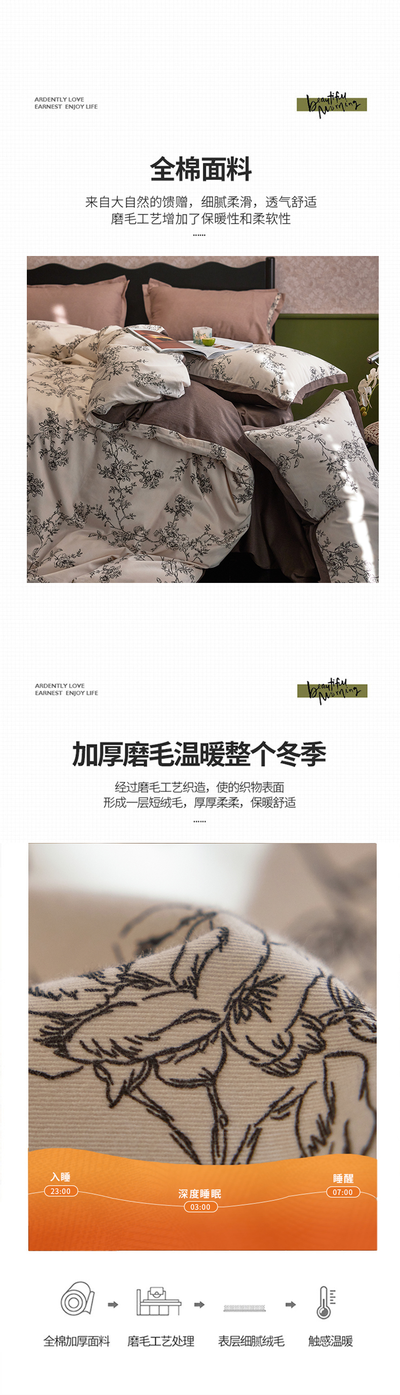 商品名称:2024新款全棉磨毛印花工艺款四件套 寻花集