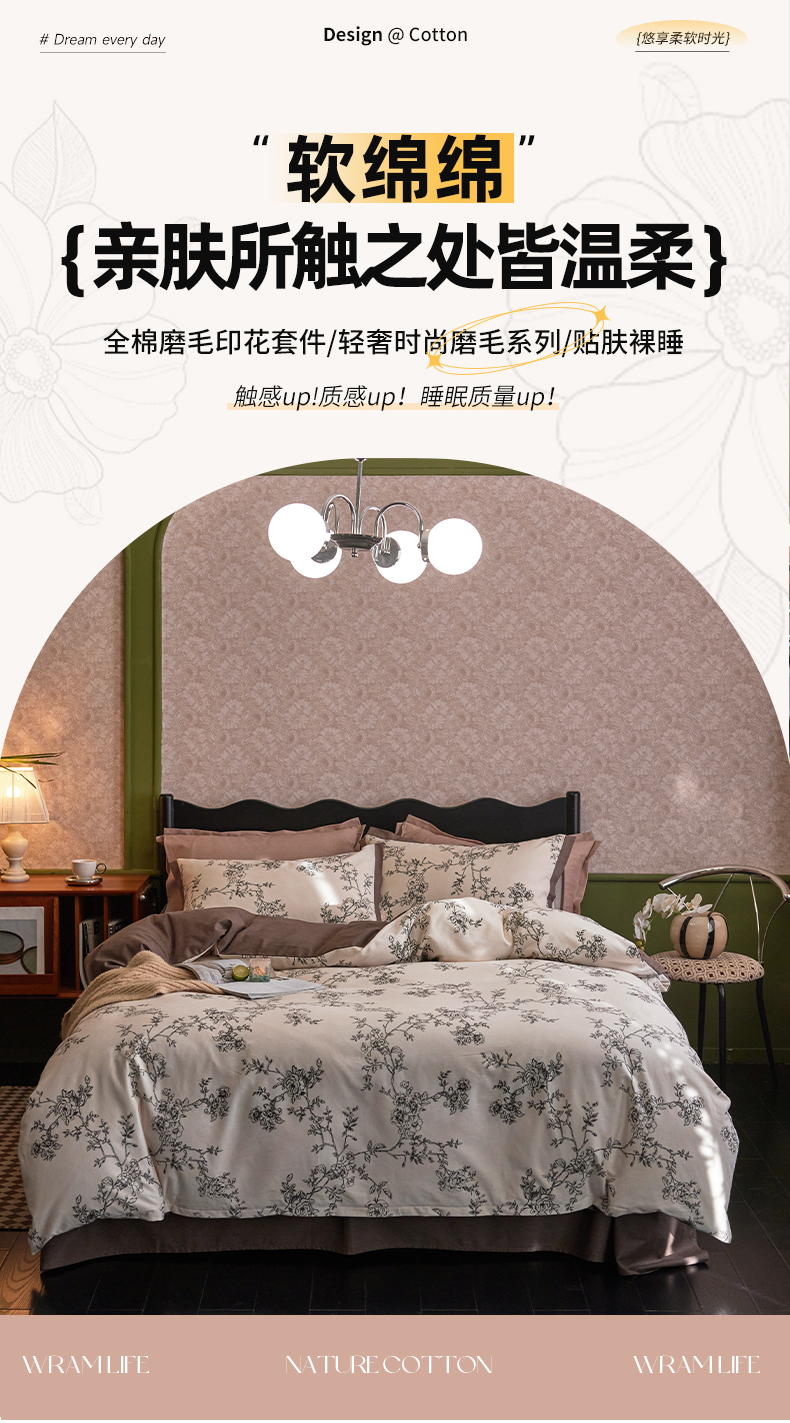 2024新款全棉磨毛印花工艺款四件套 寻花集