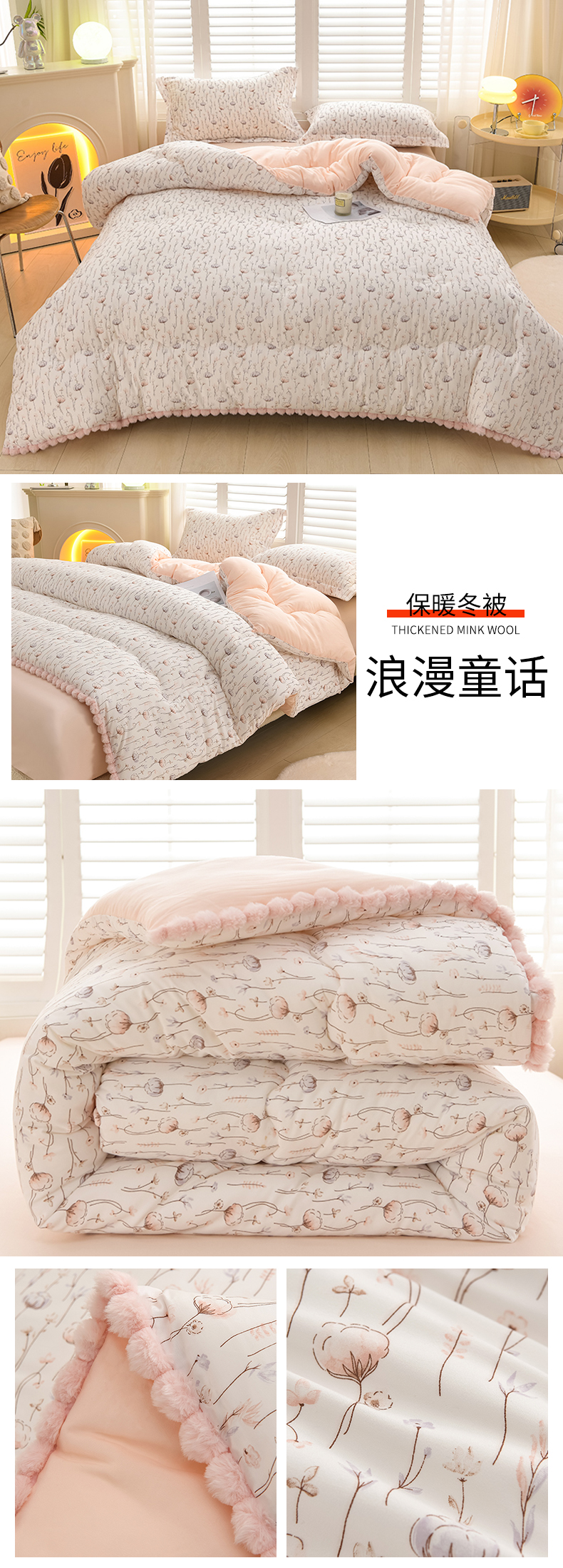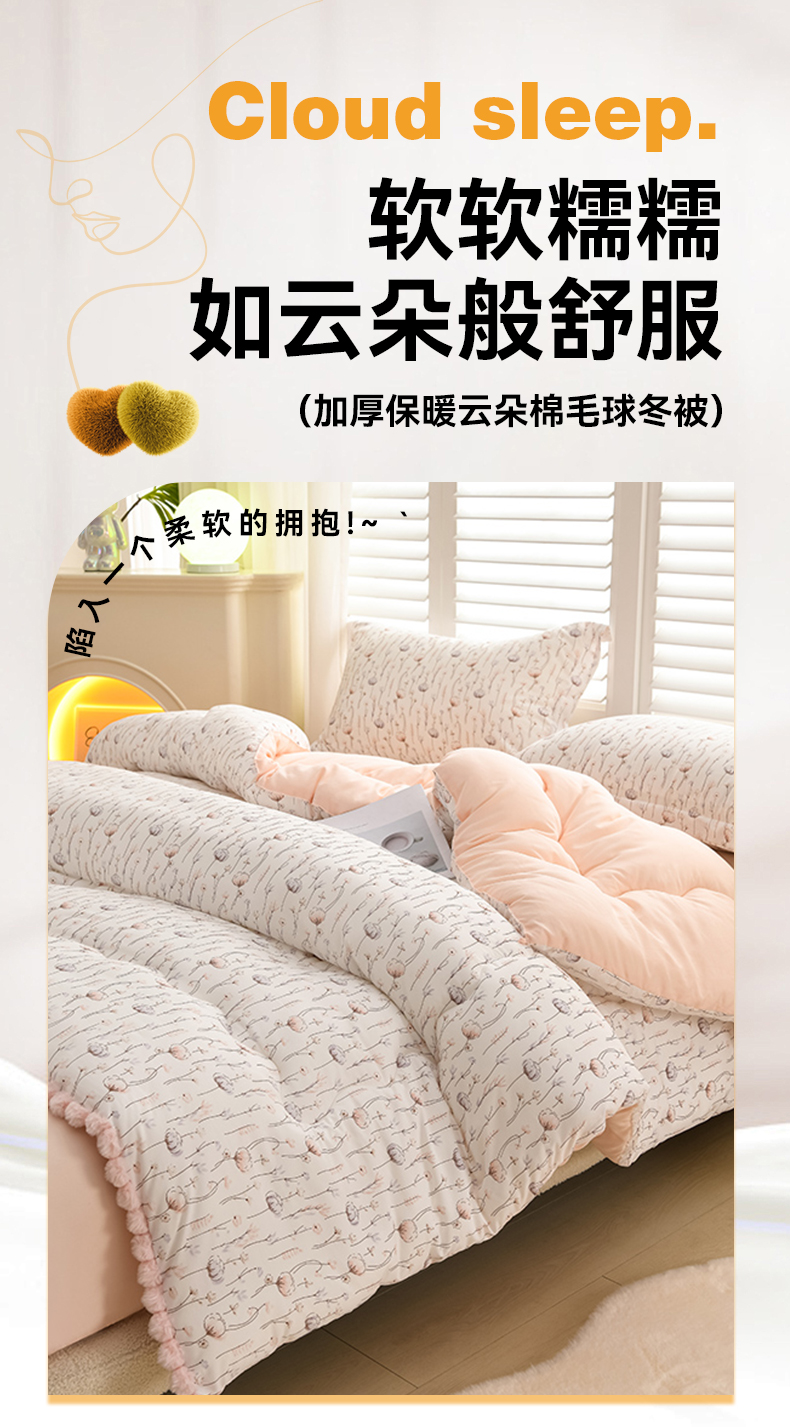 商品名称:圣楚家纺 2024新款加厚保暖云朵棉毛球冬被 浪漫童话