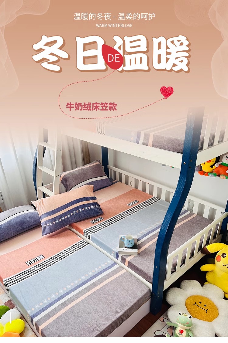 • 91家纺网 家纺一手货源 找家纺 小虾米 2024新款加厚上下床牛奶绒床笠款 流年