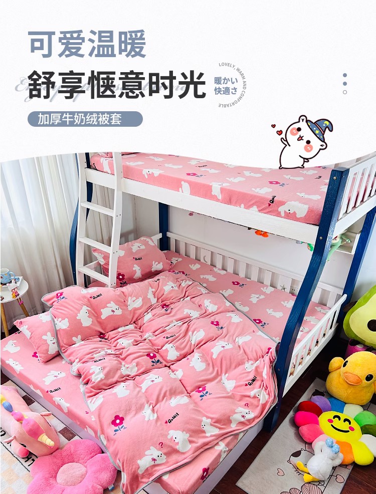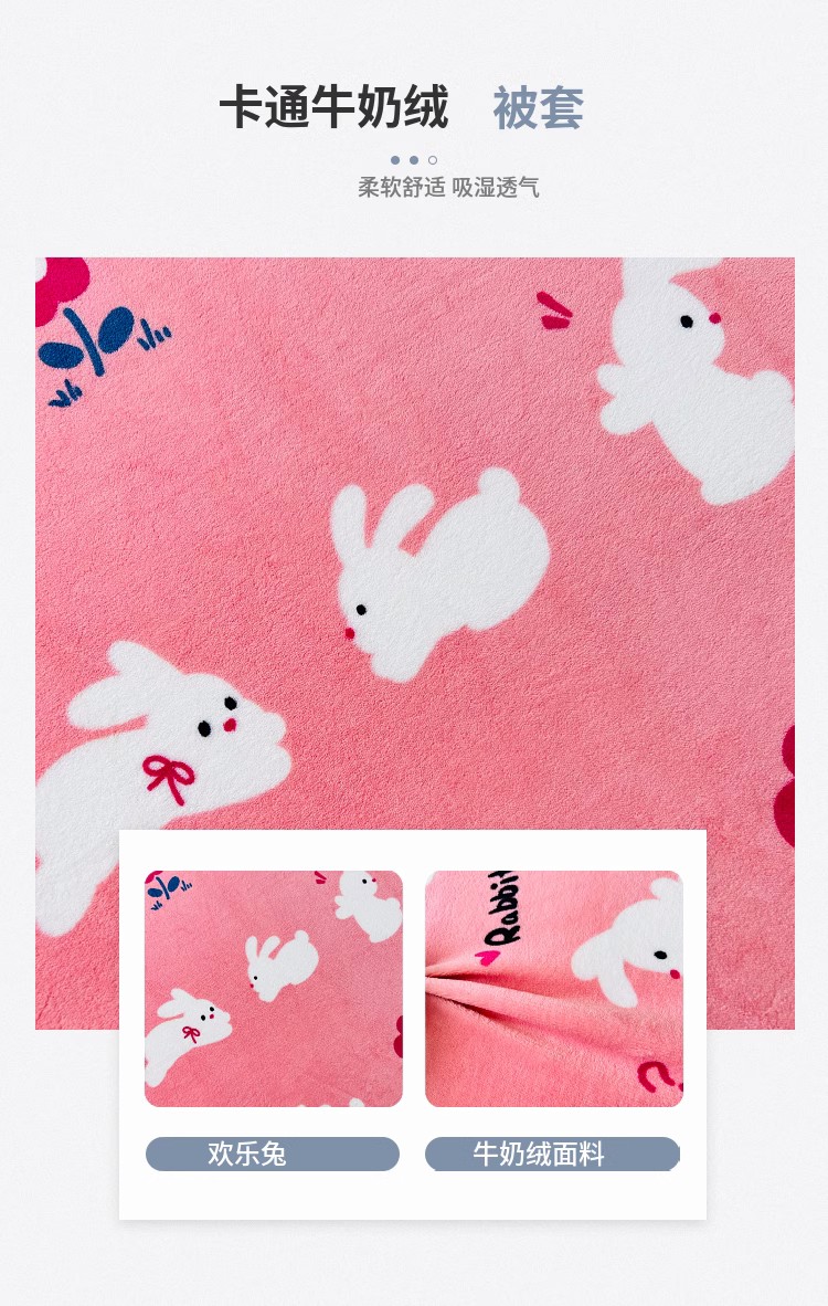 商品名称:小虾米 2024新款加厚上下床牛奶绒单被套 欢乐兔
